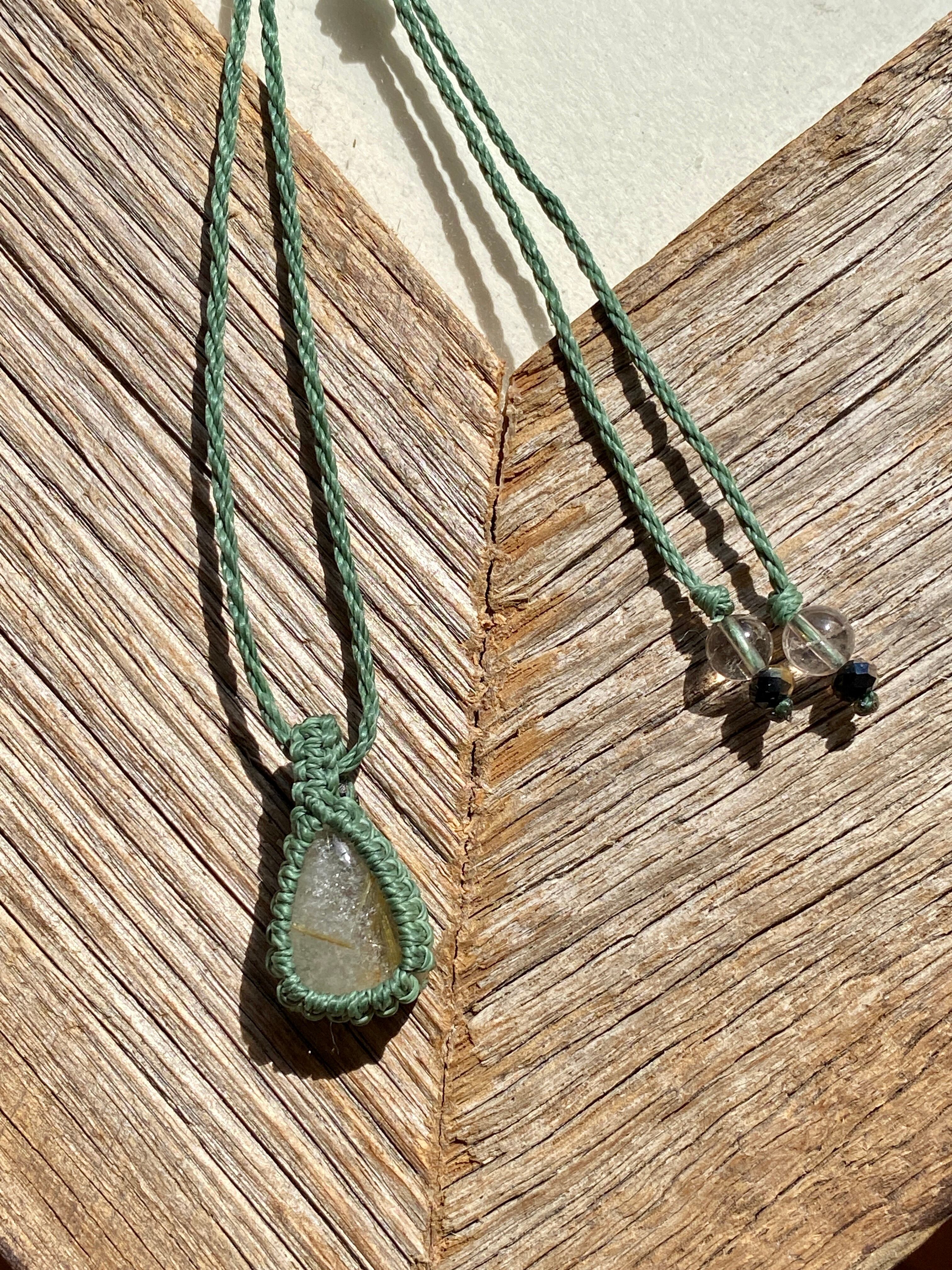healing☆タイタンルチルクォーツ天然石マクラメネックレス/日々のお守りアクセサリー