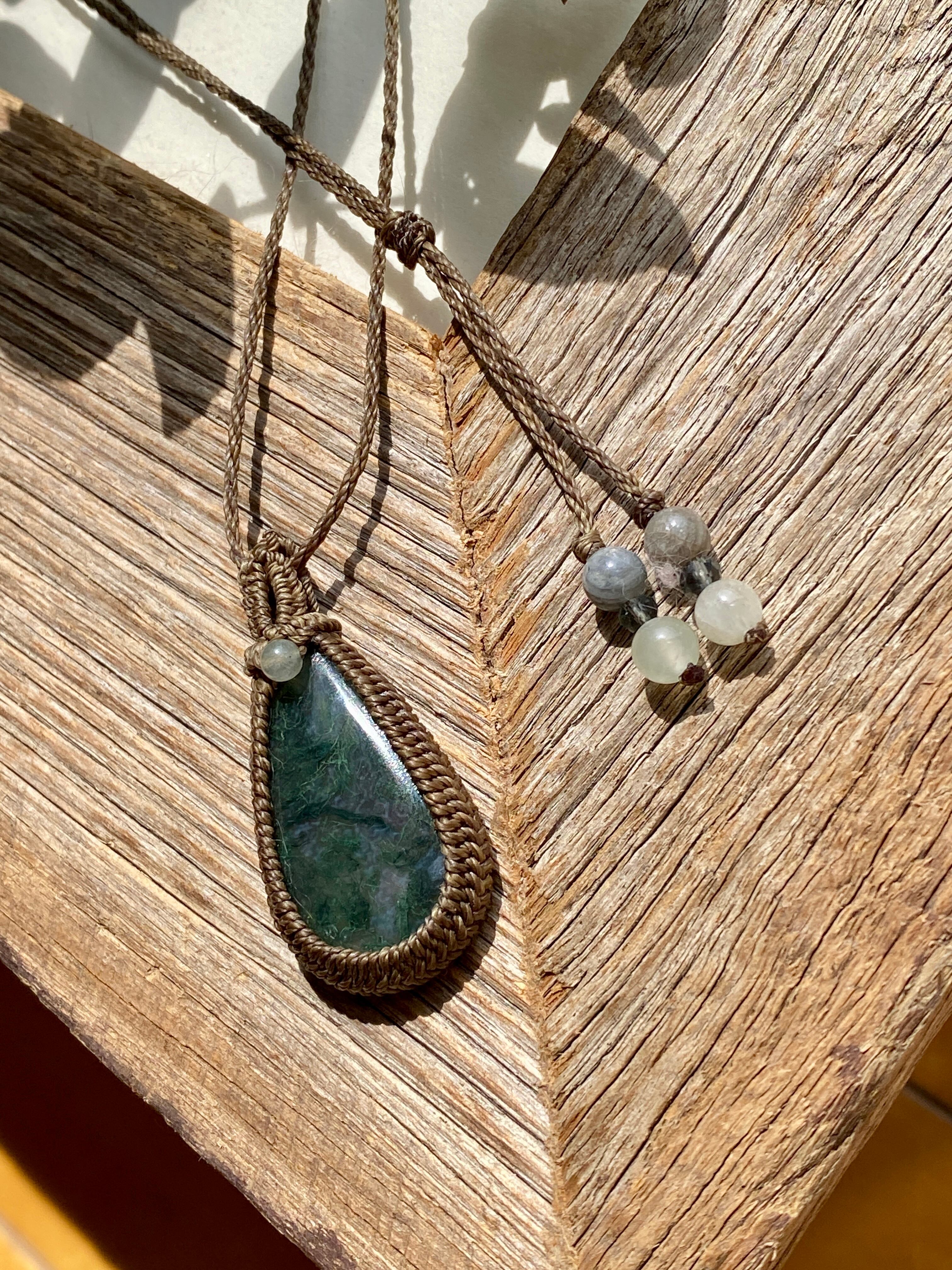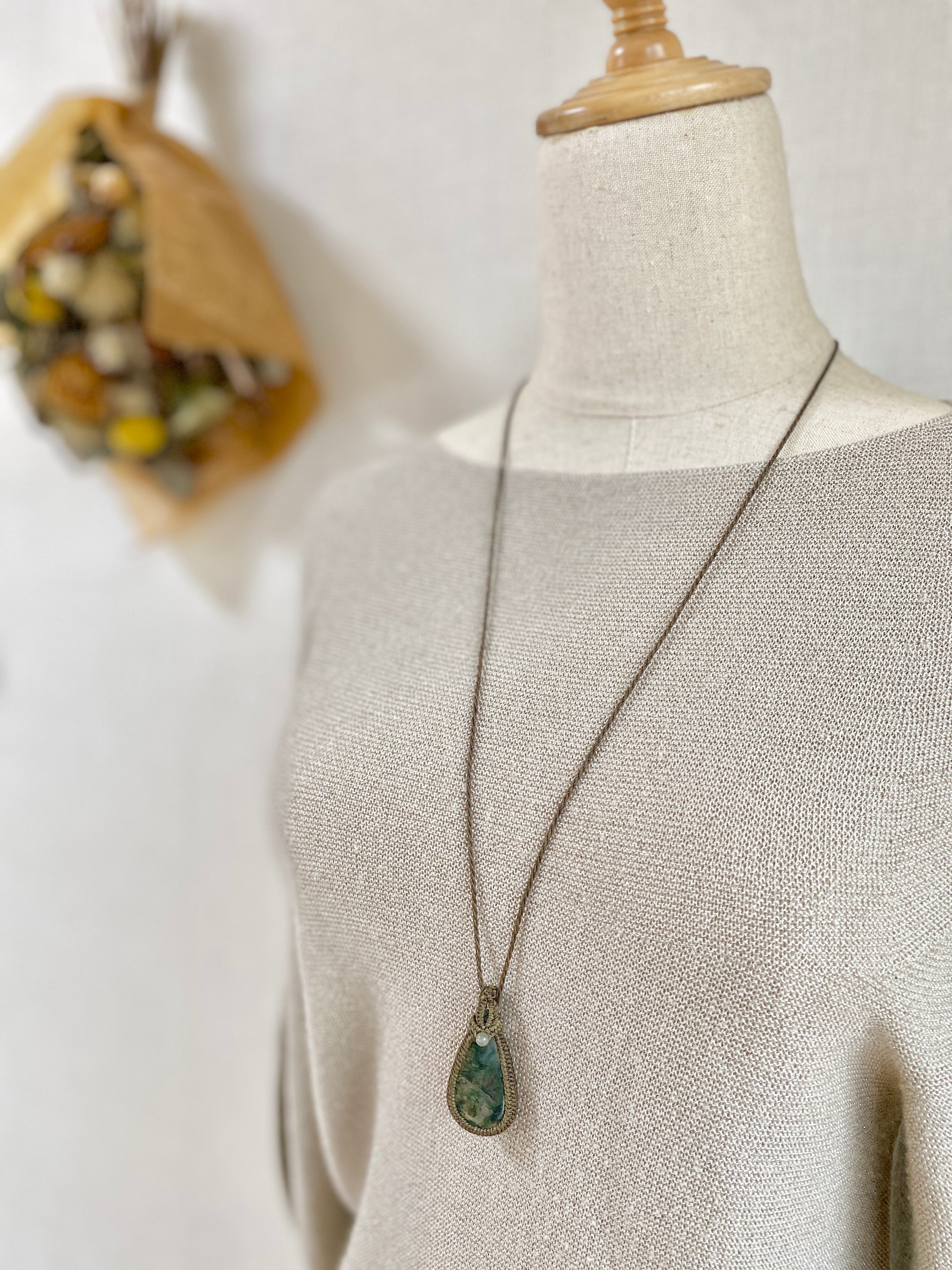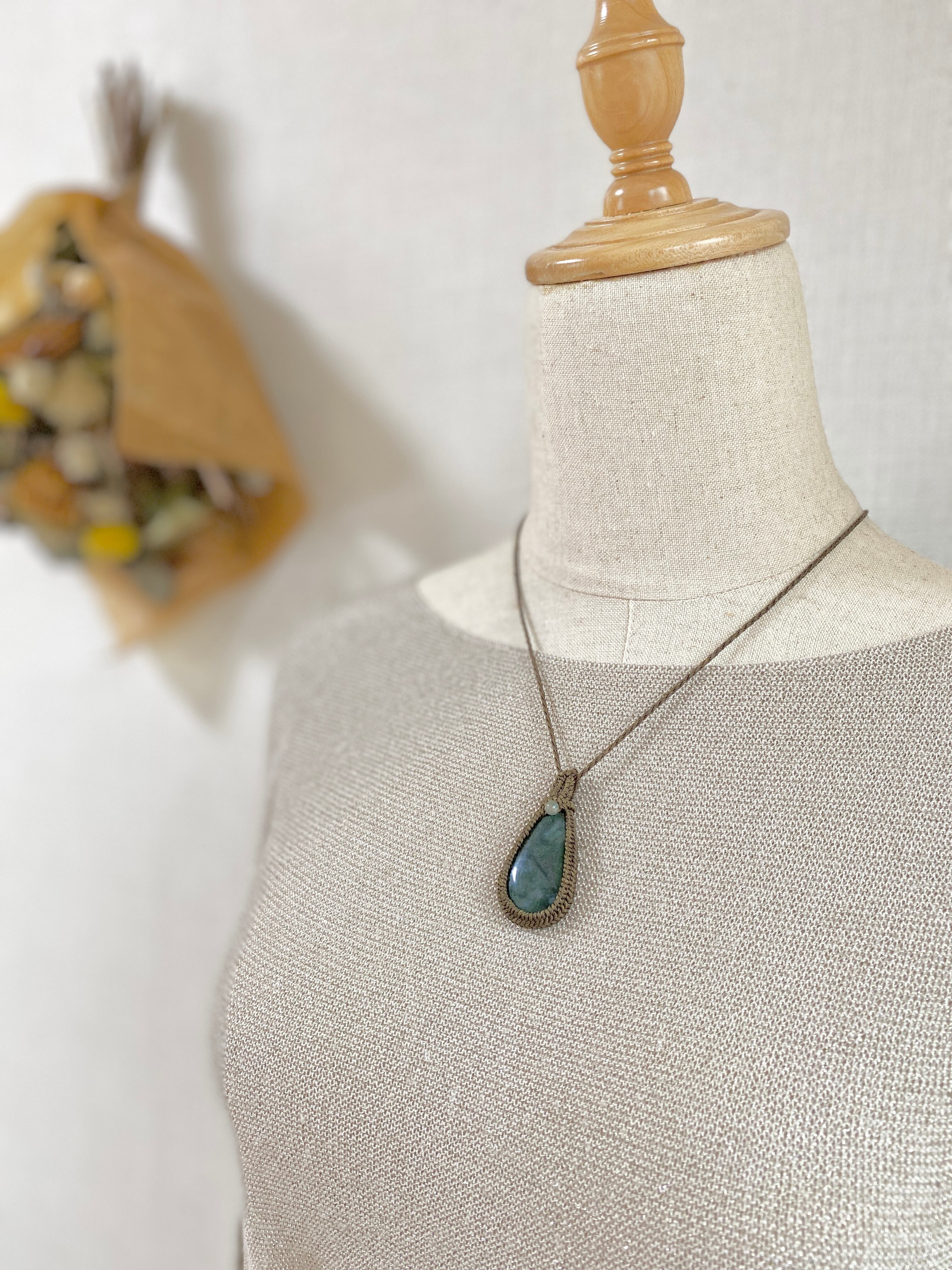癒し☆モスアゲート 天然石マクラメネックレス/日々のお守りアクセサリー