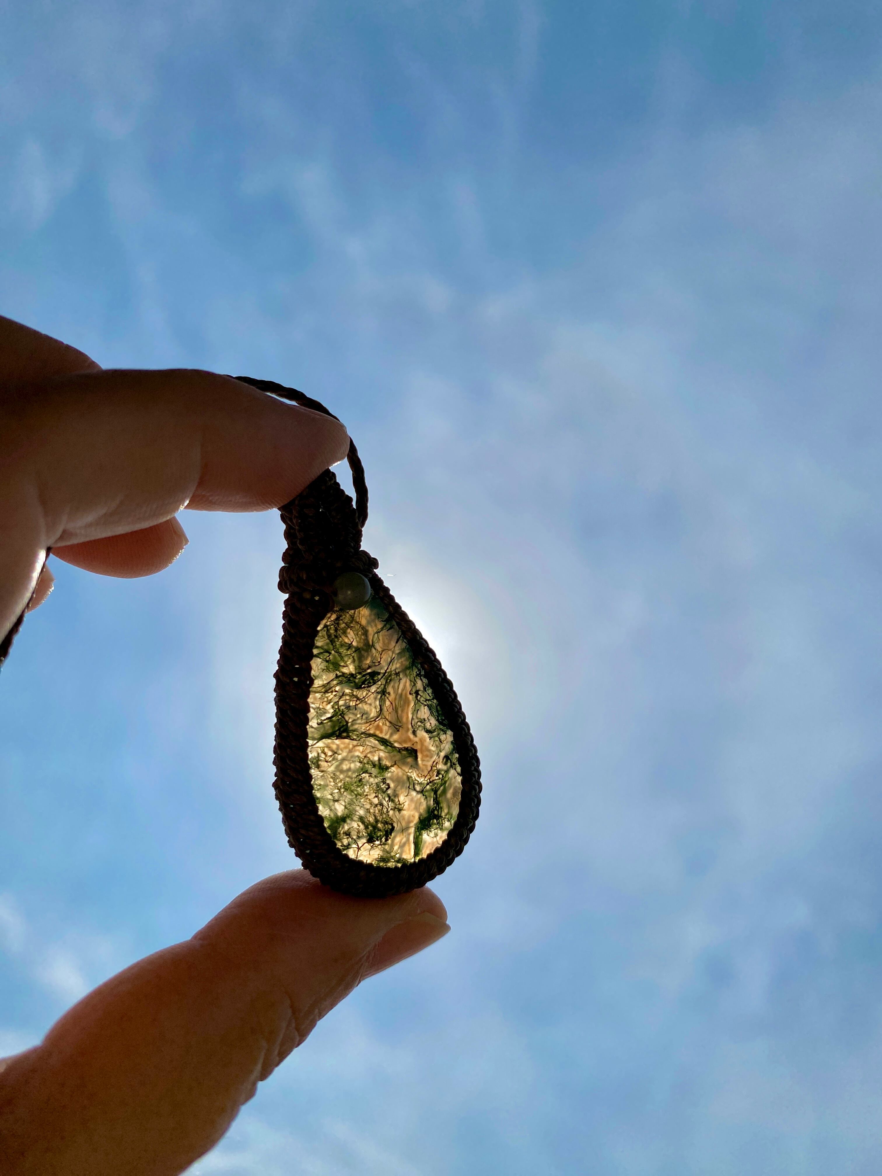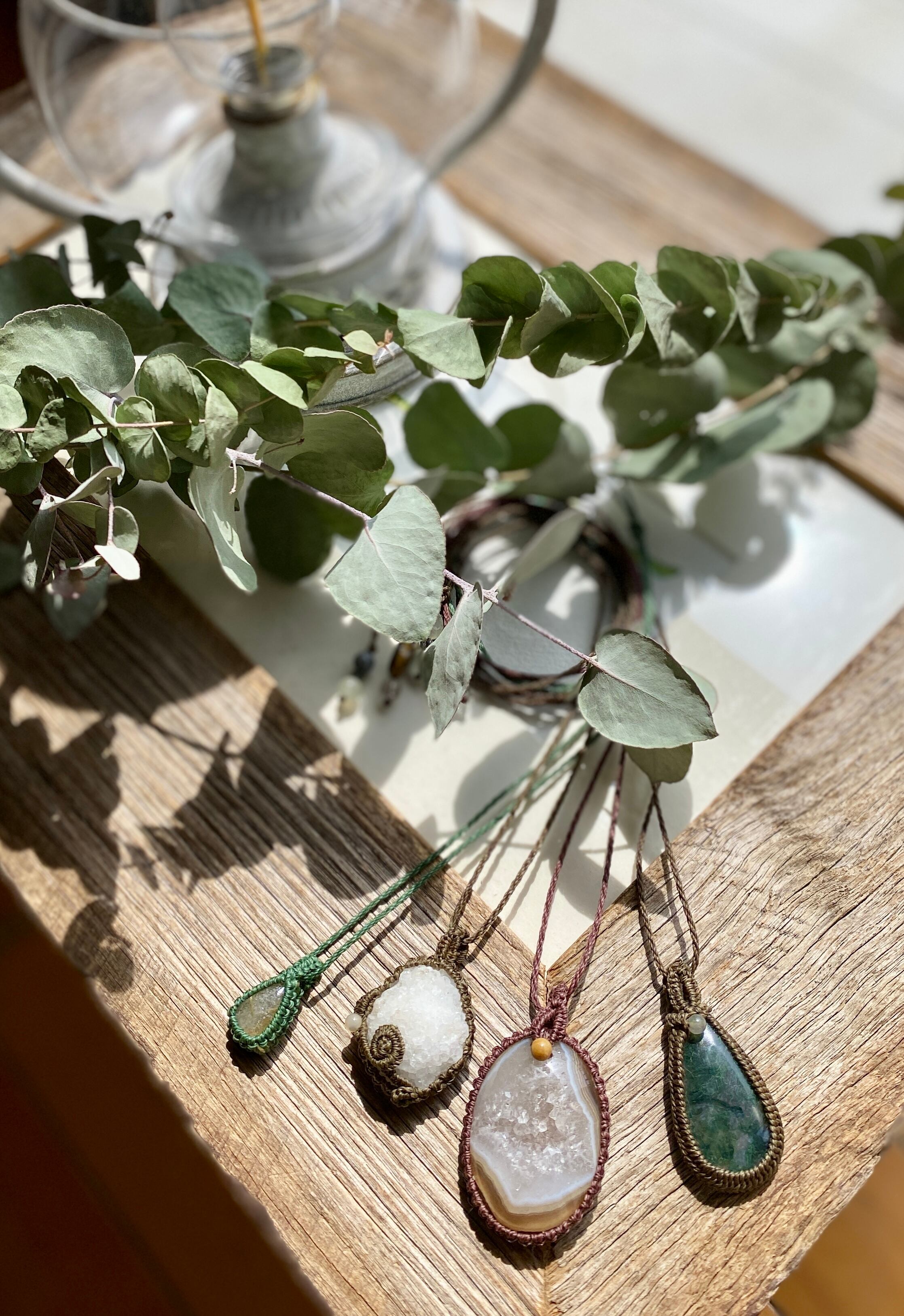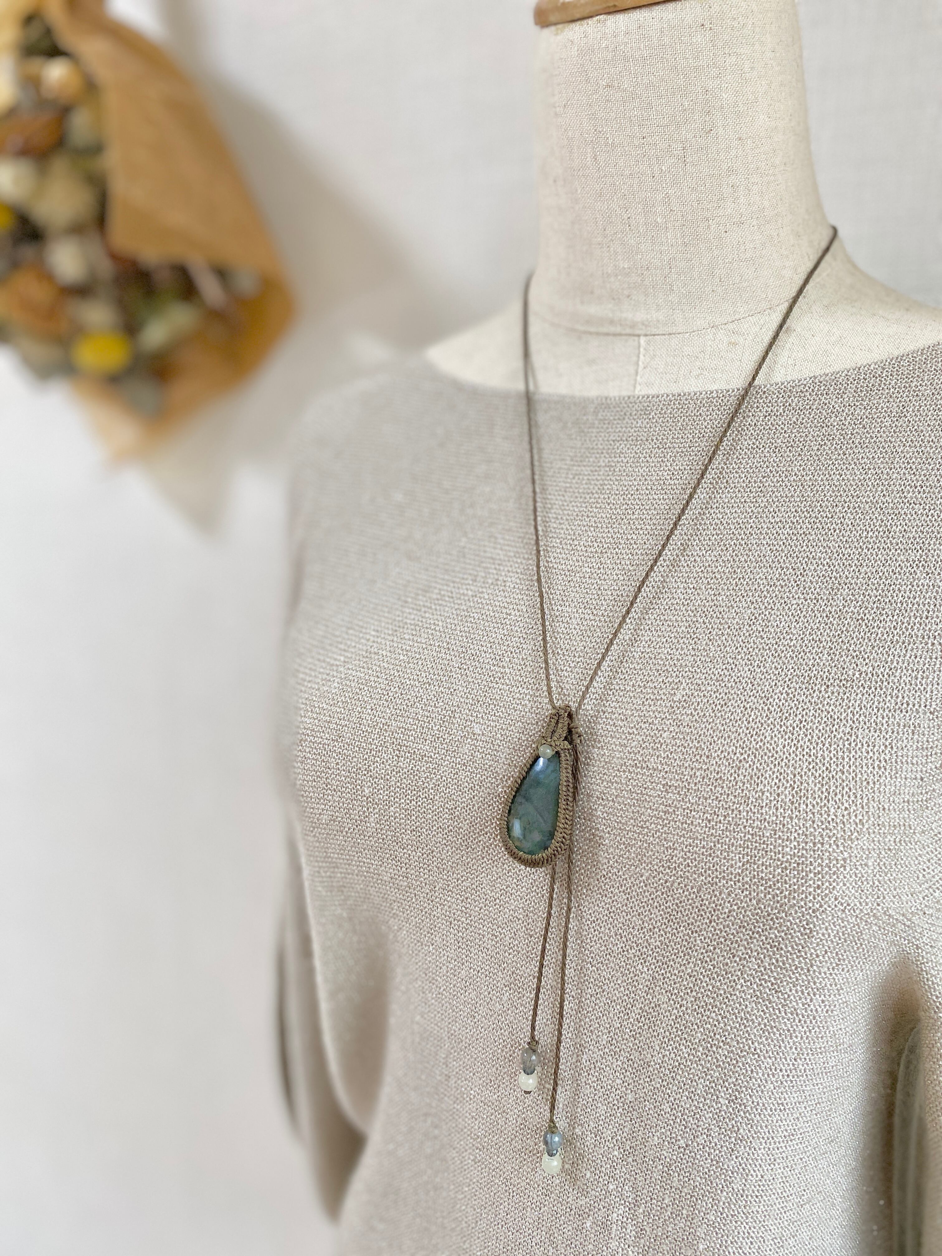 癒し☆モスアゲート 天然石マクラメネックレス/日々のお守りアクセサリー