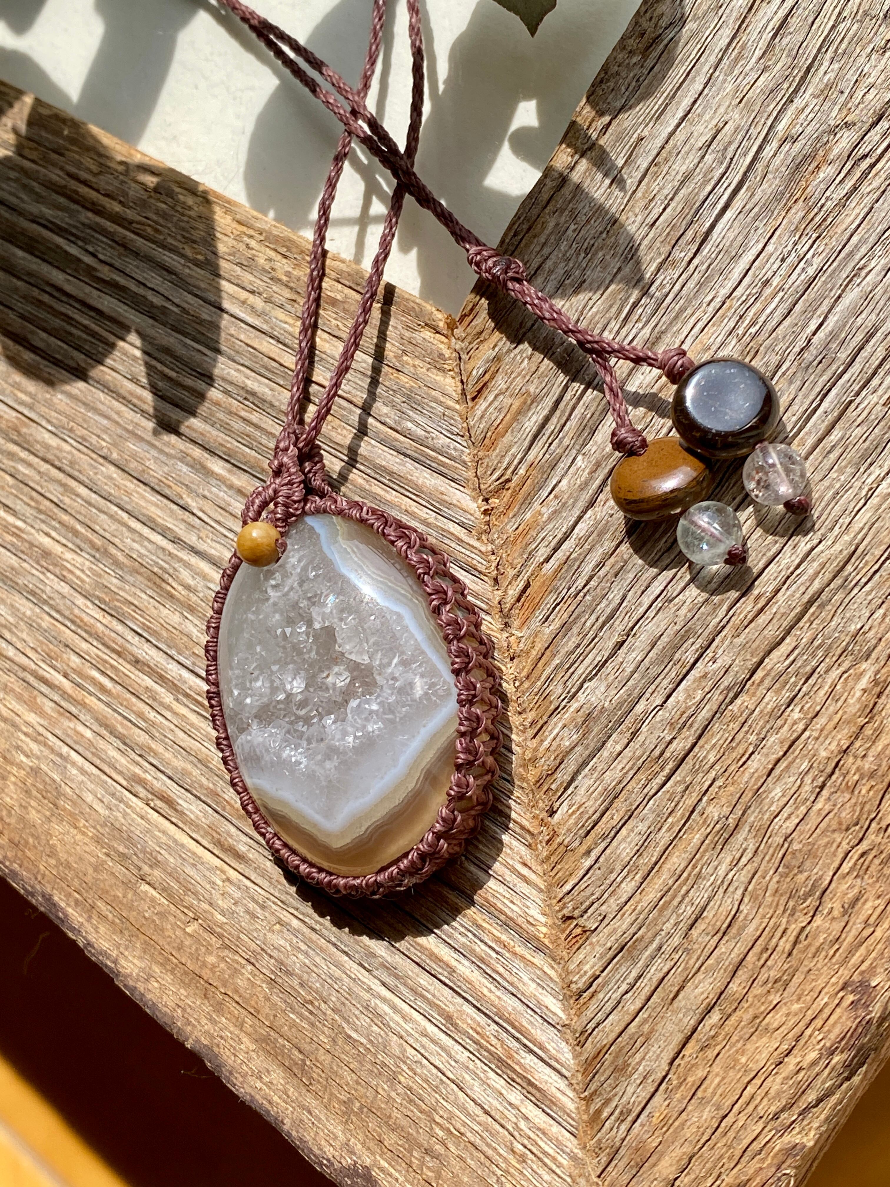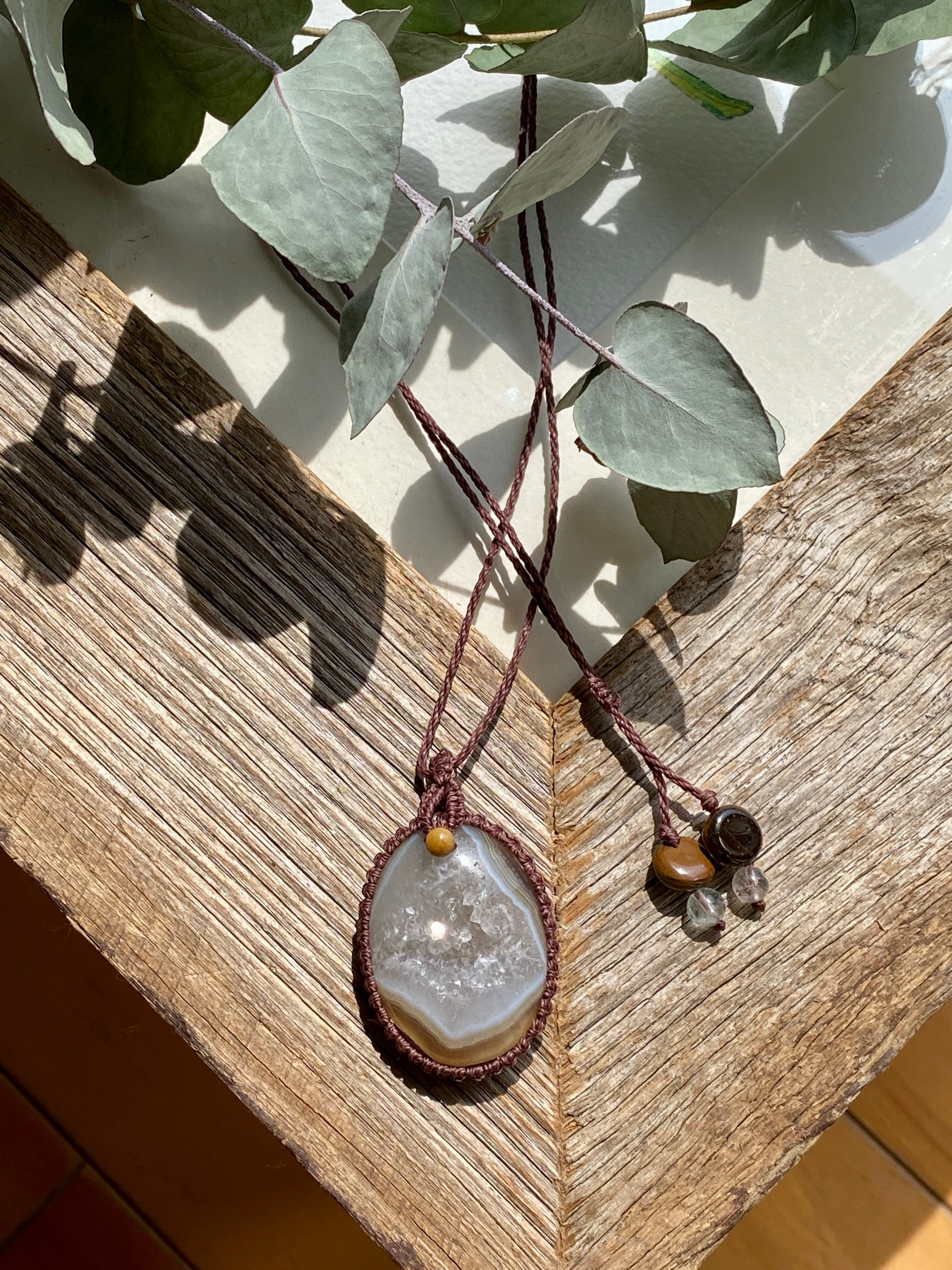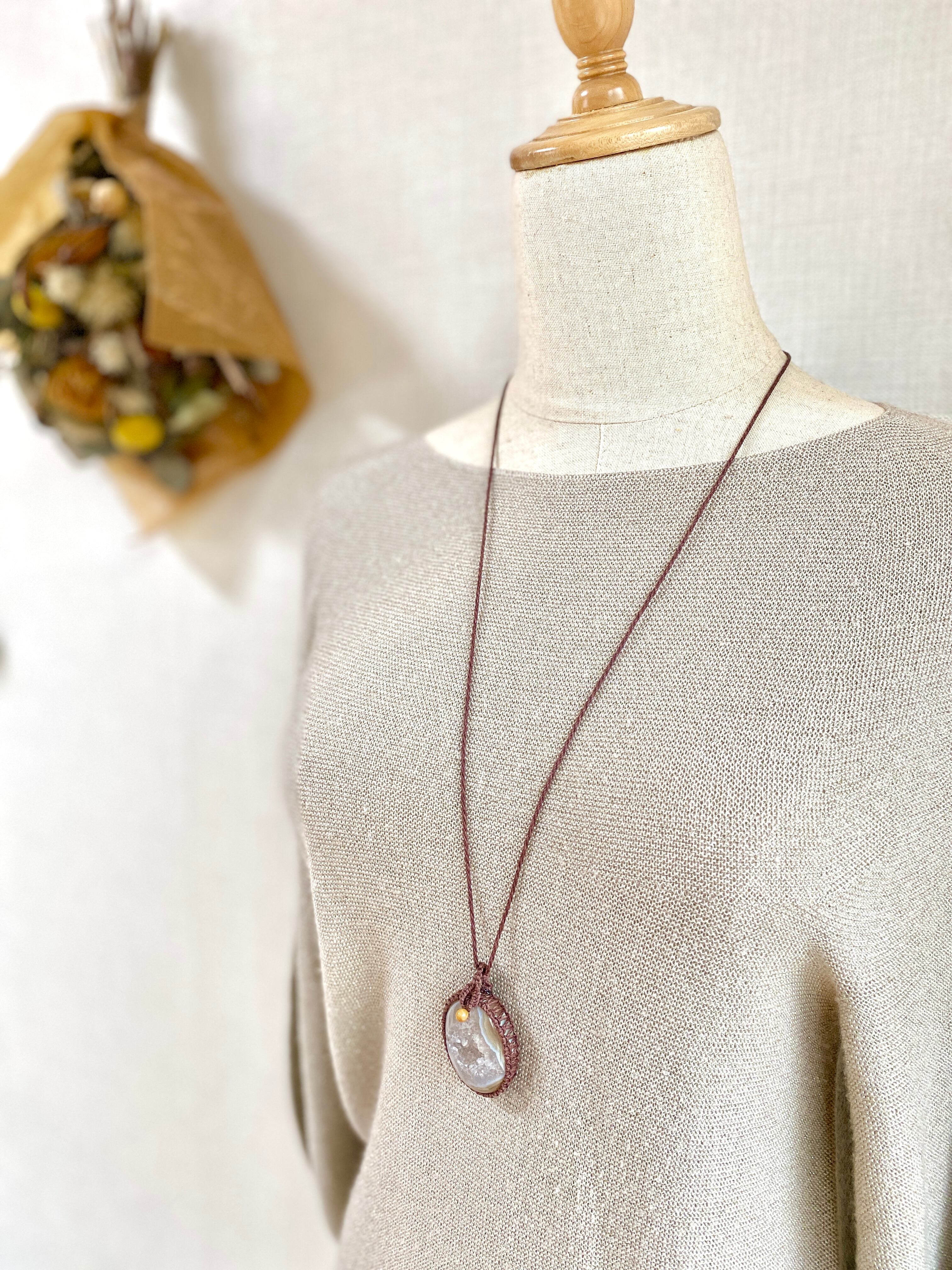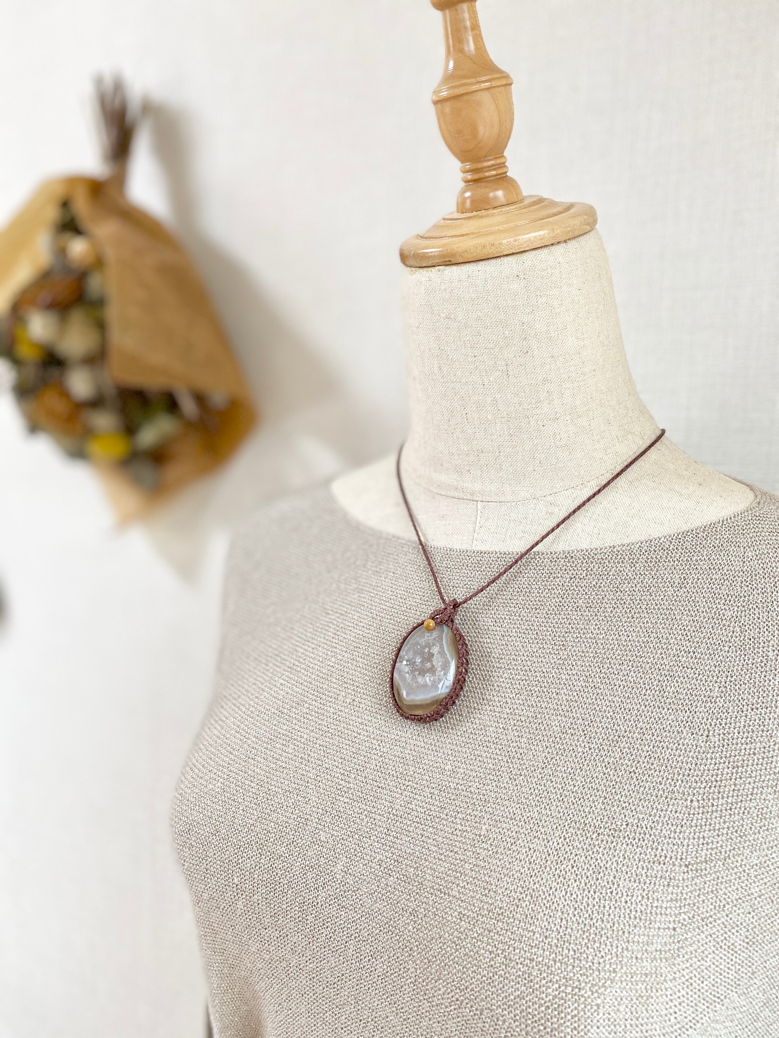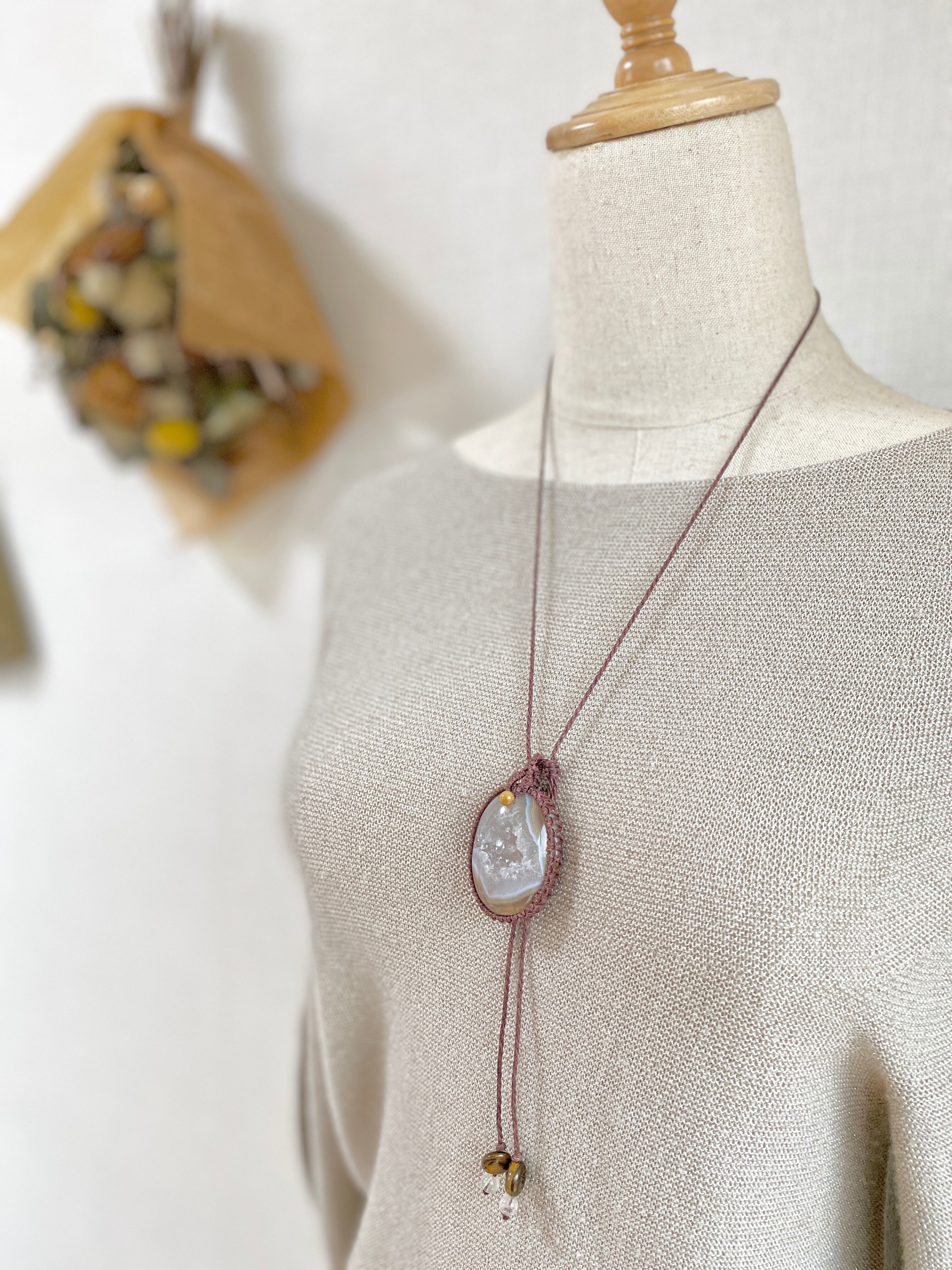cluster☆ドゥルージーアゲート 天然石マクラメネックレス/日々のお守りアクセサリー
