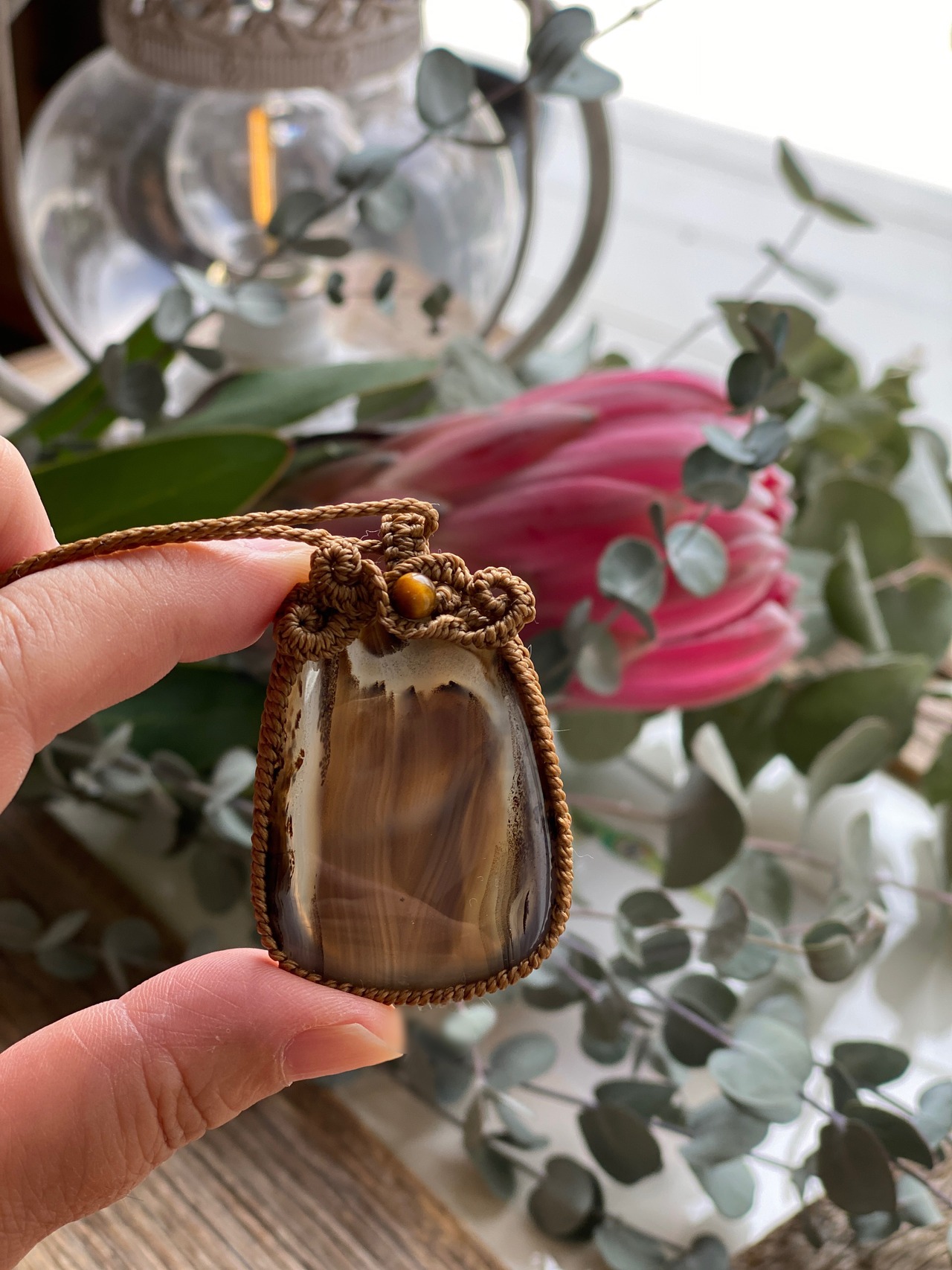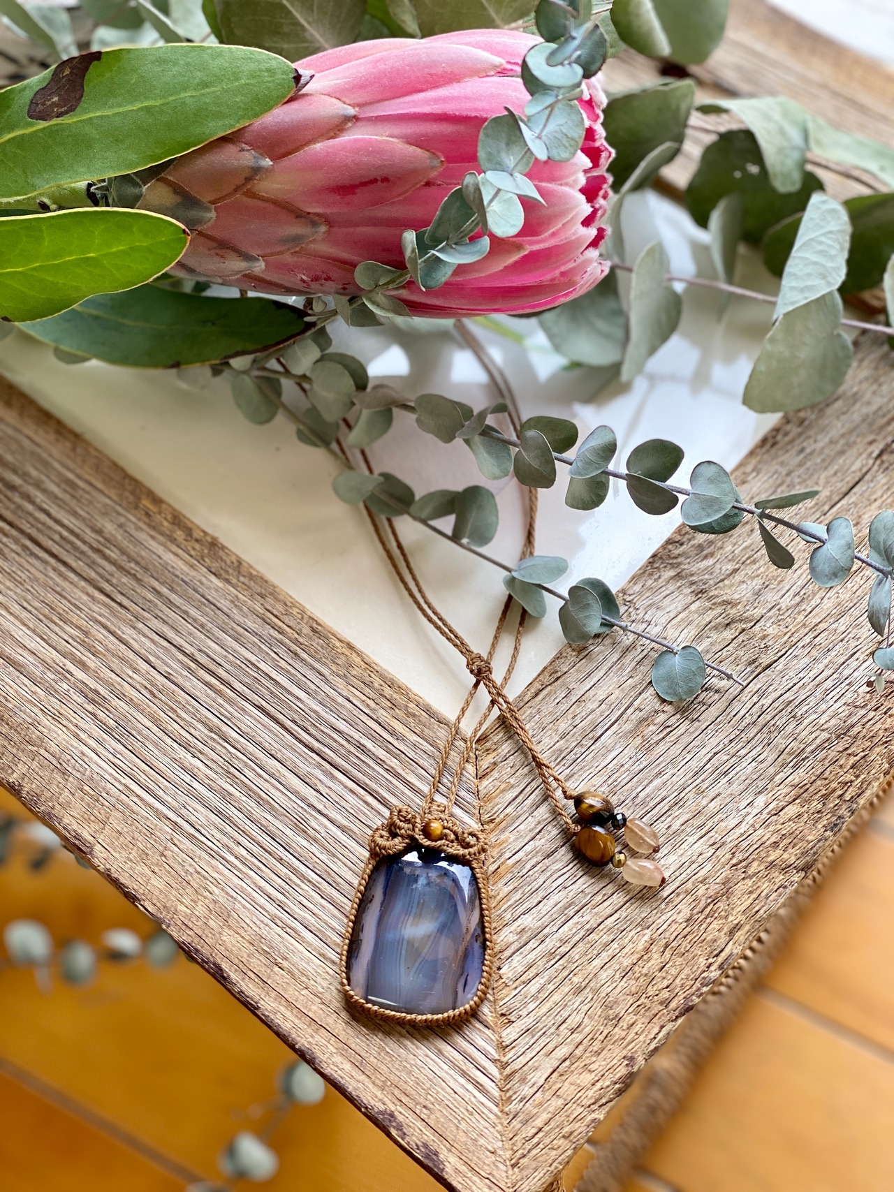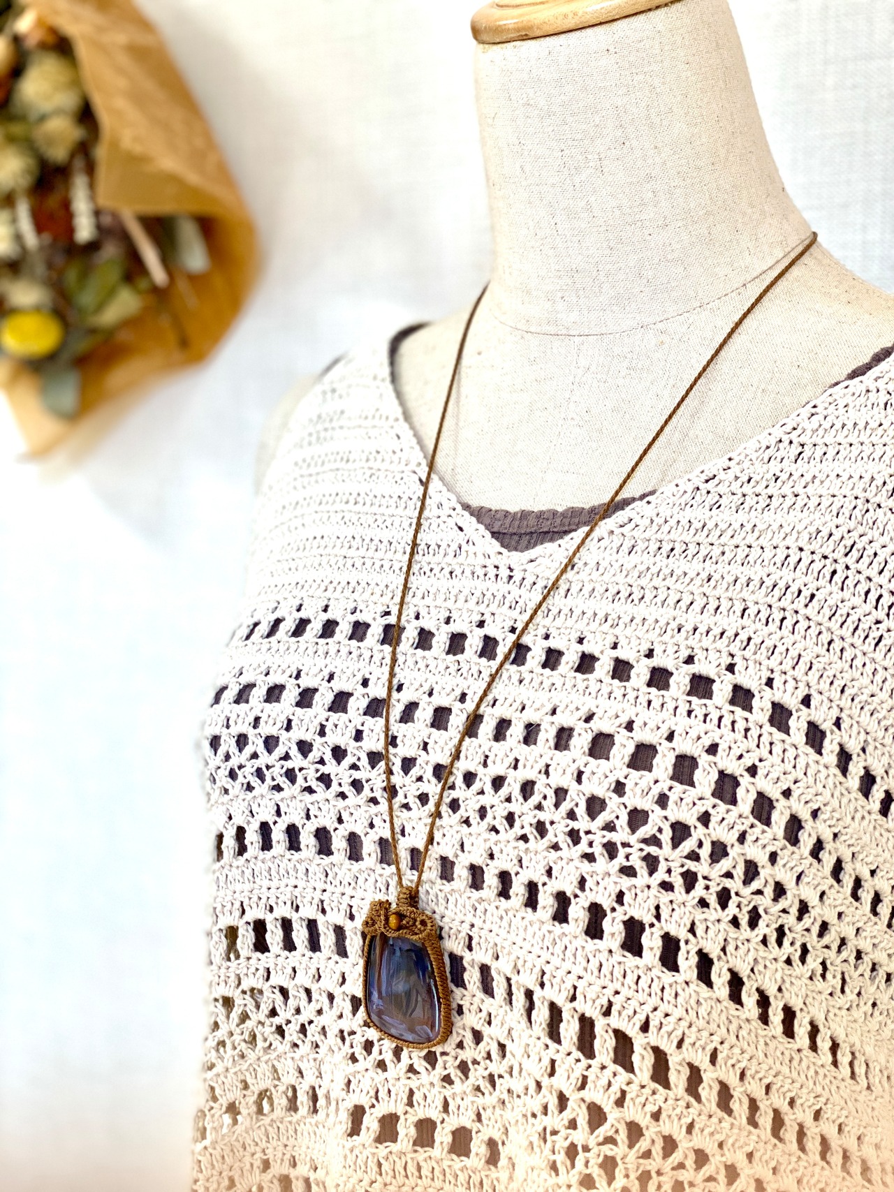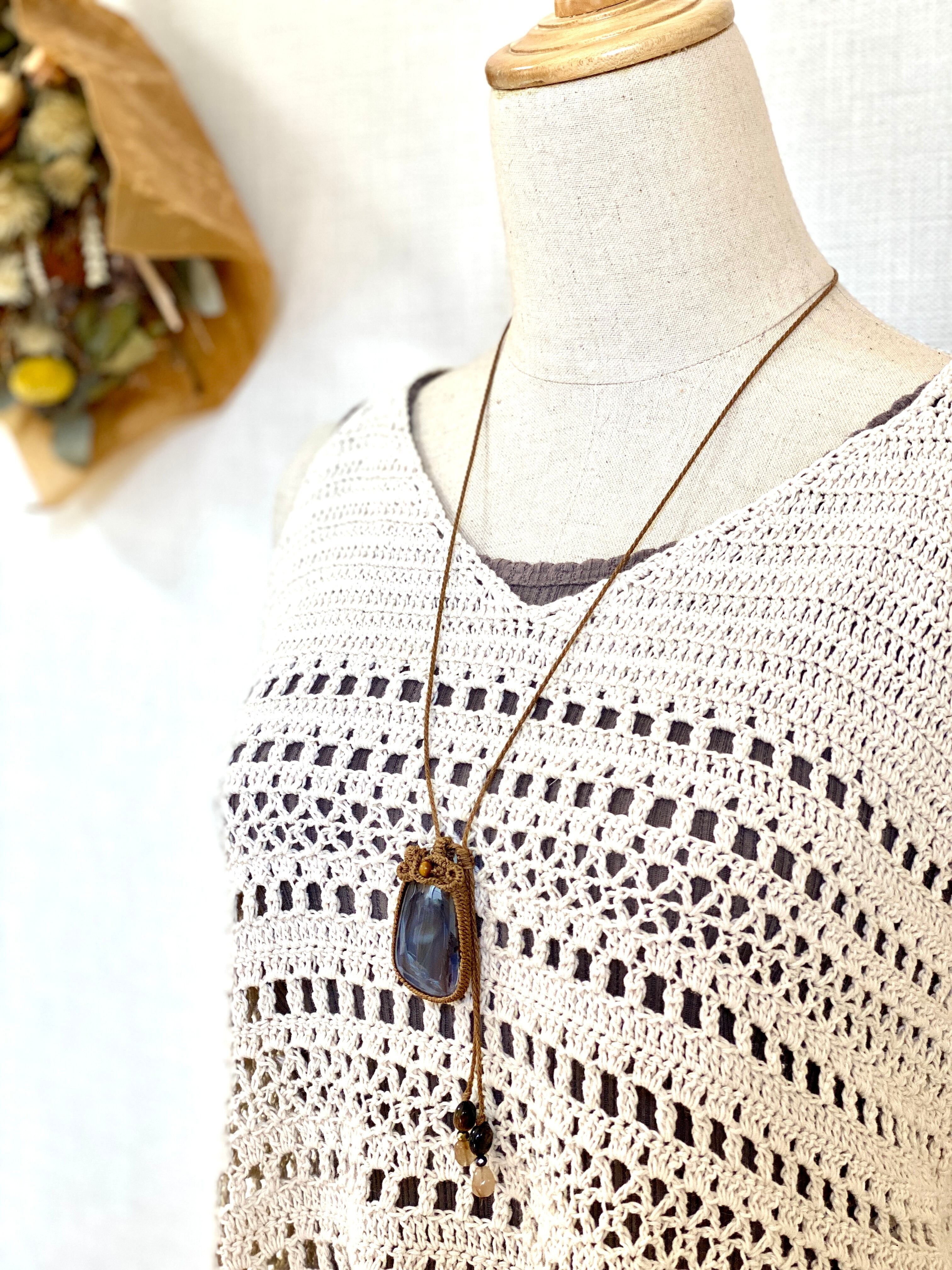 art☆モンタナアゲート 天然石マクラメネックレス/日々のお守りアクセサリー