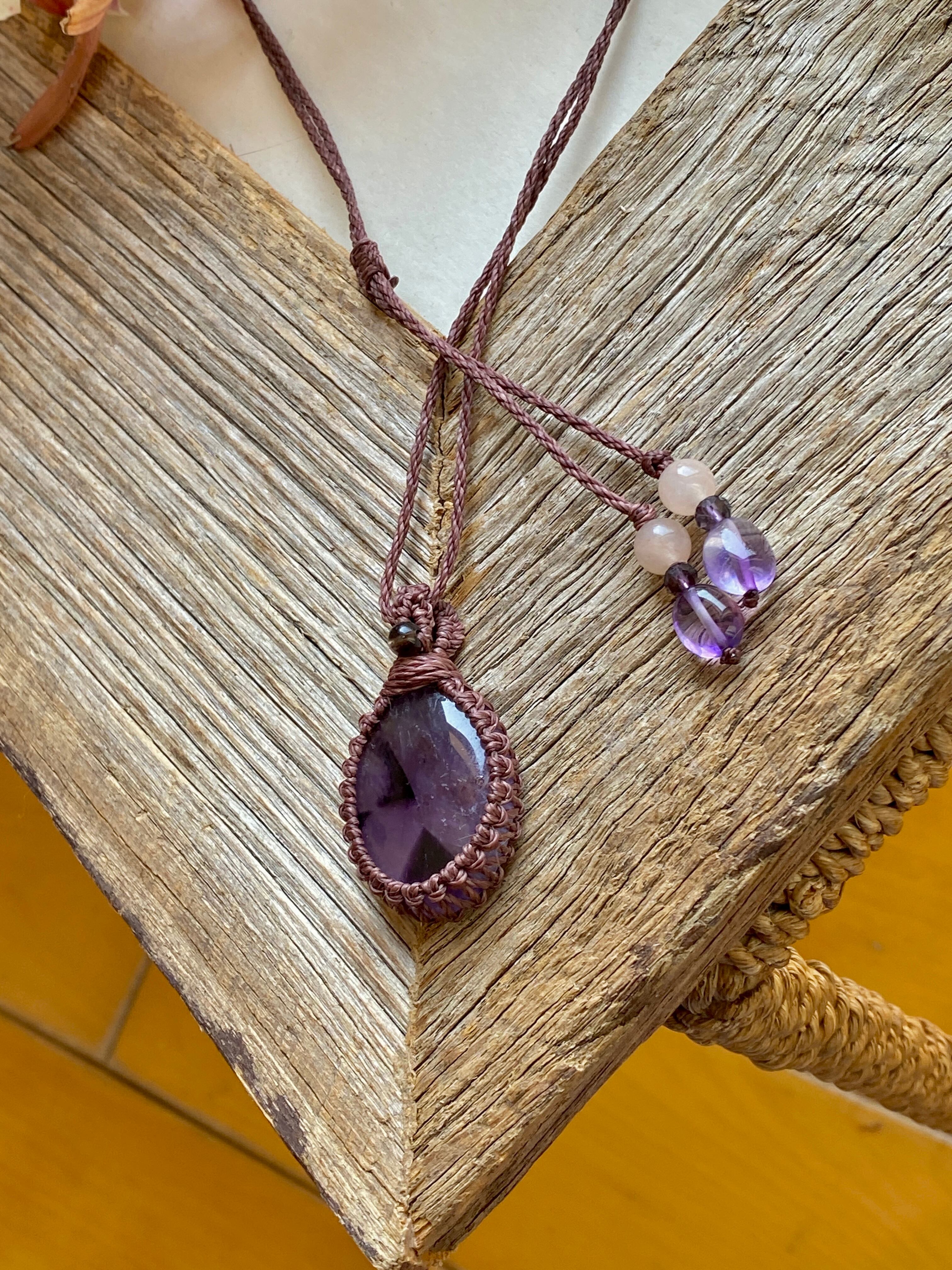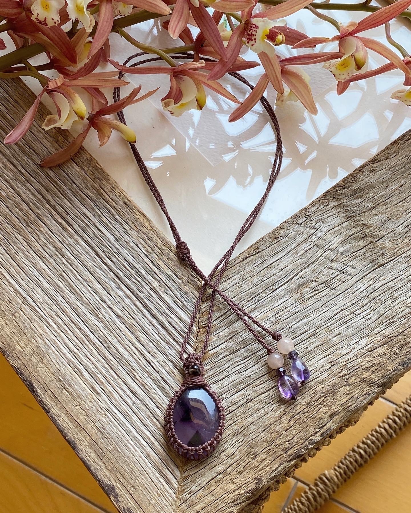 true love☆トラピッチェアメジスト天然石マクラメネックレス/日々のお守り