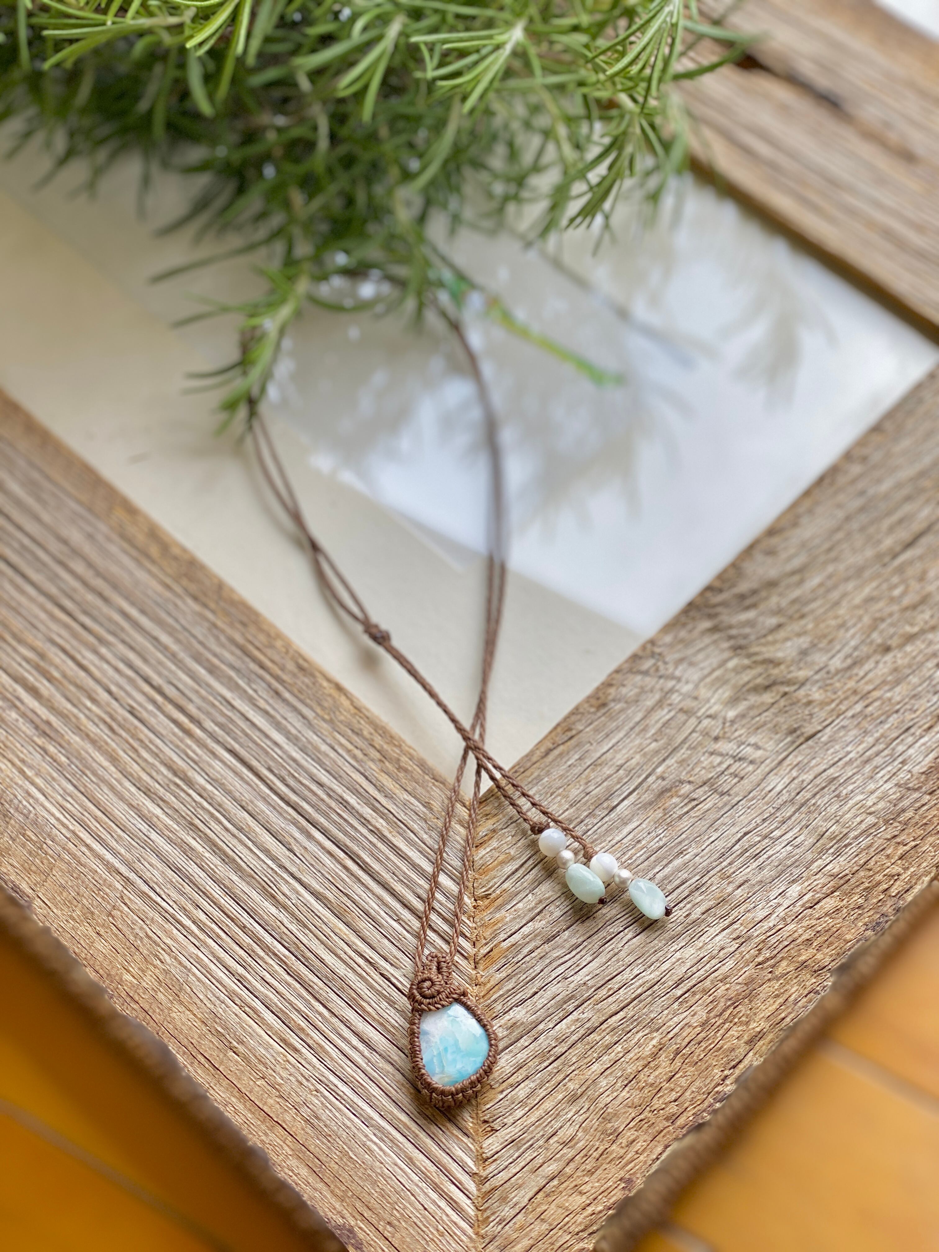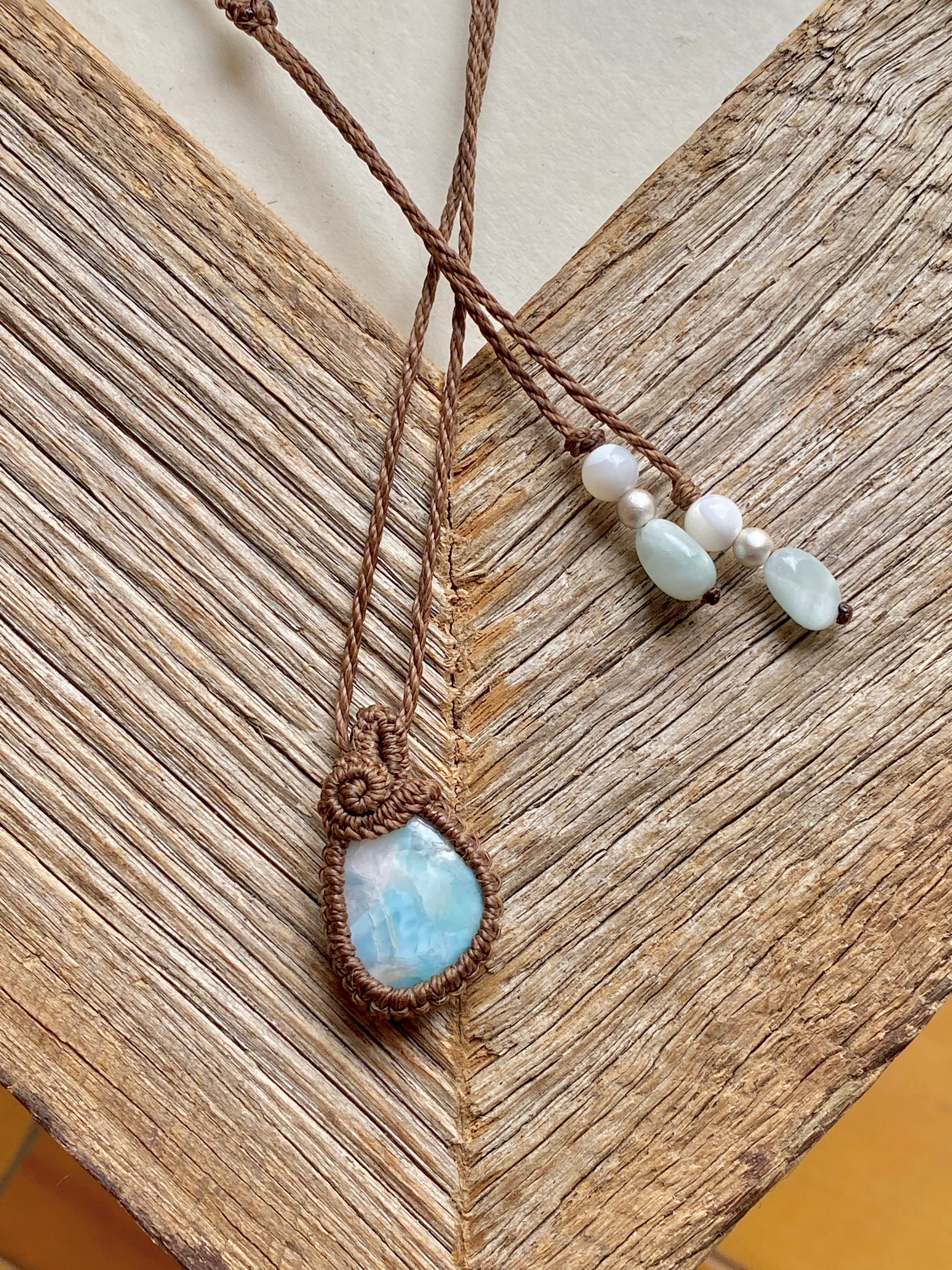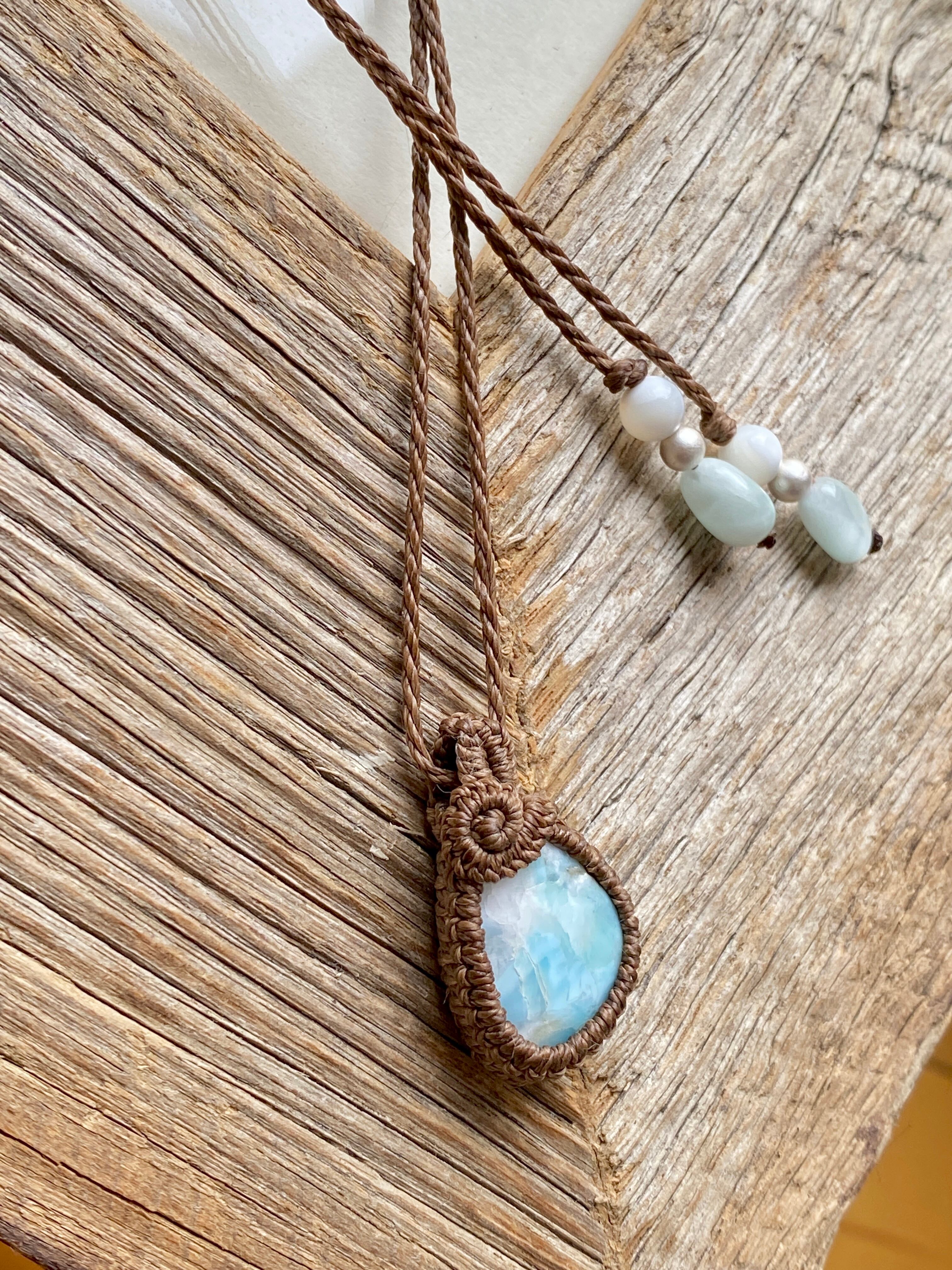 healing☆ラリマー 天然石マクラメネックレス/日々のお守りアクセサリー
