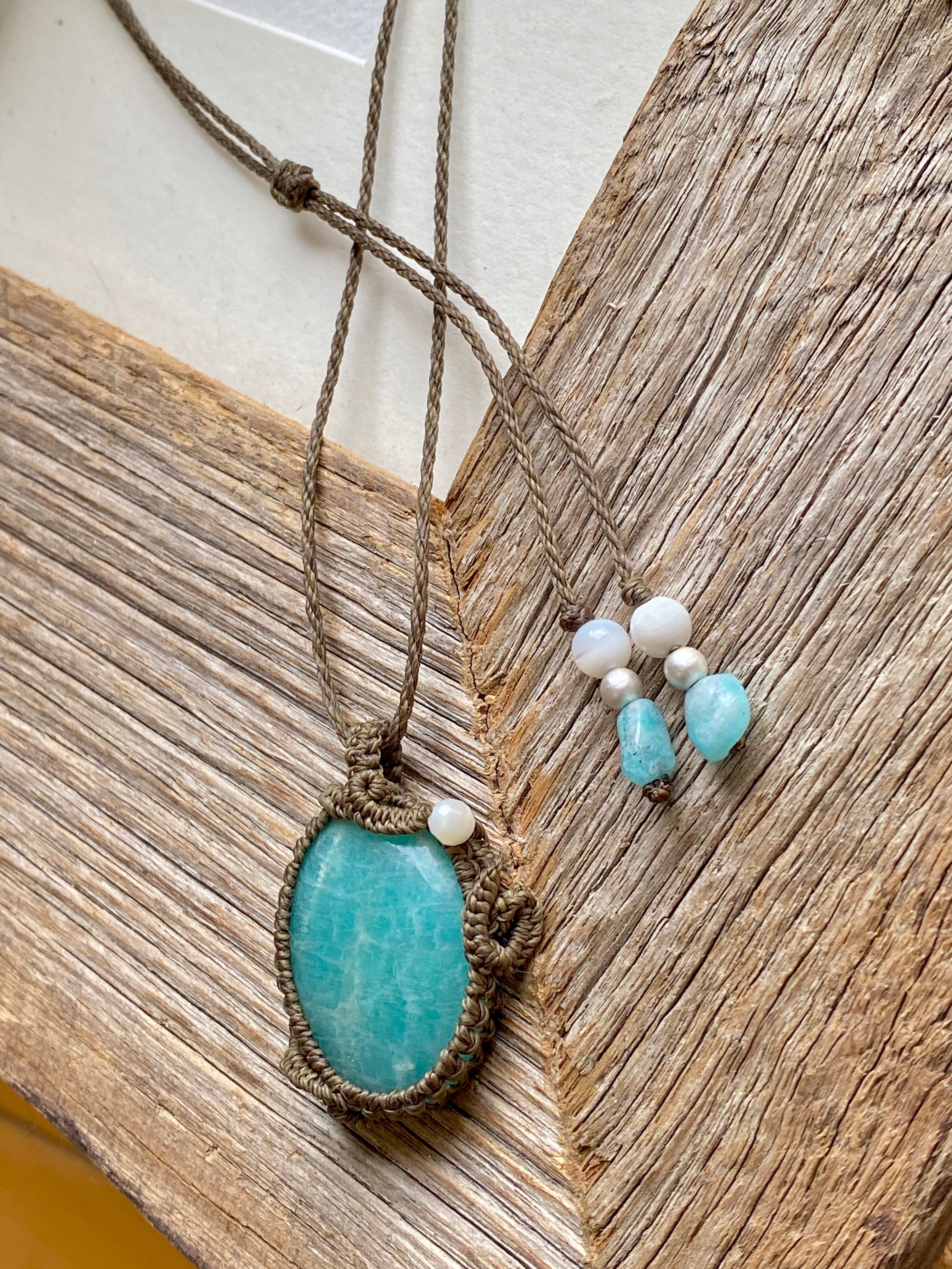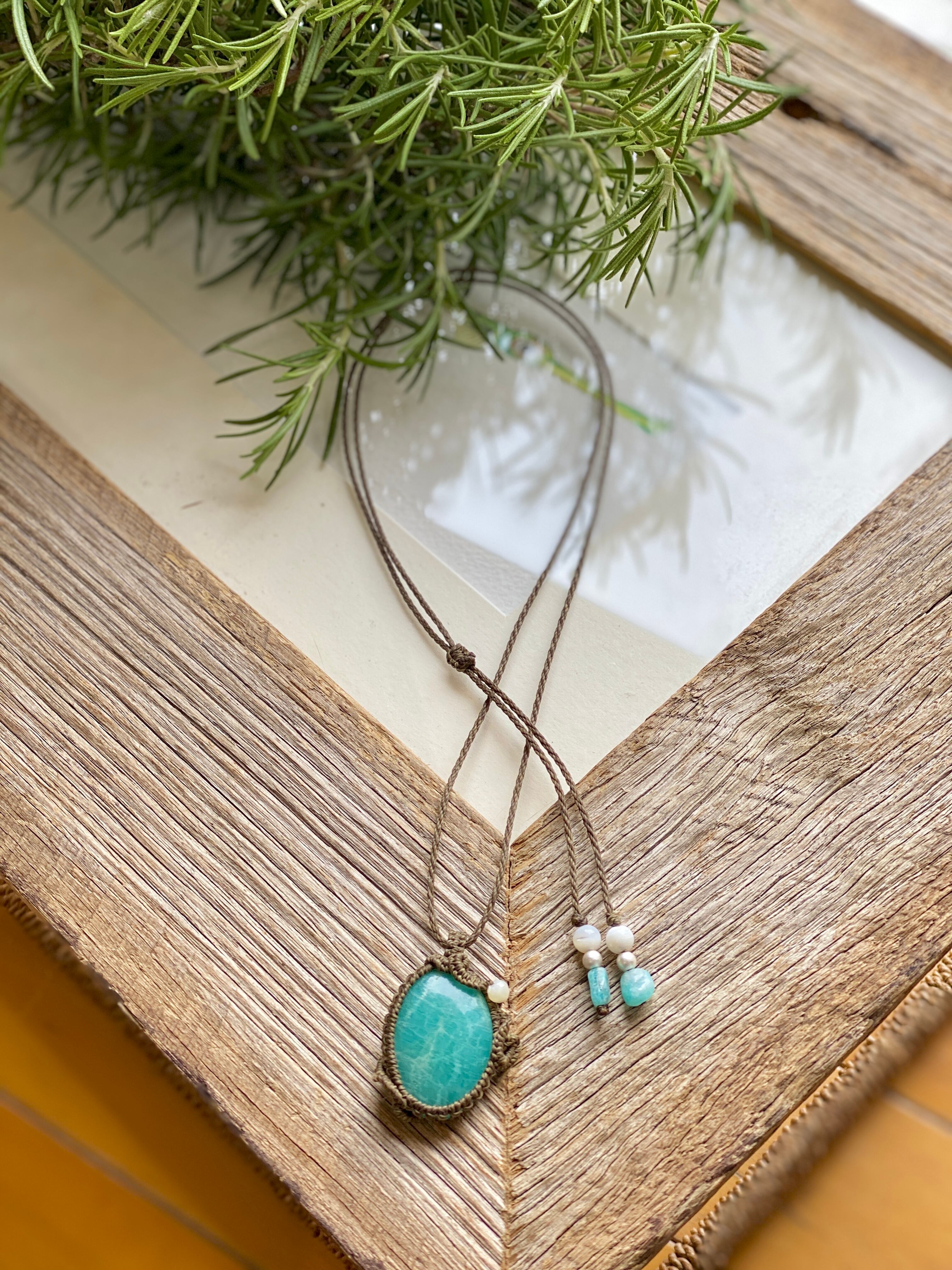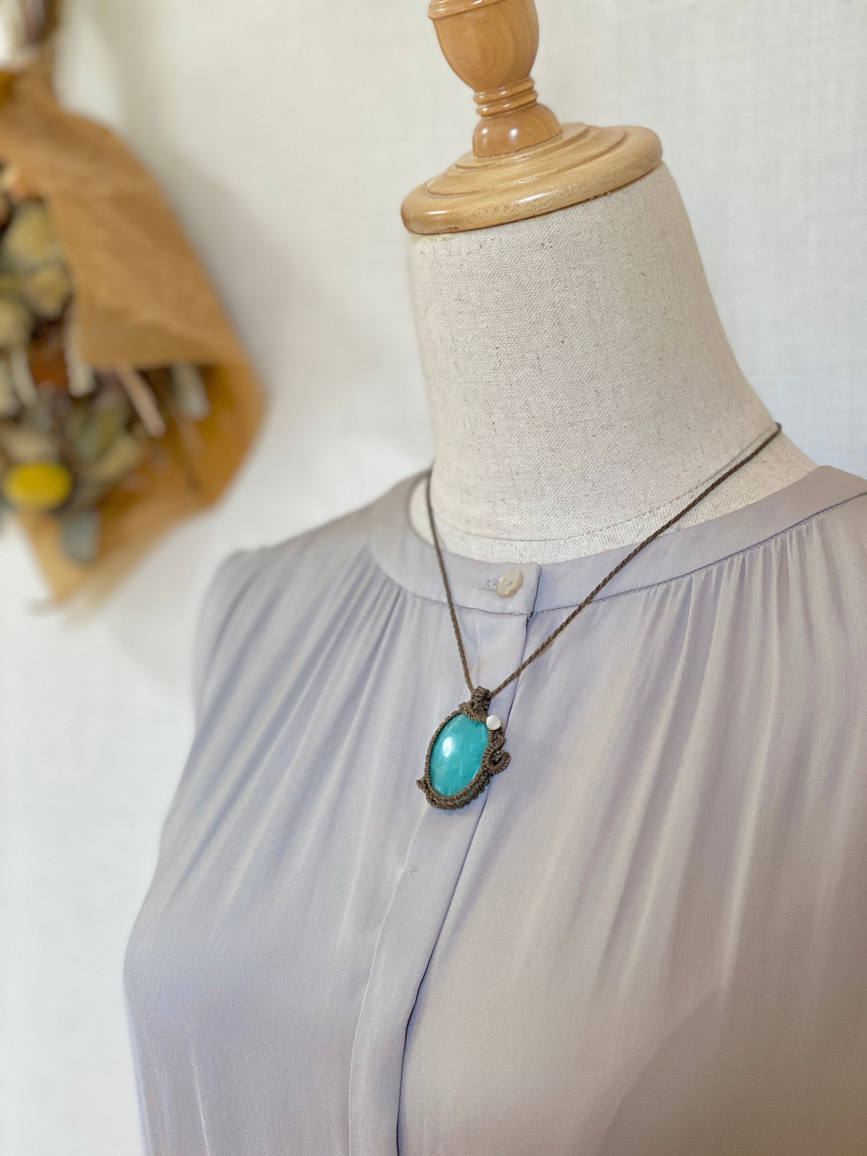 希望☆アマゾナイト天然石マクラメネックレス/日々のお守りアクセサリー