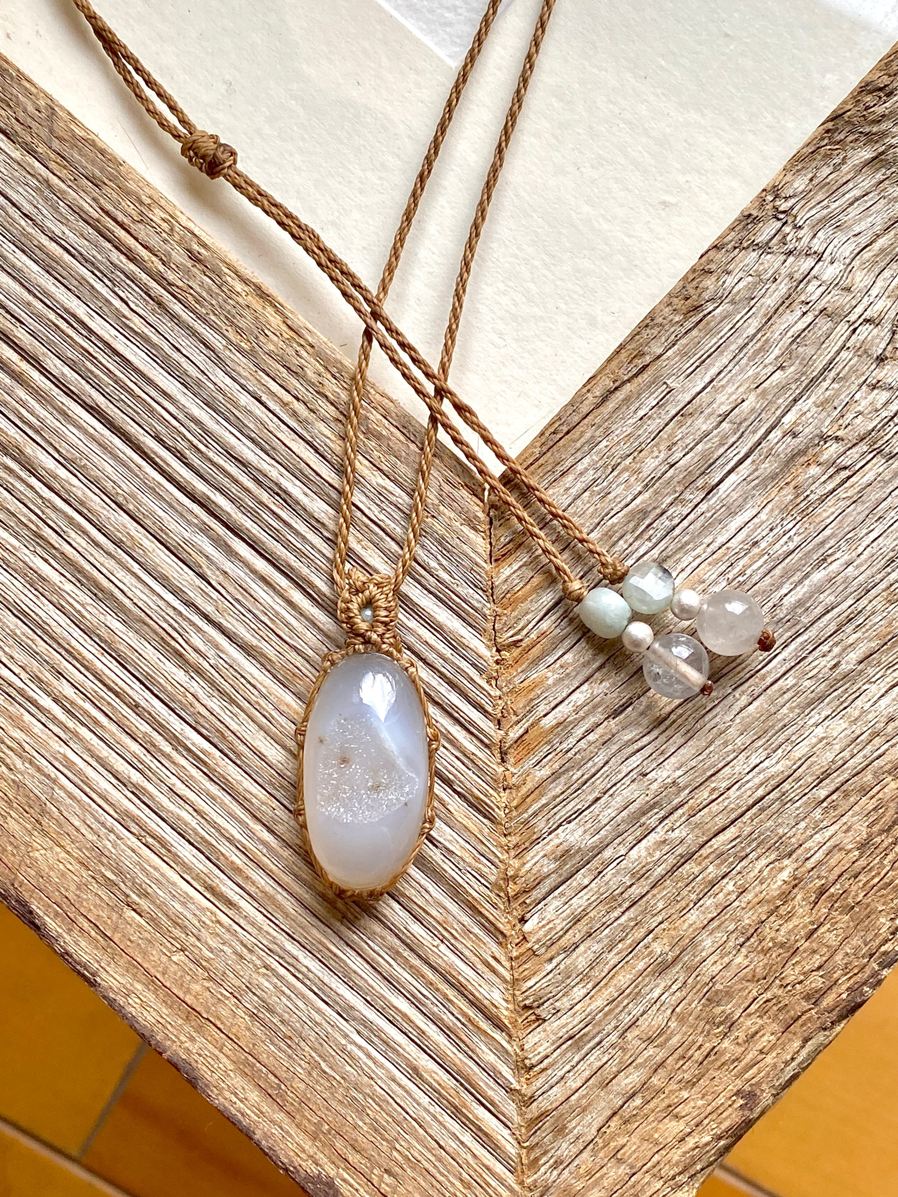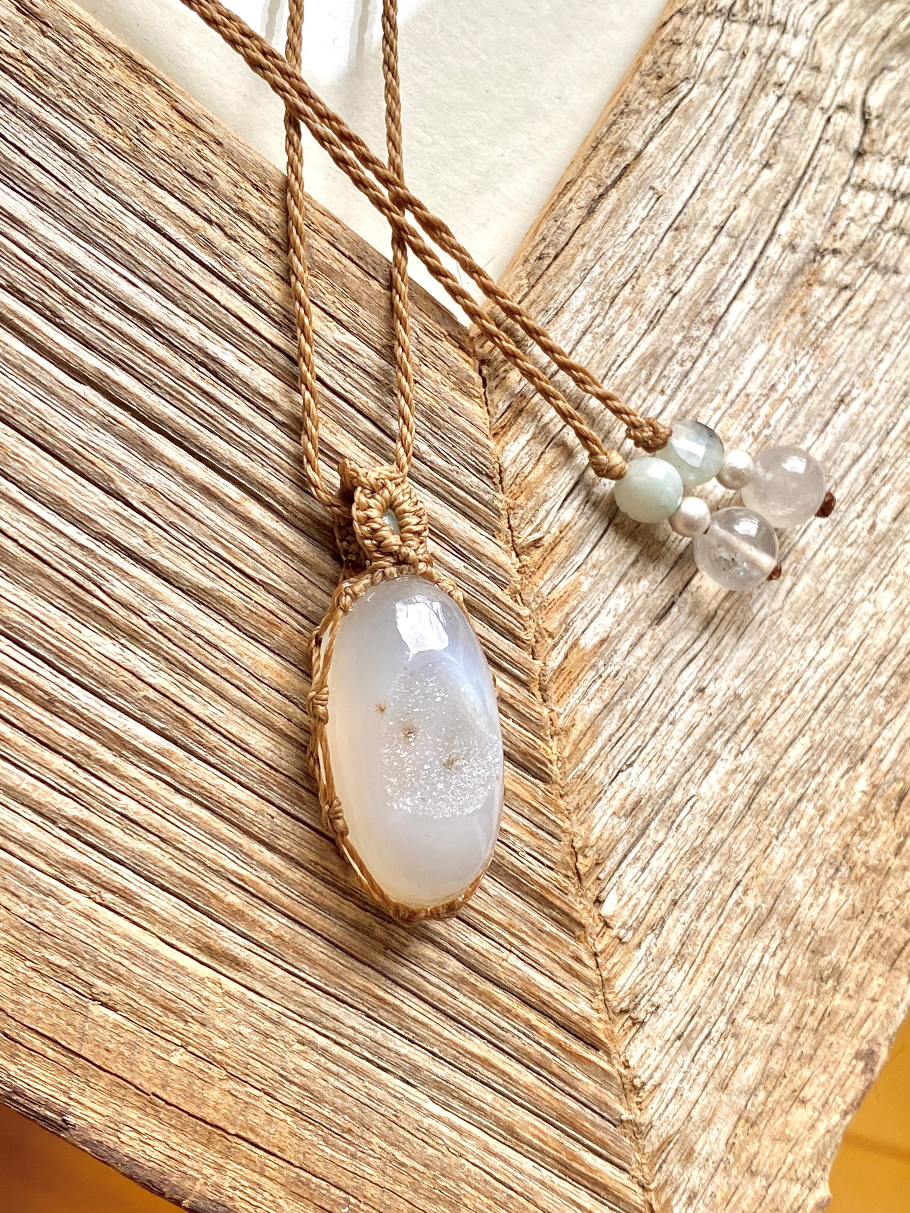 Milky way☆ホワイトドゥルージーアゲート天然石マクラメネックレス