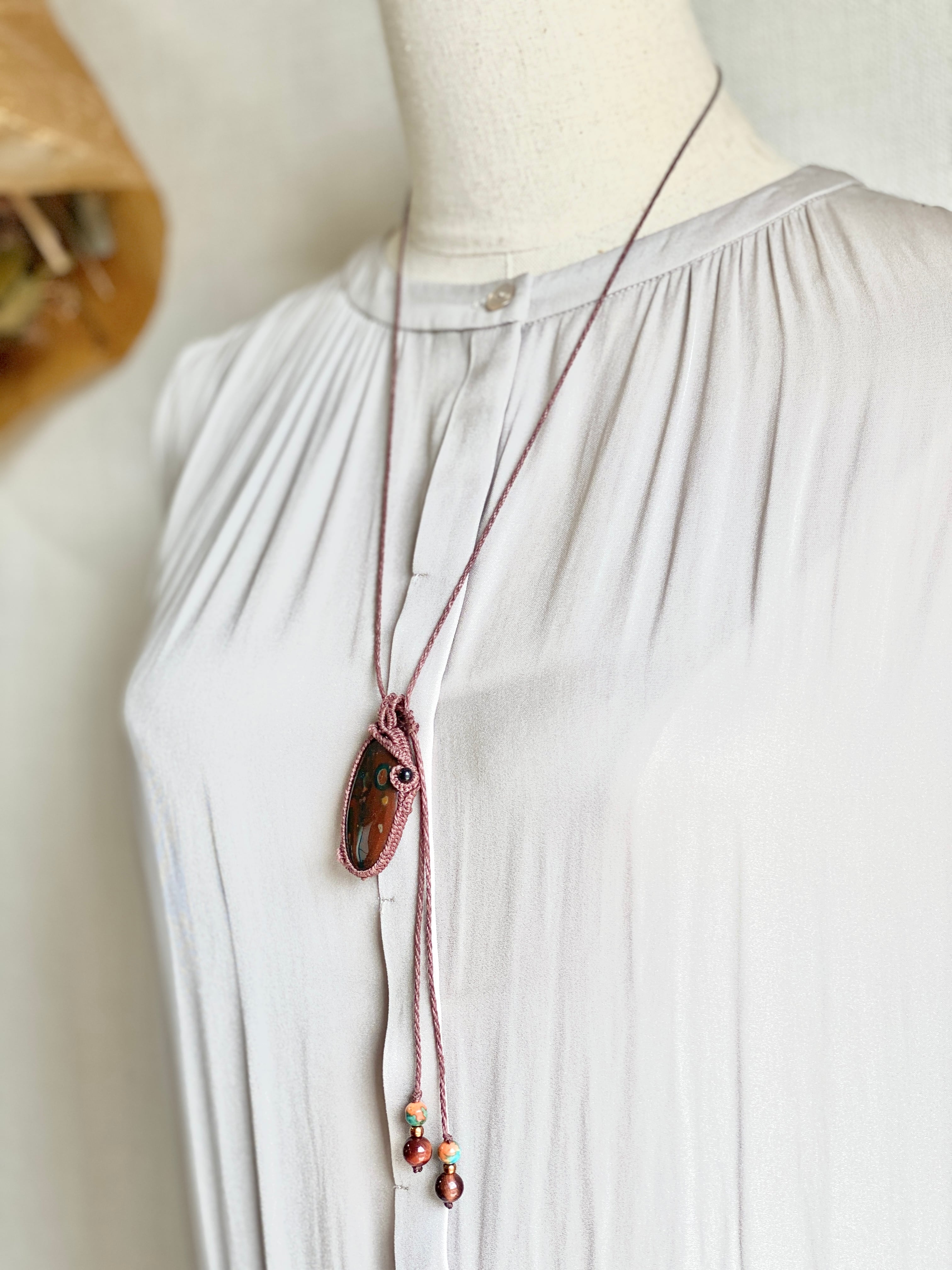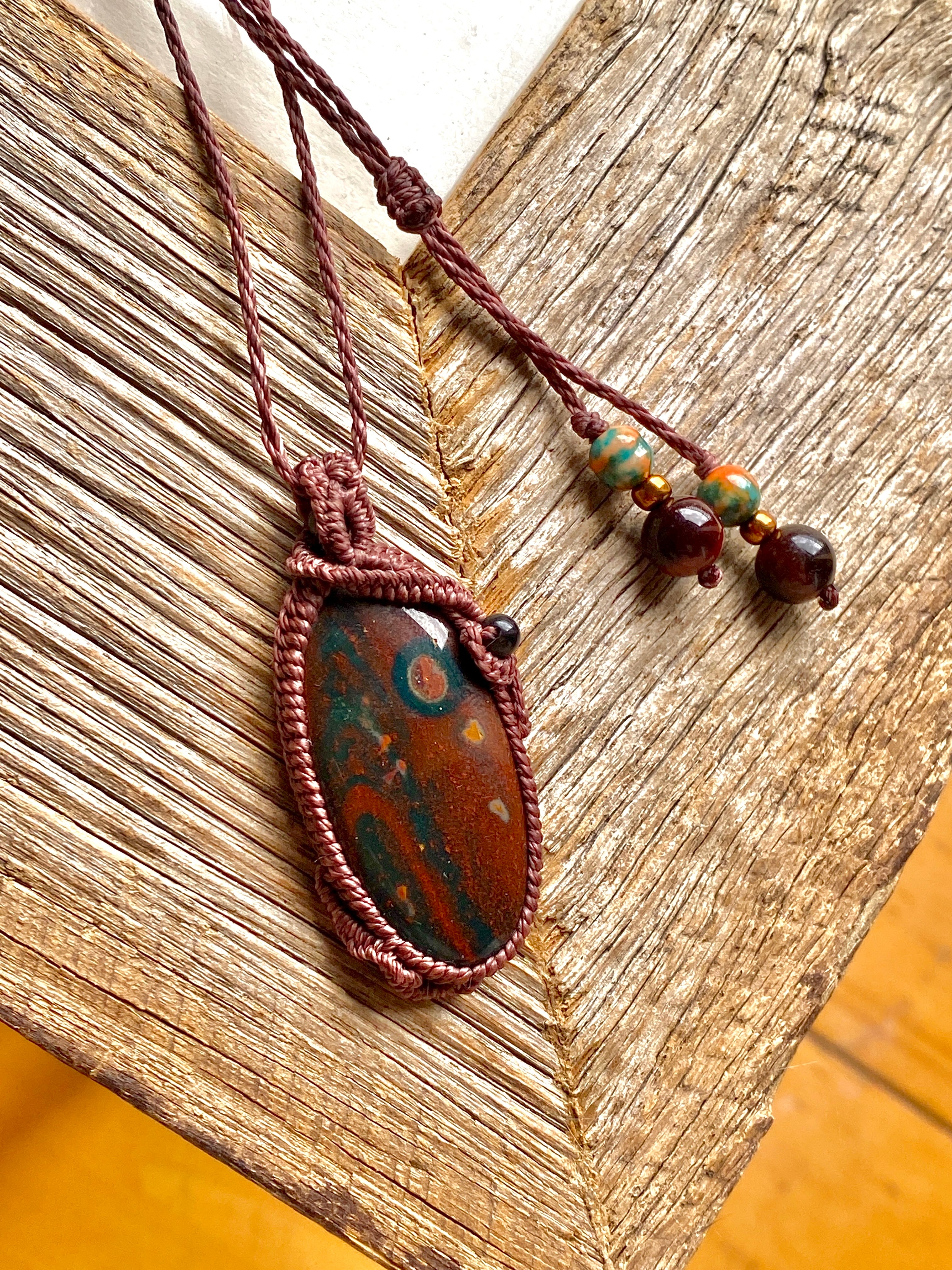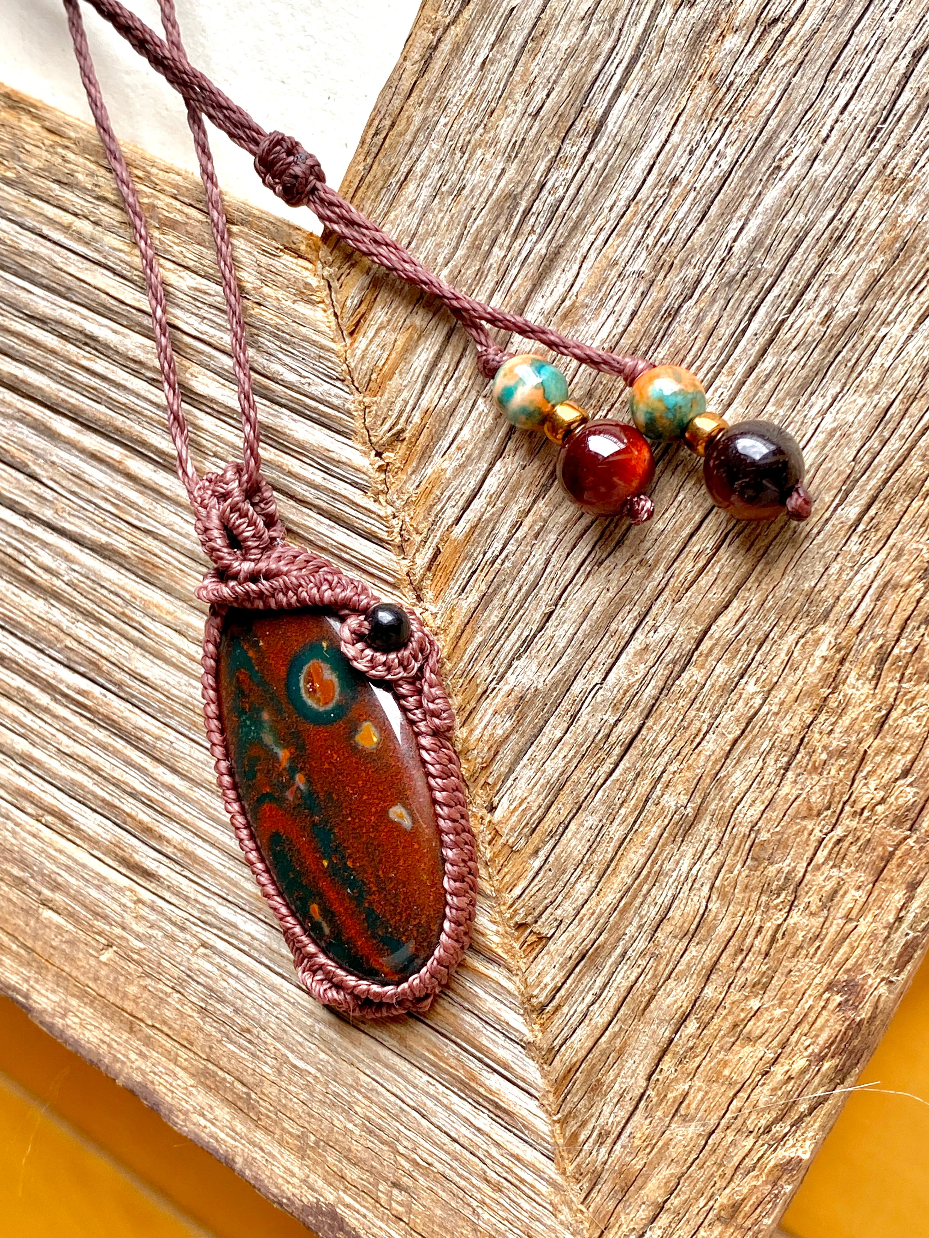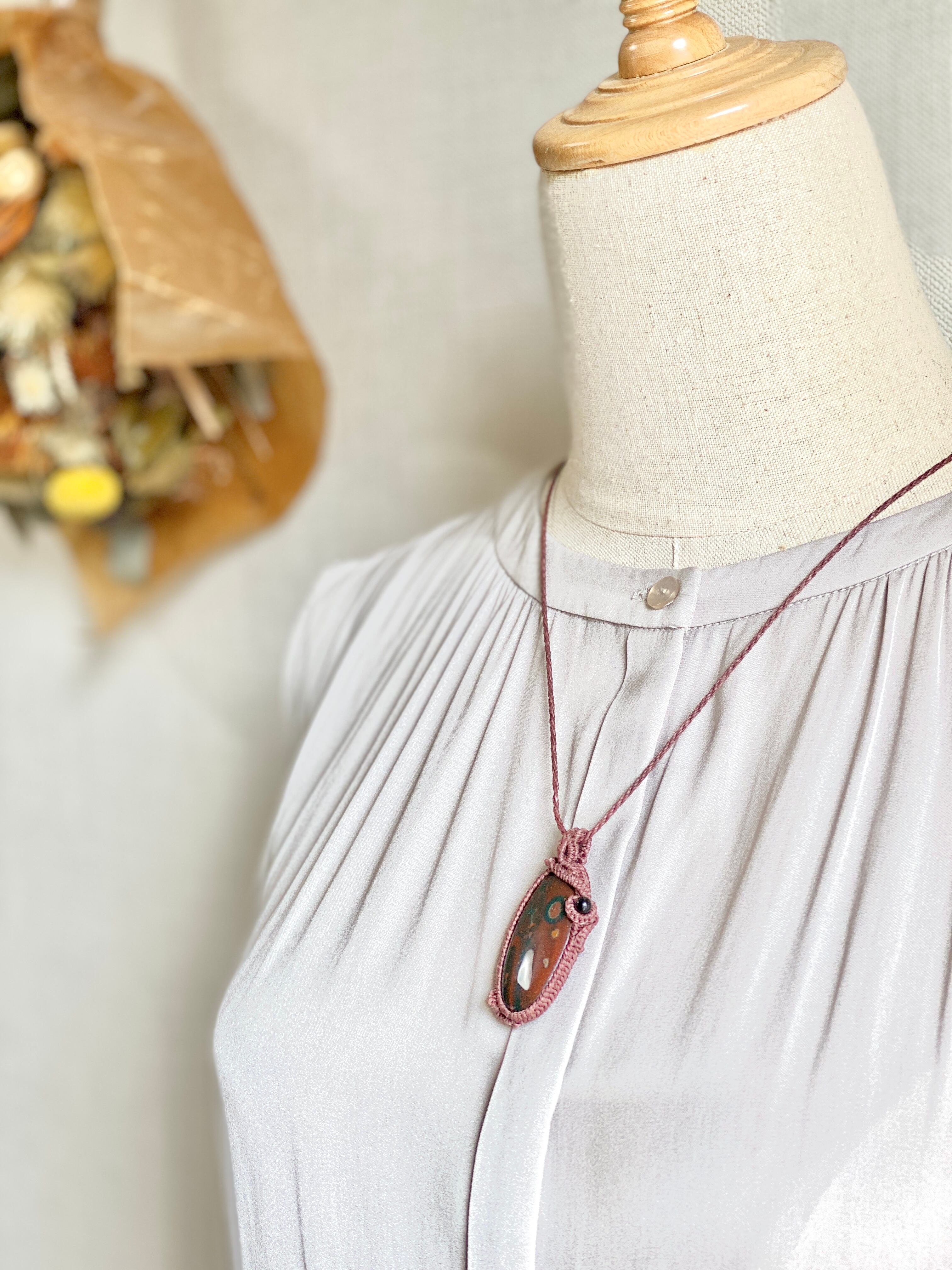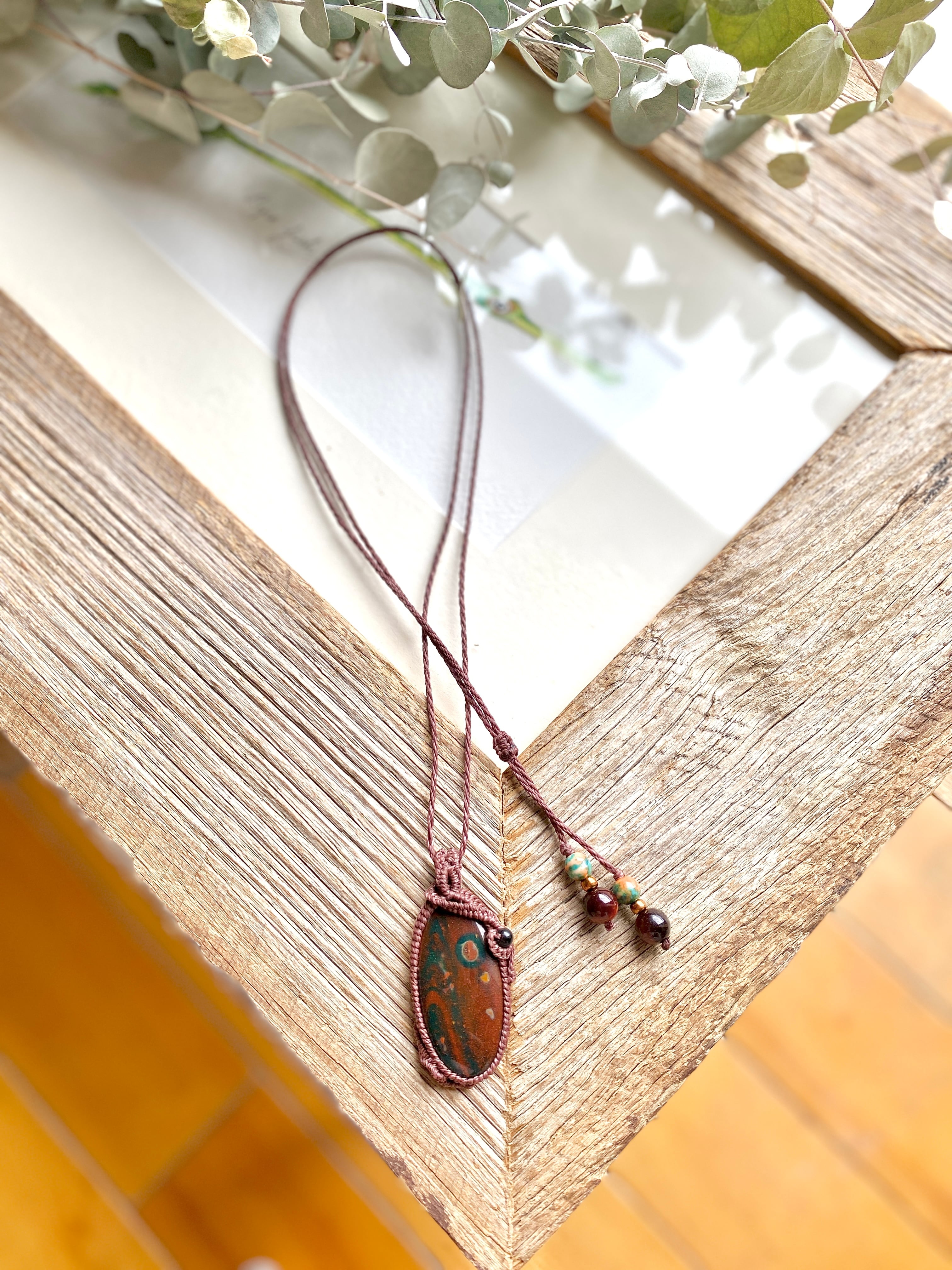 神秘☆ブラッドストーン天然石マクラメネックレス/日々のお守りアクセサリー