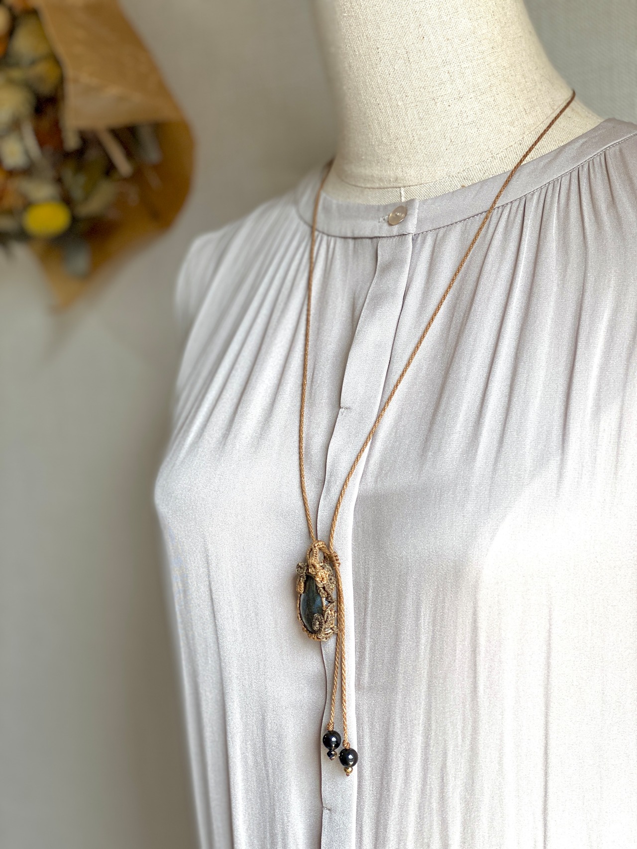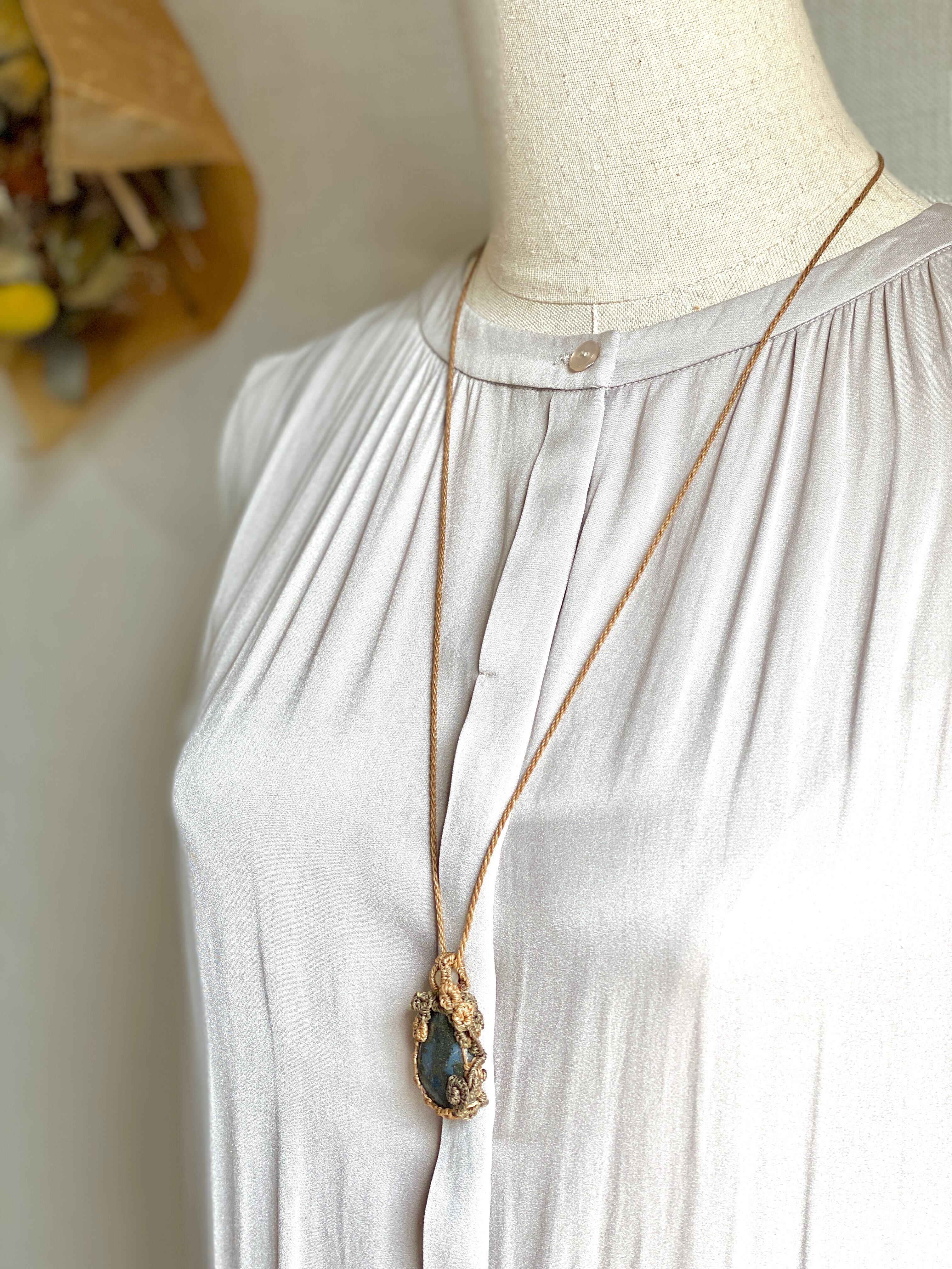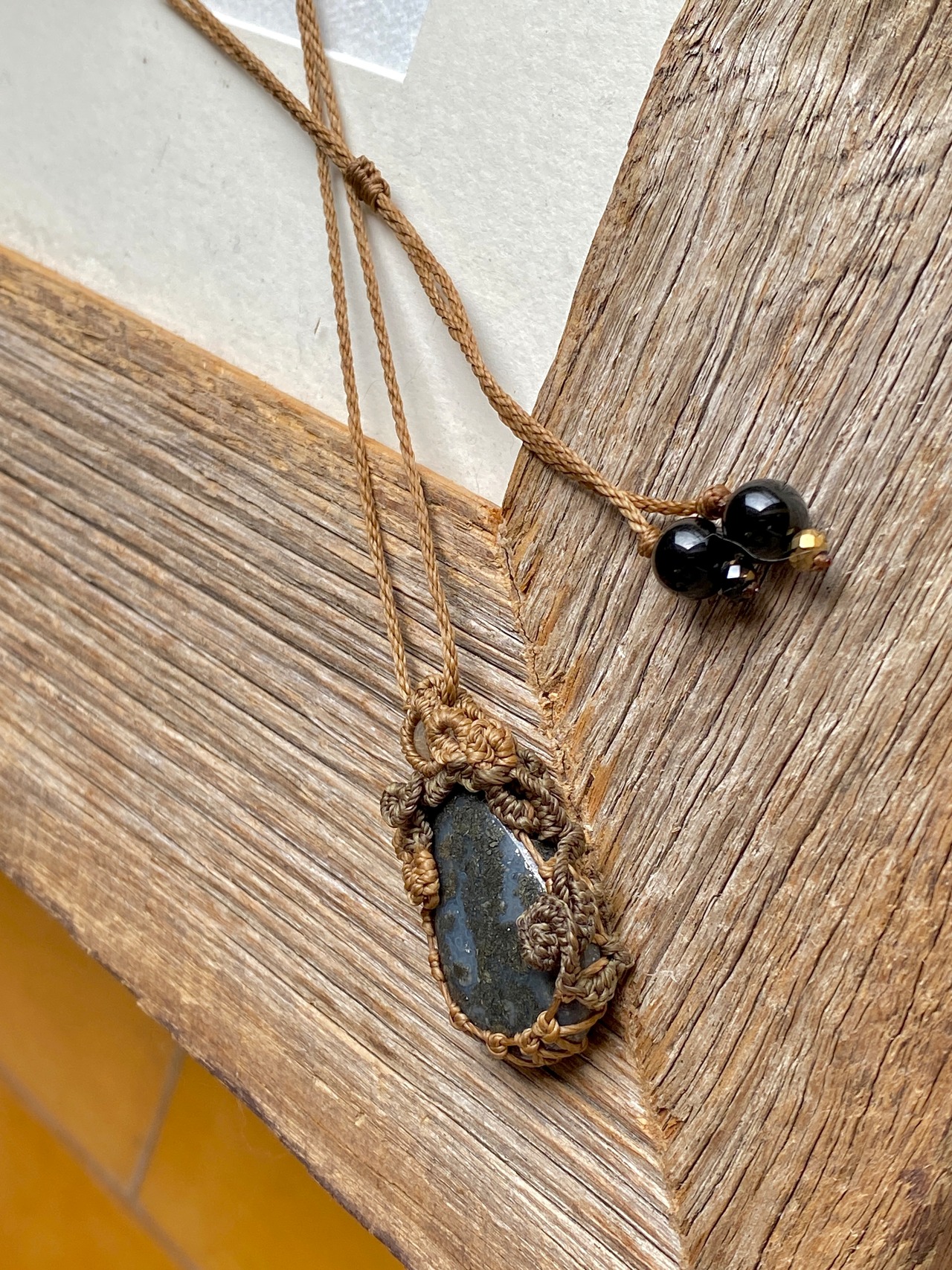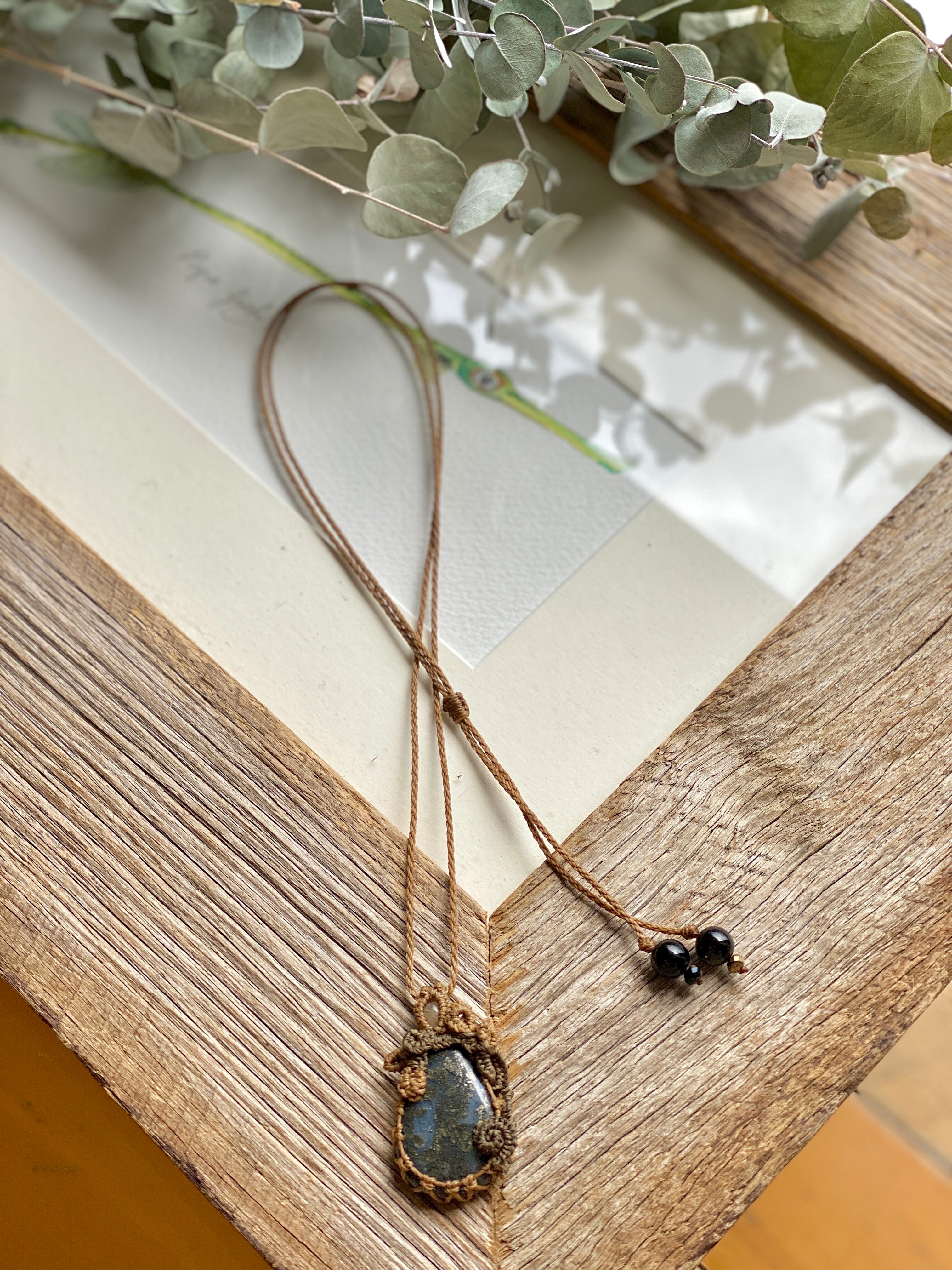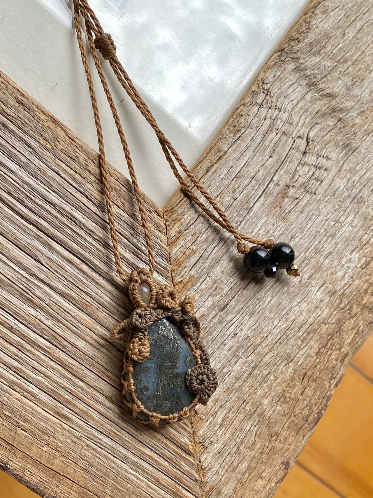 知性の石☆マルカサイトアゲート天然石マクラメネックレス/日々のお守りアクセサリー