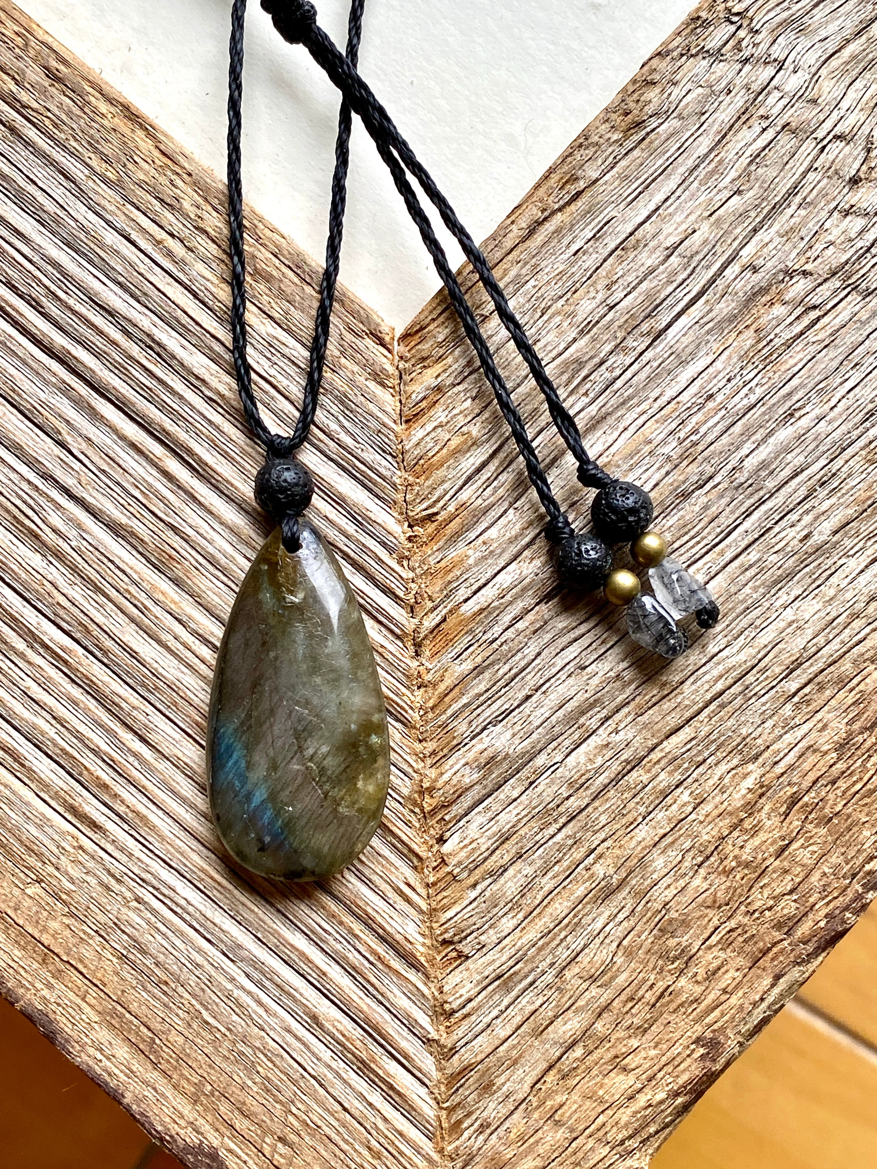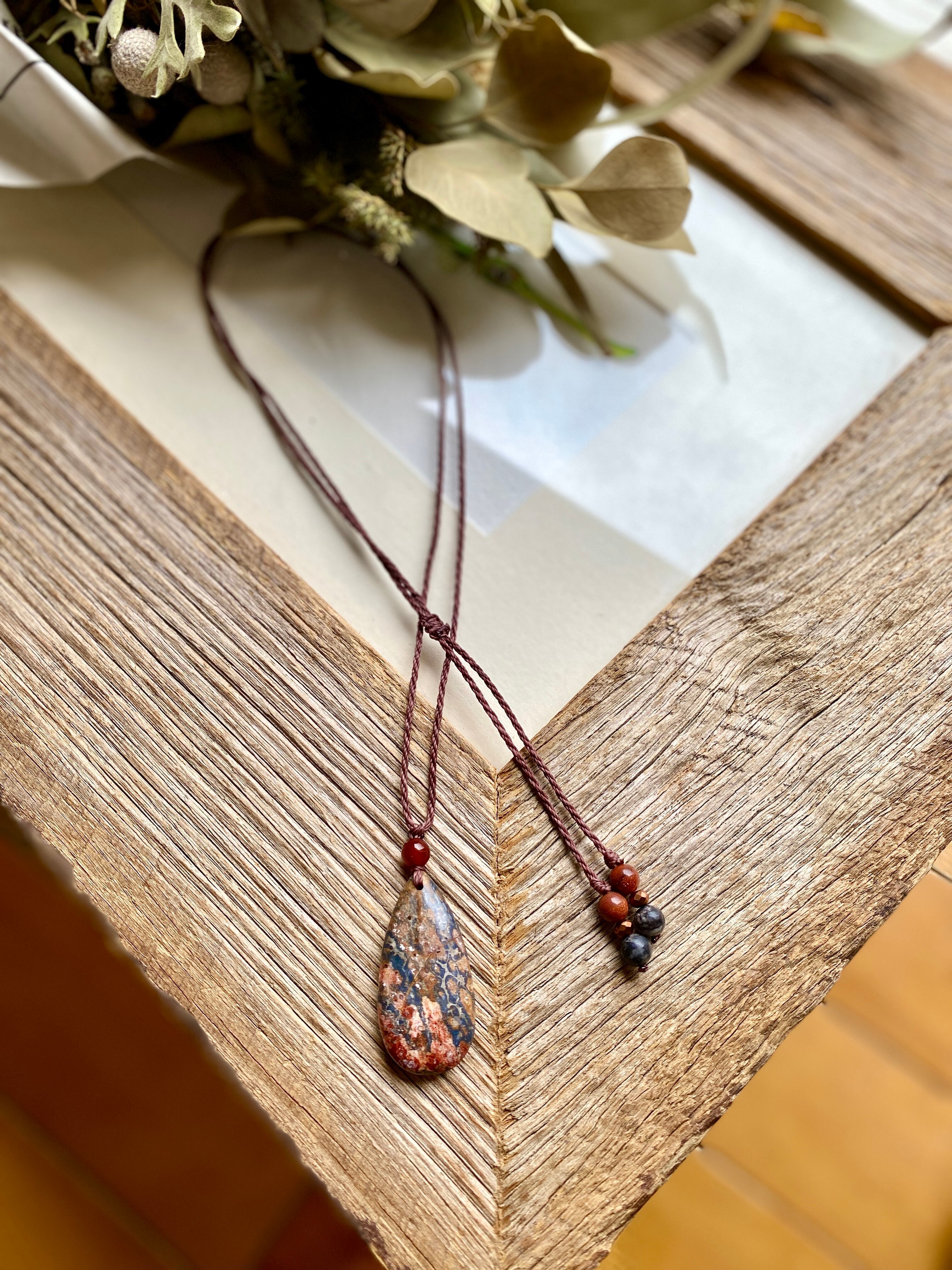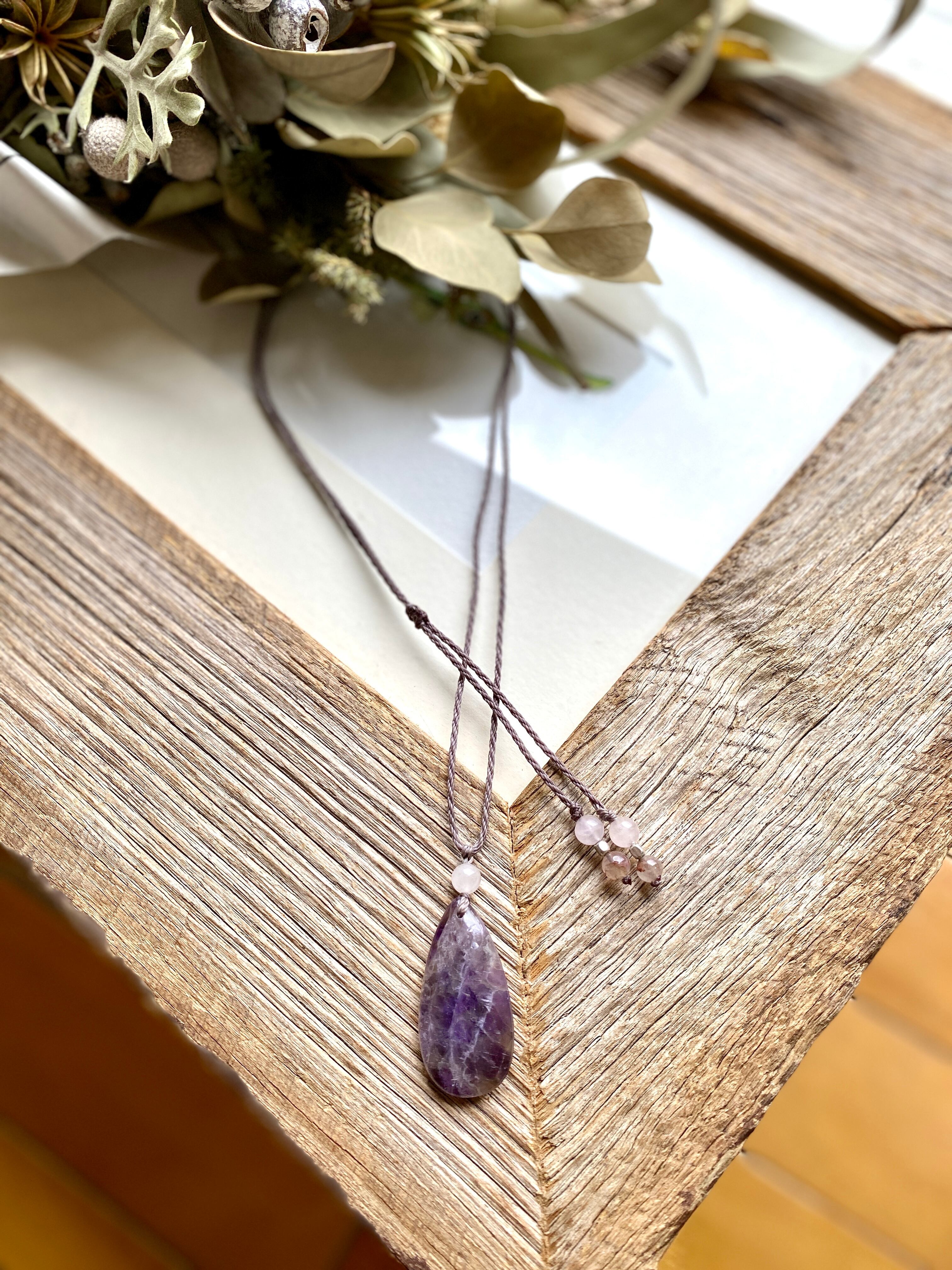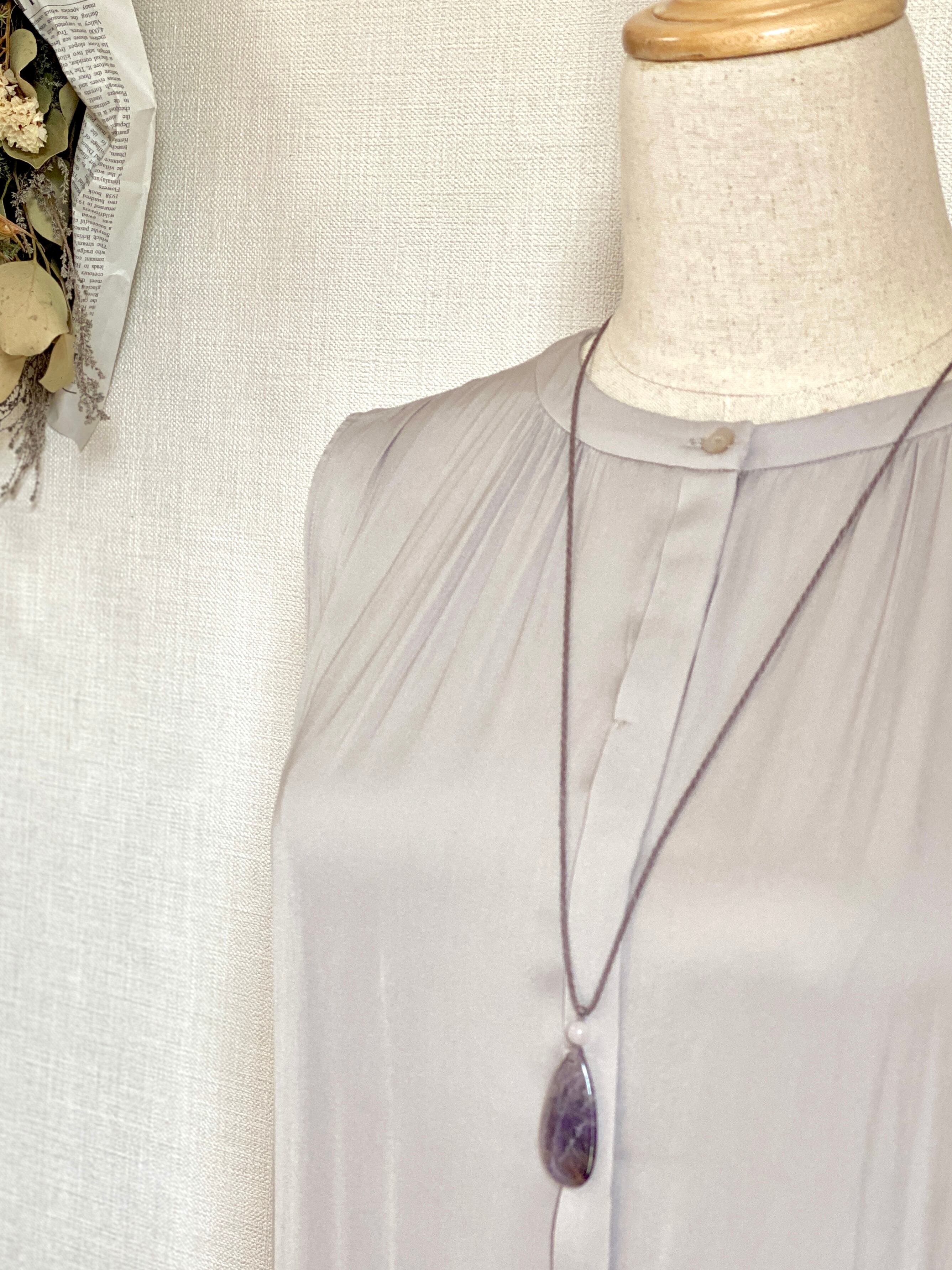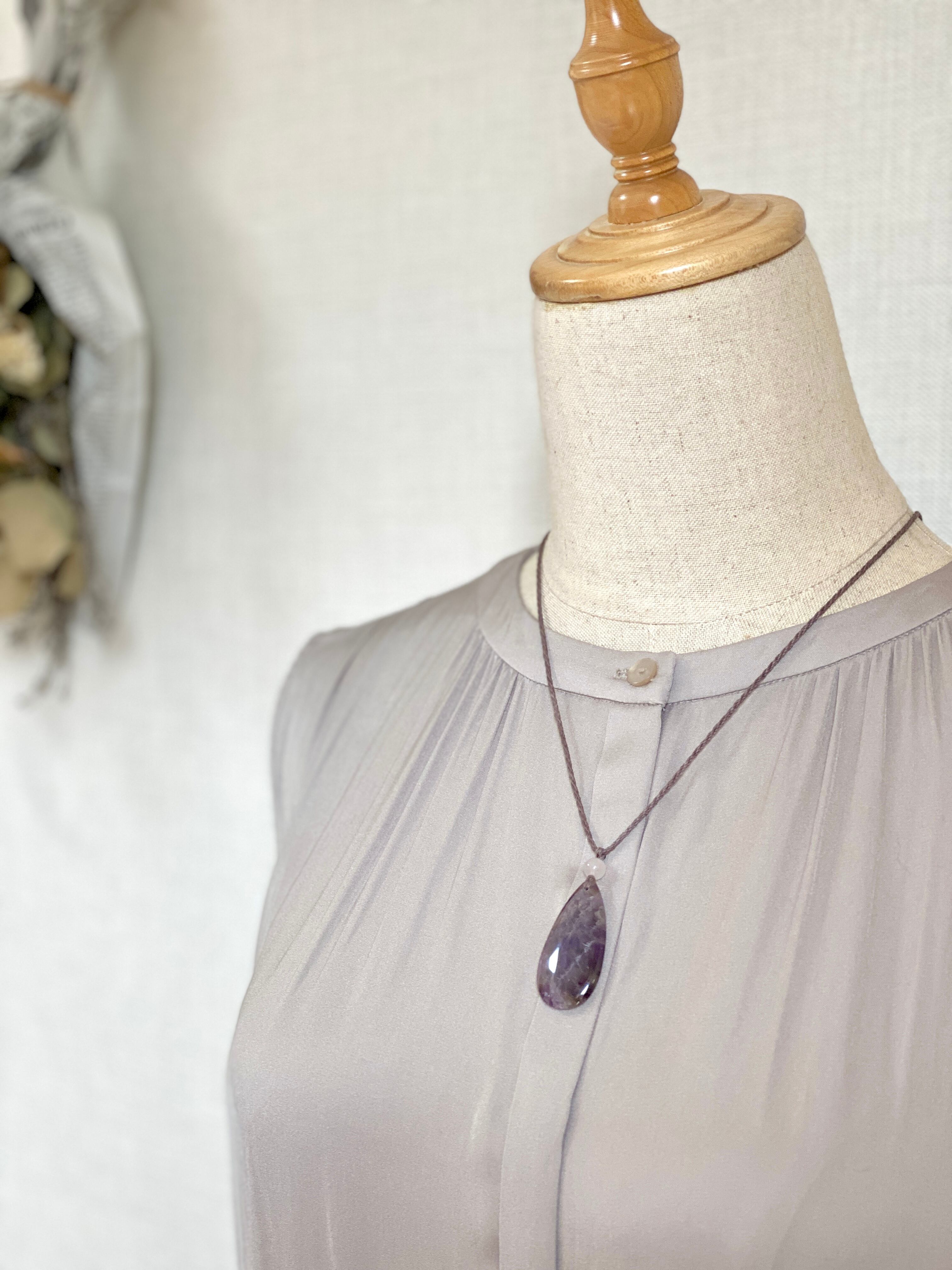 シンプルなドロップ型天然石をネックレスに仕上げました。