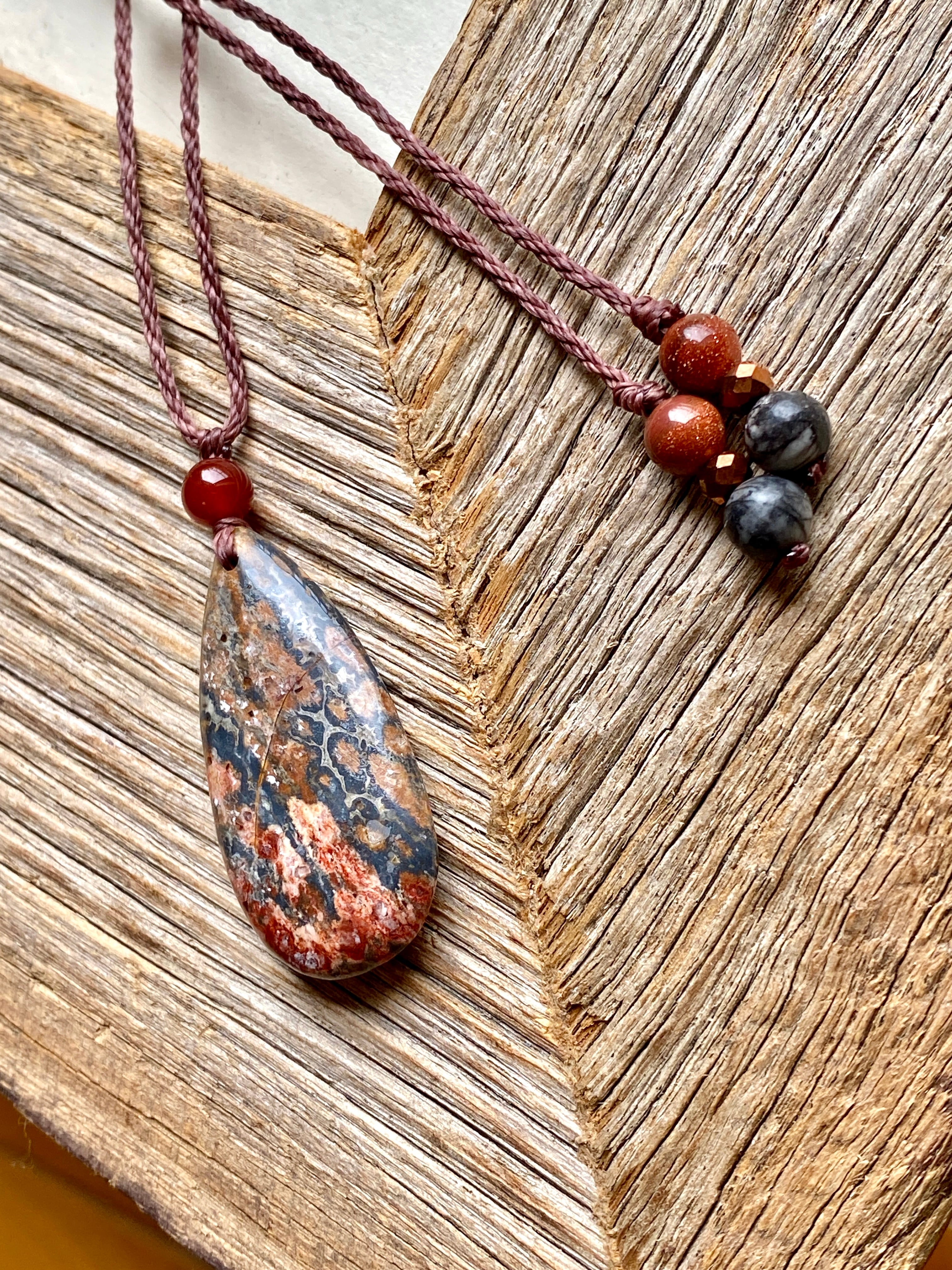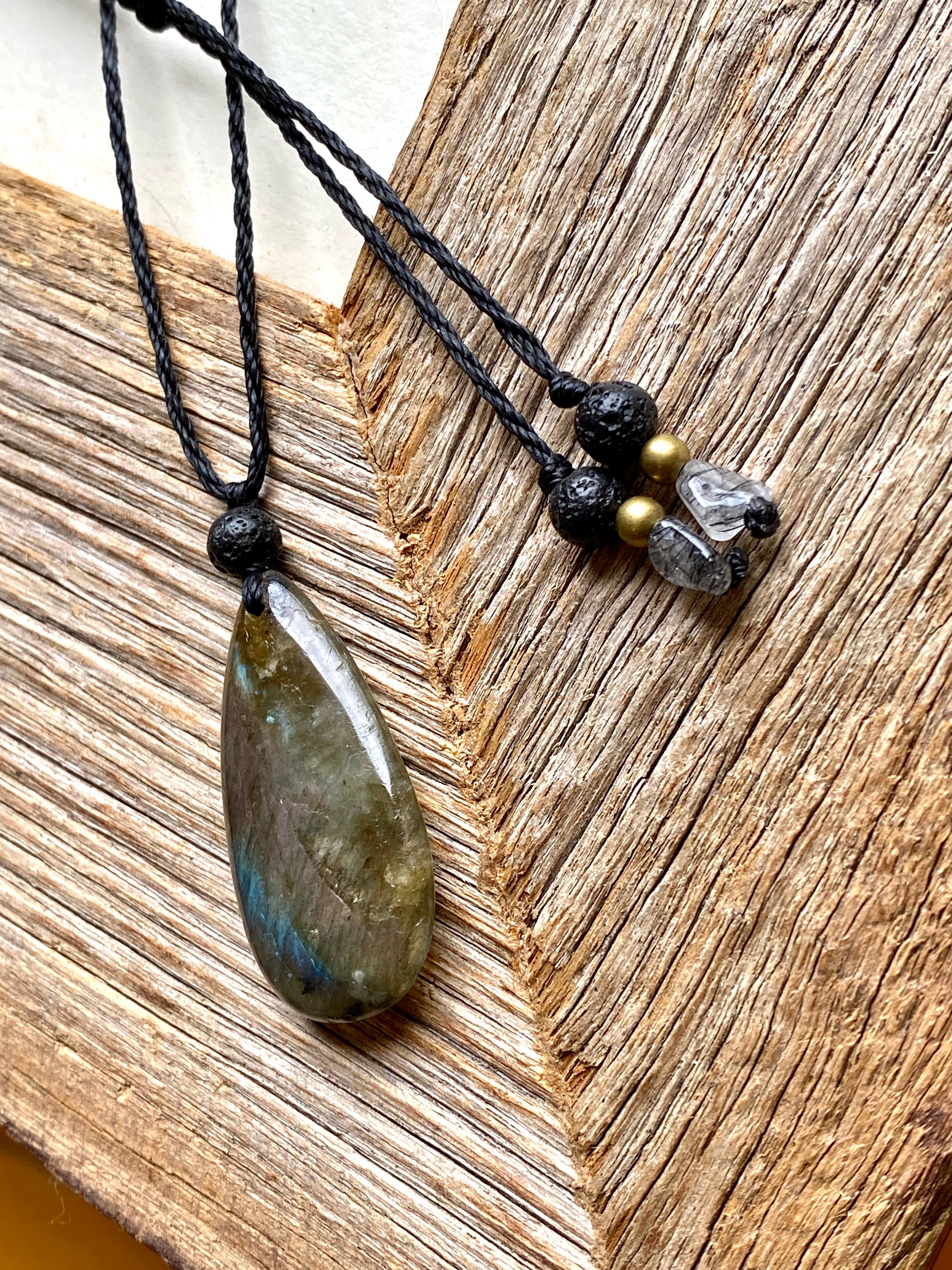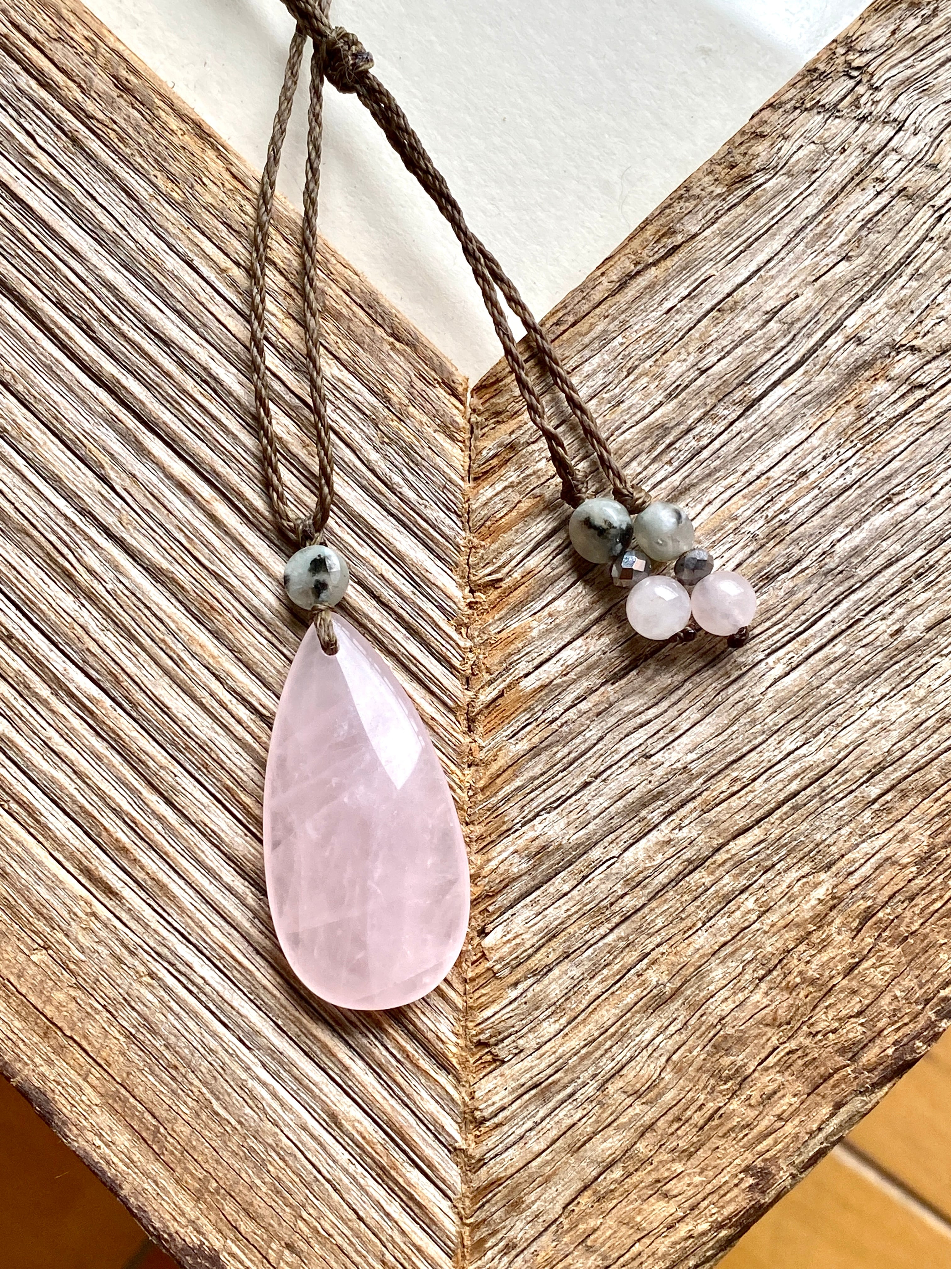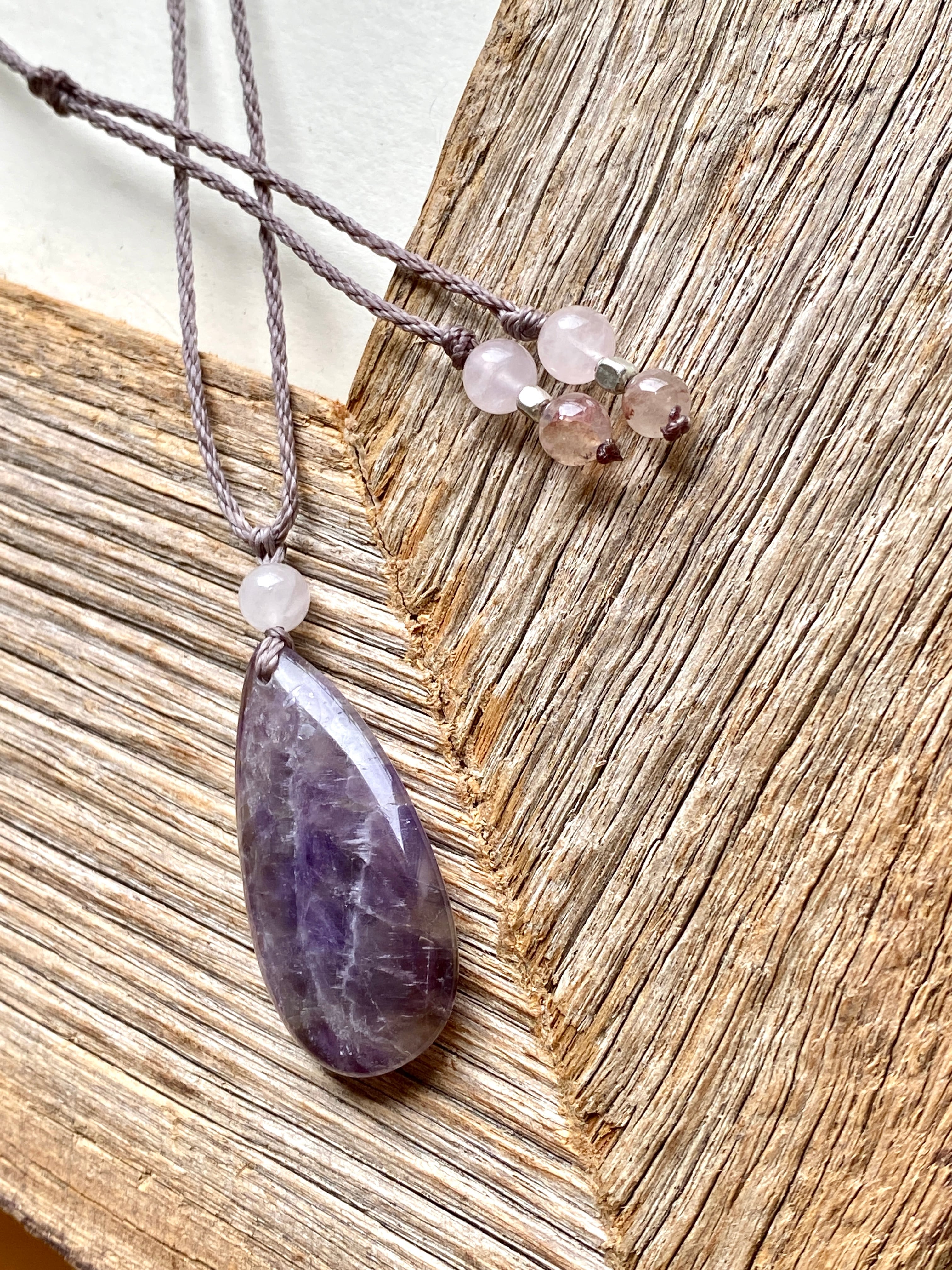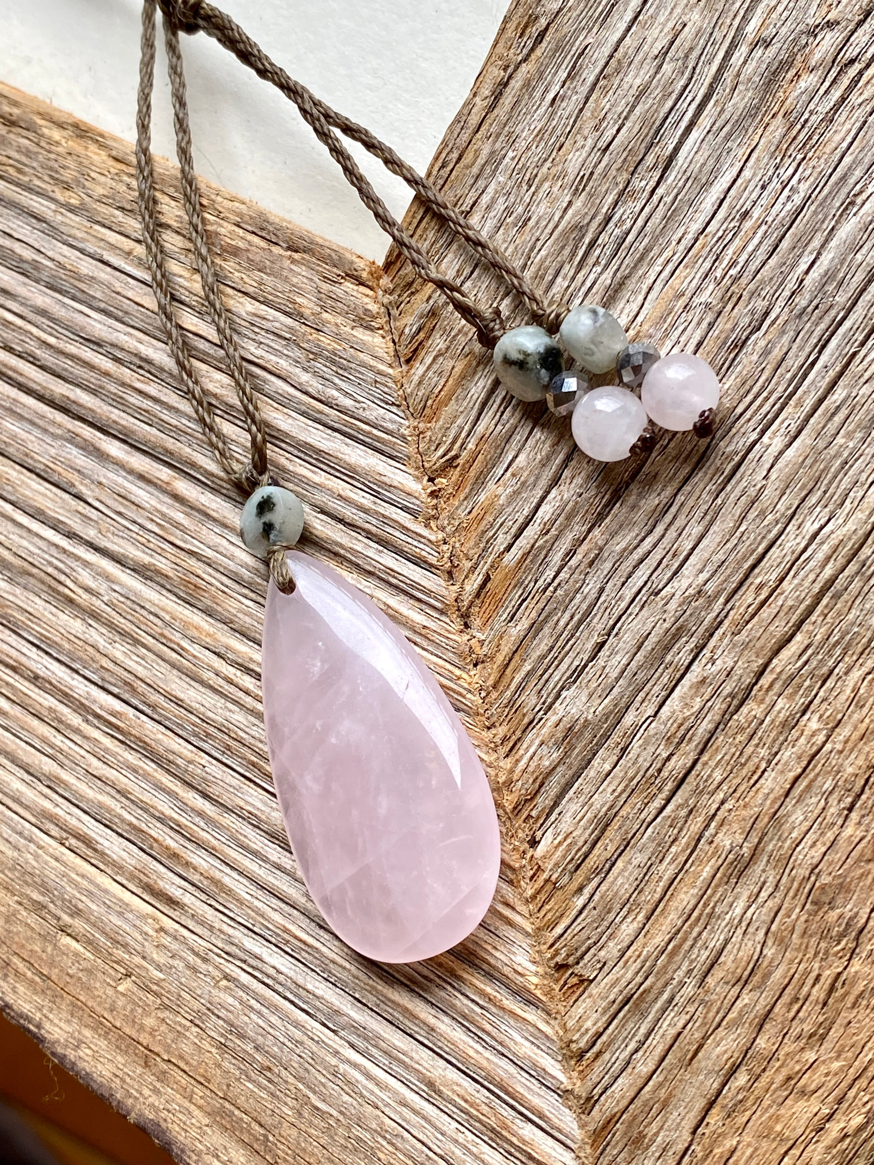 シンプルなドロップ型天然石をネックレスに仕上げました。