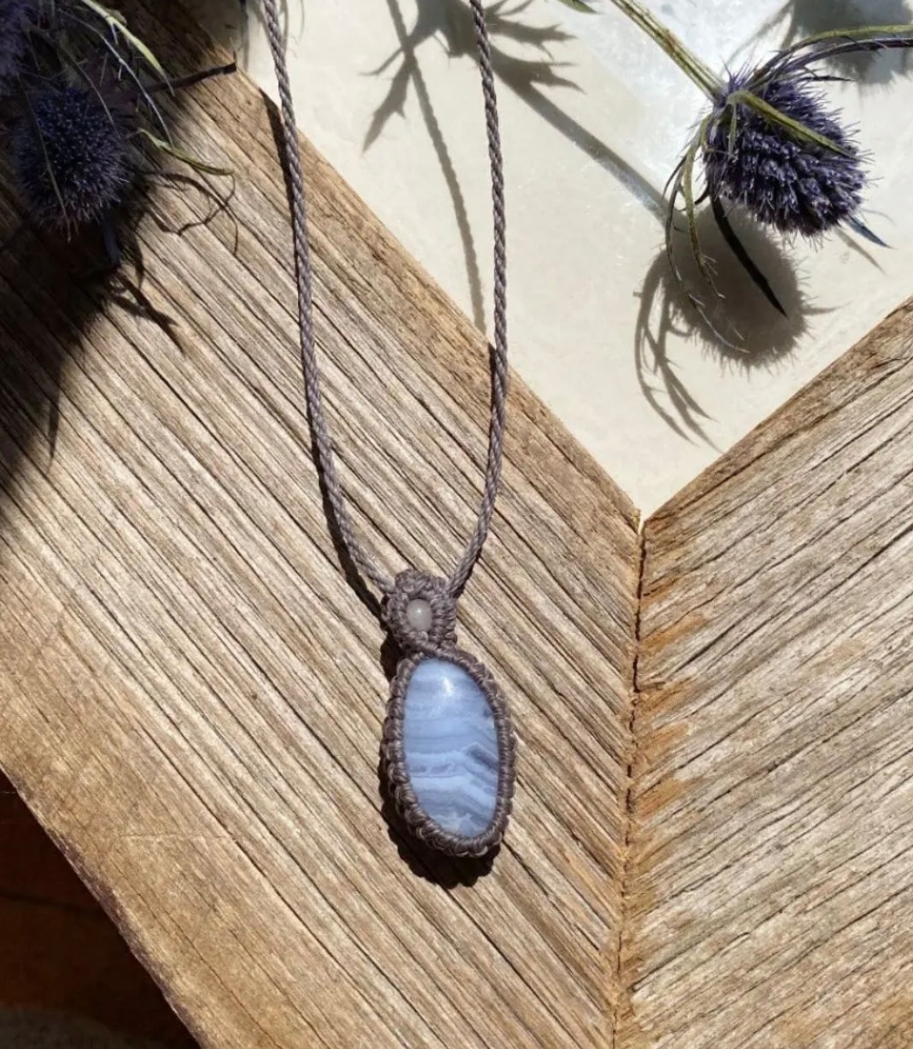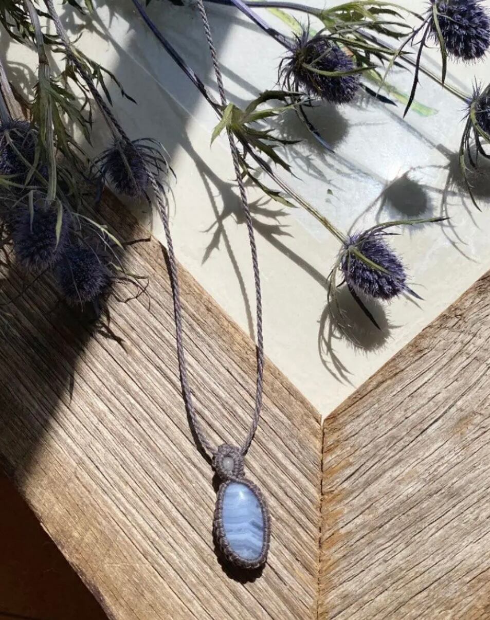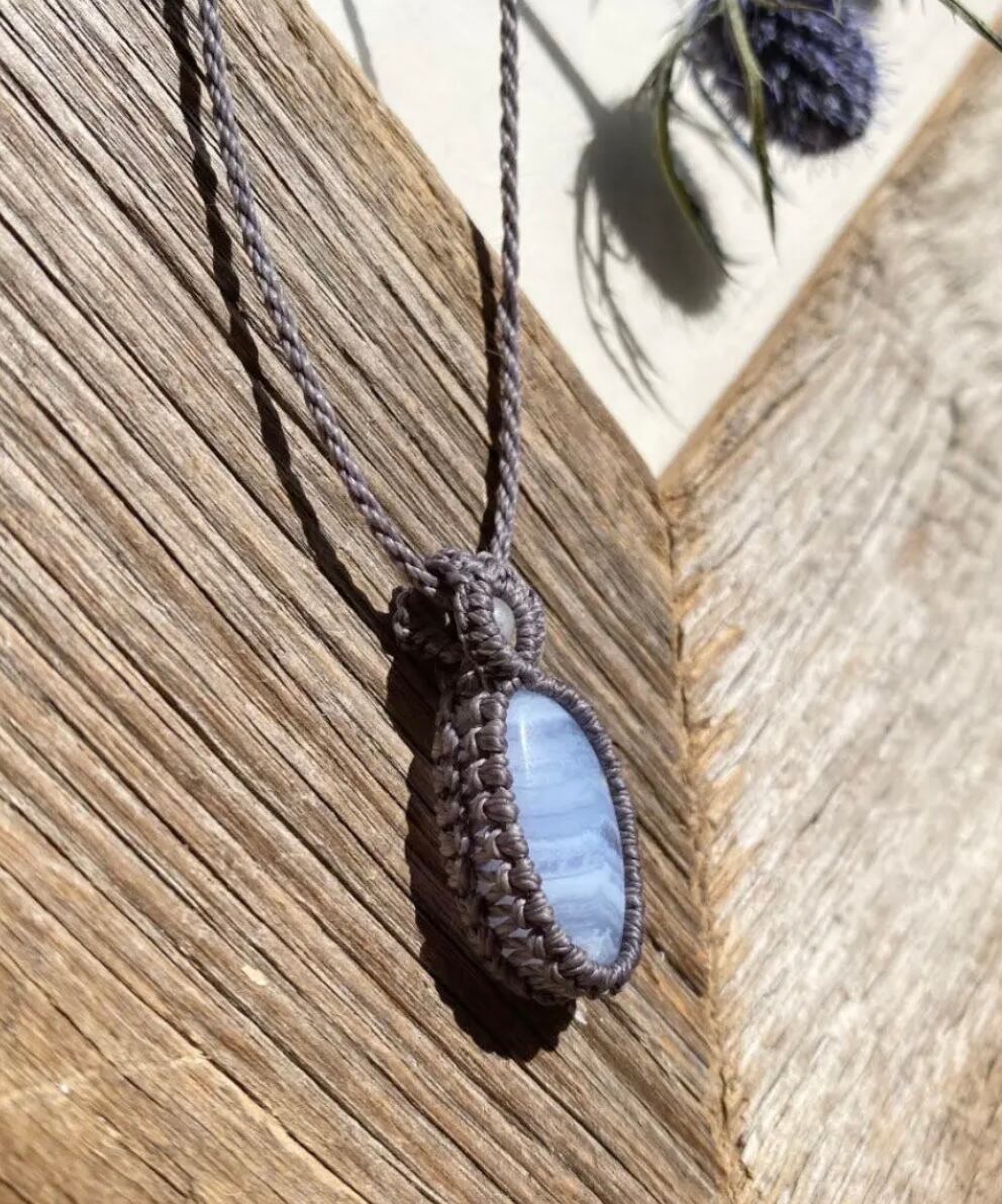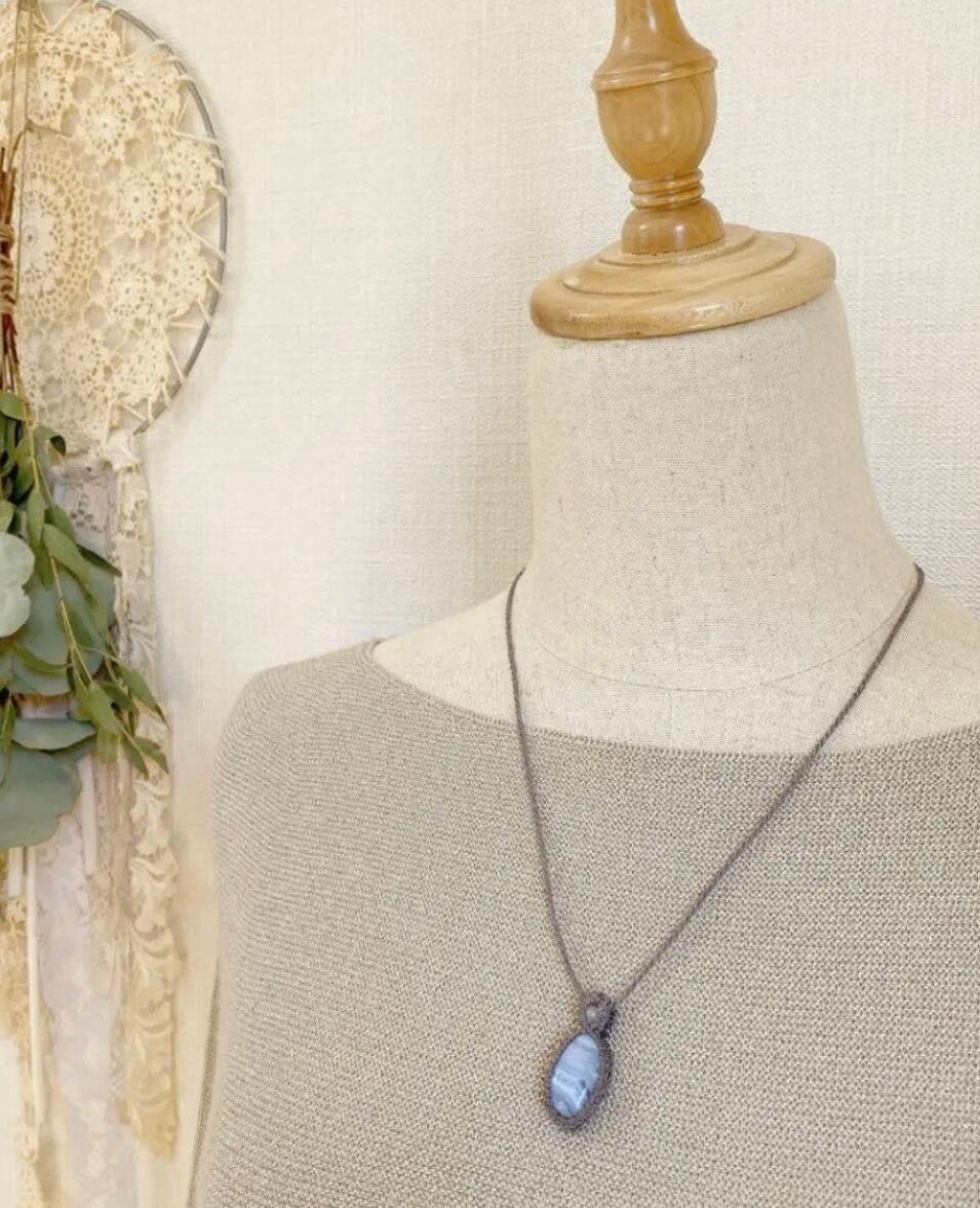 爽☆ブルーレースアゲート 天然石マクラメネックレス/日々のお守りアクセサリー