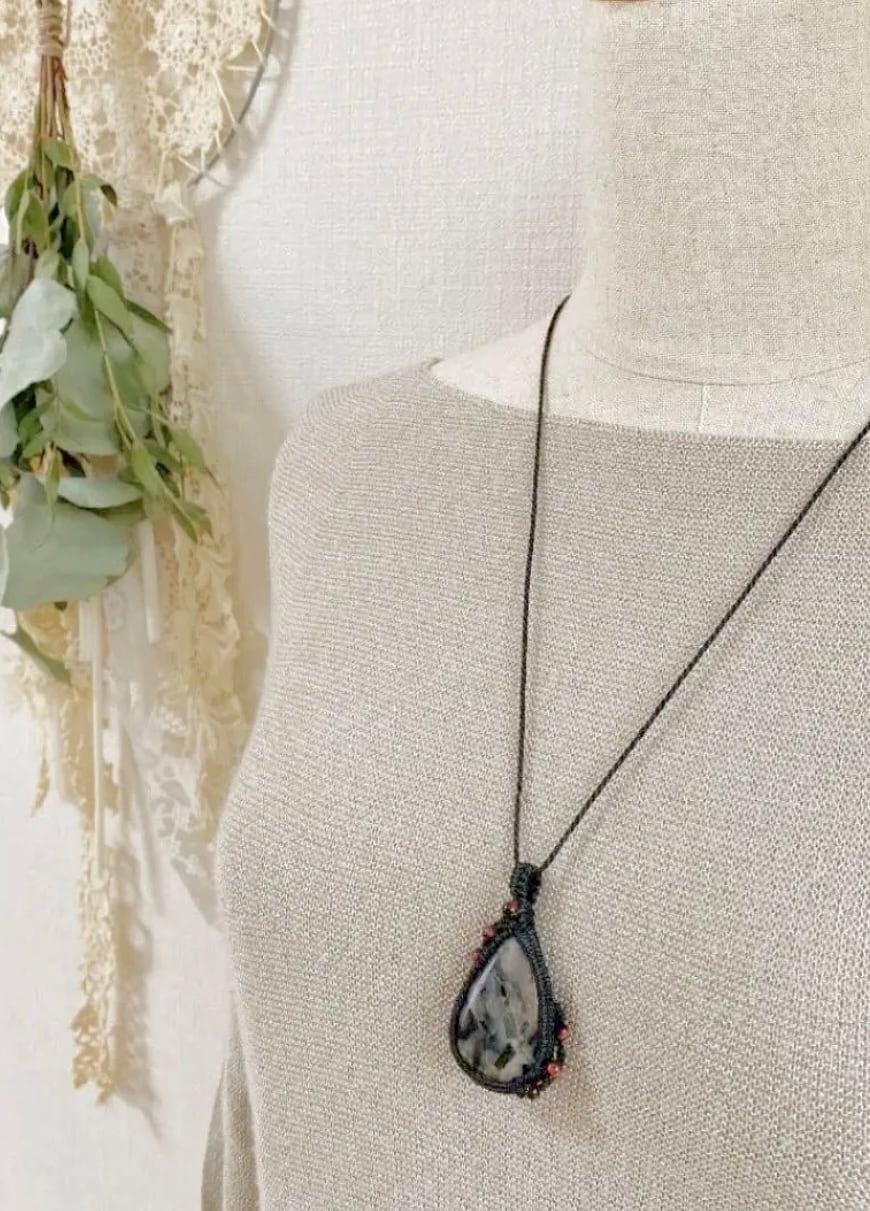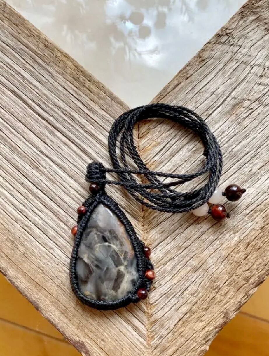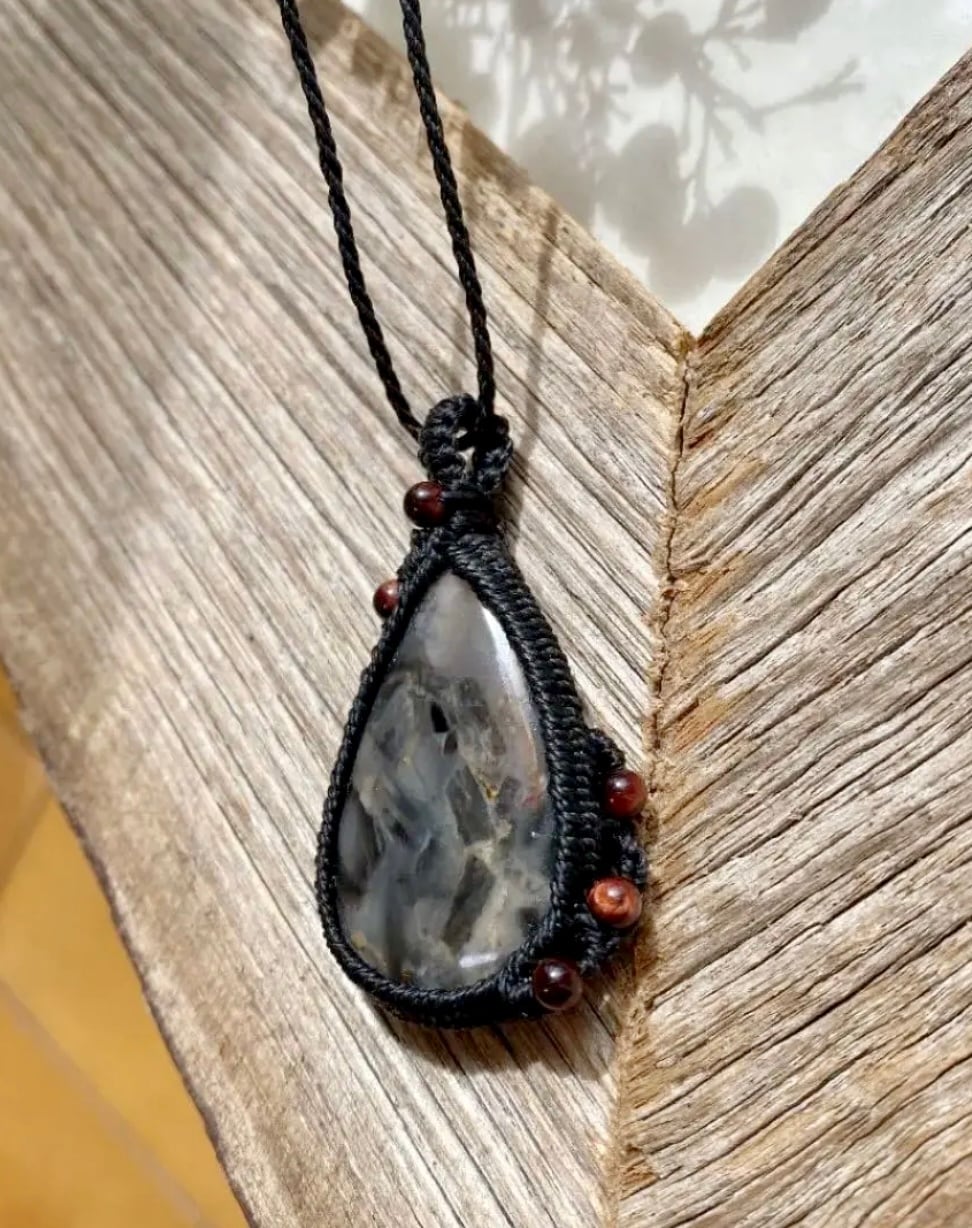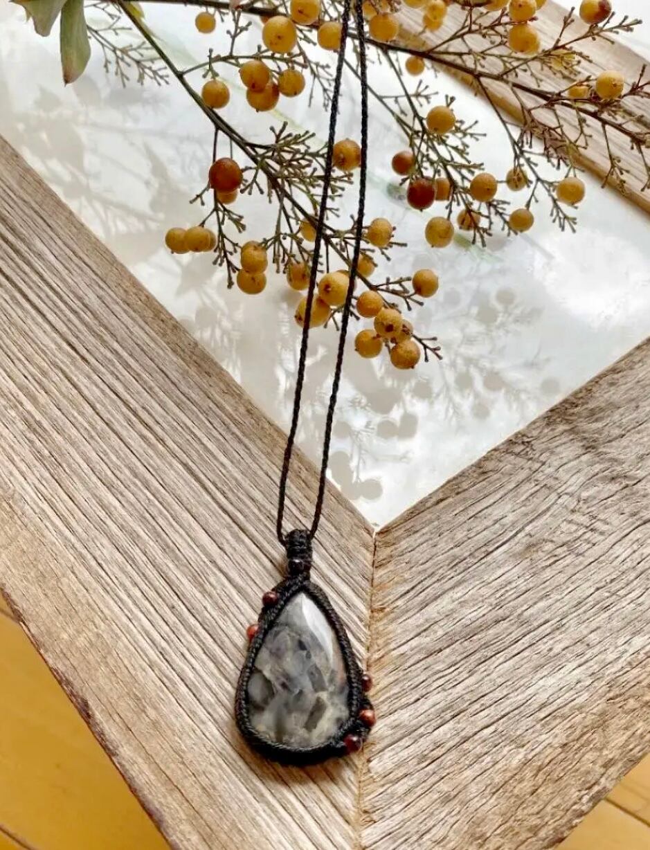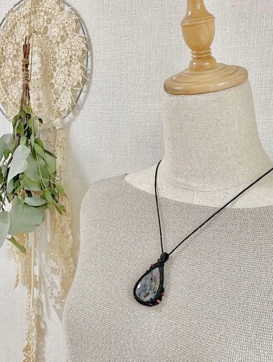 mosaic☆ブラックレースアゲート天然石マクラメネックレス/日々のお守りアクセサリー