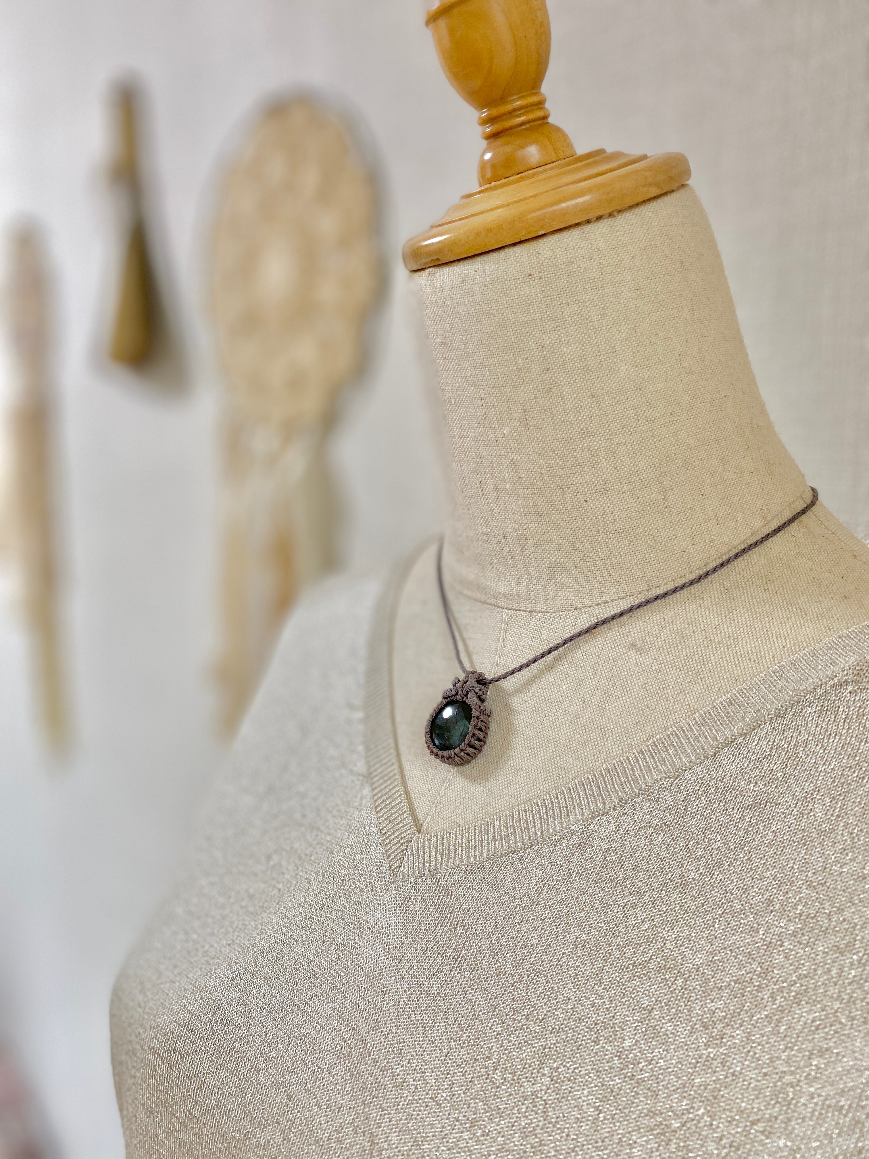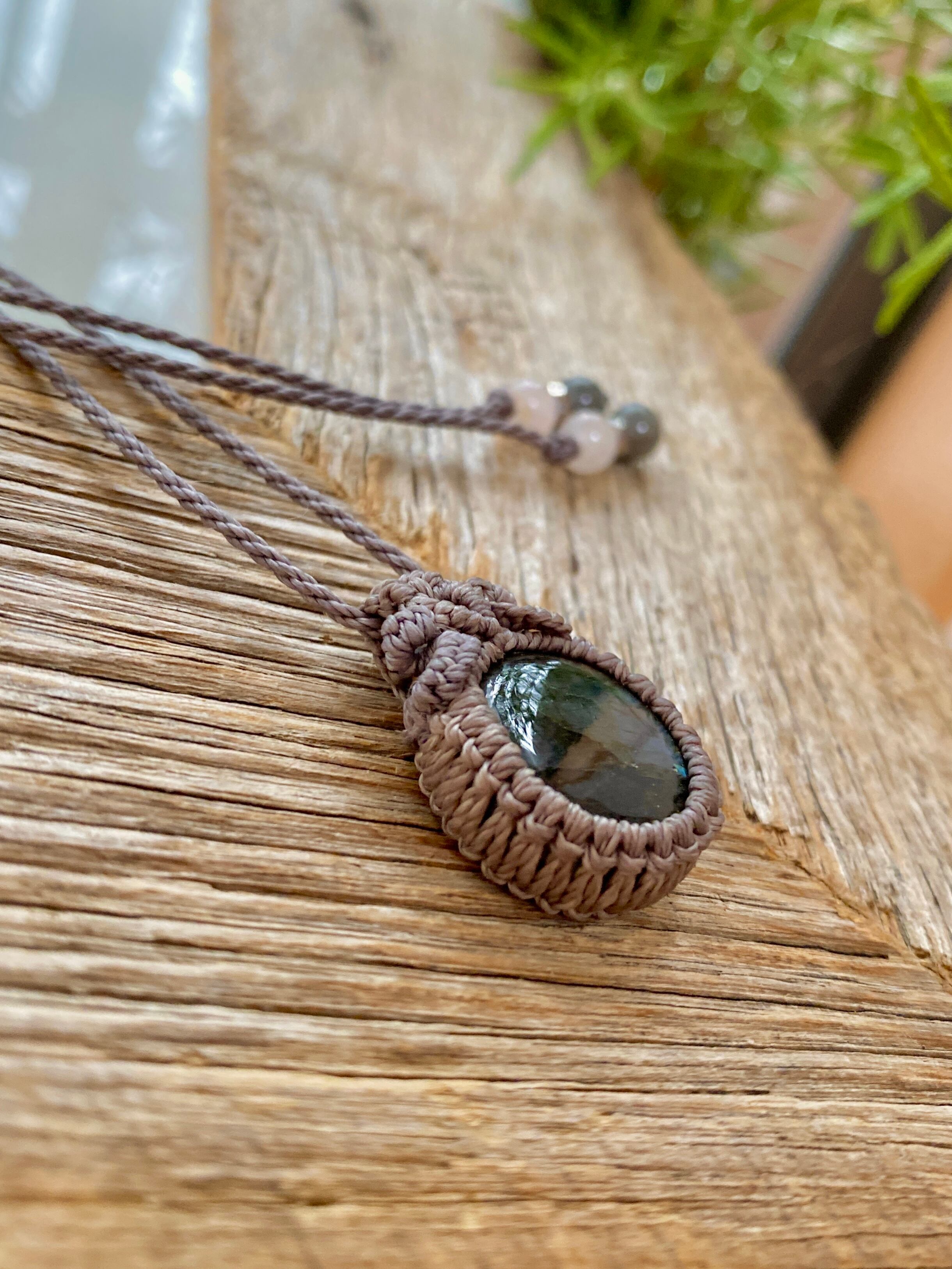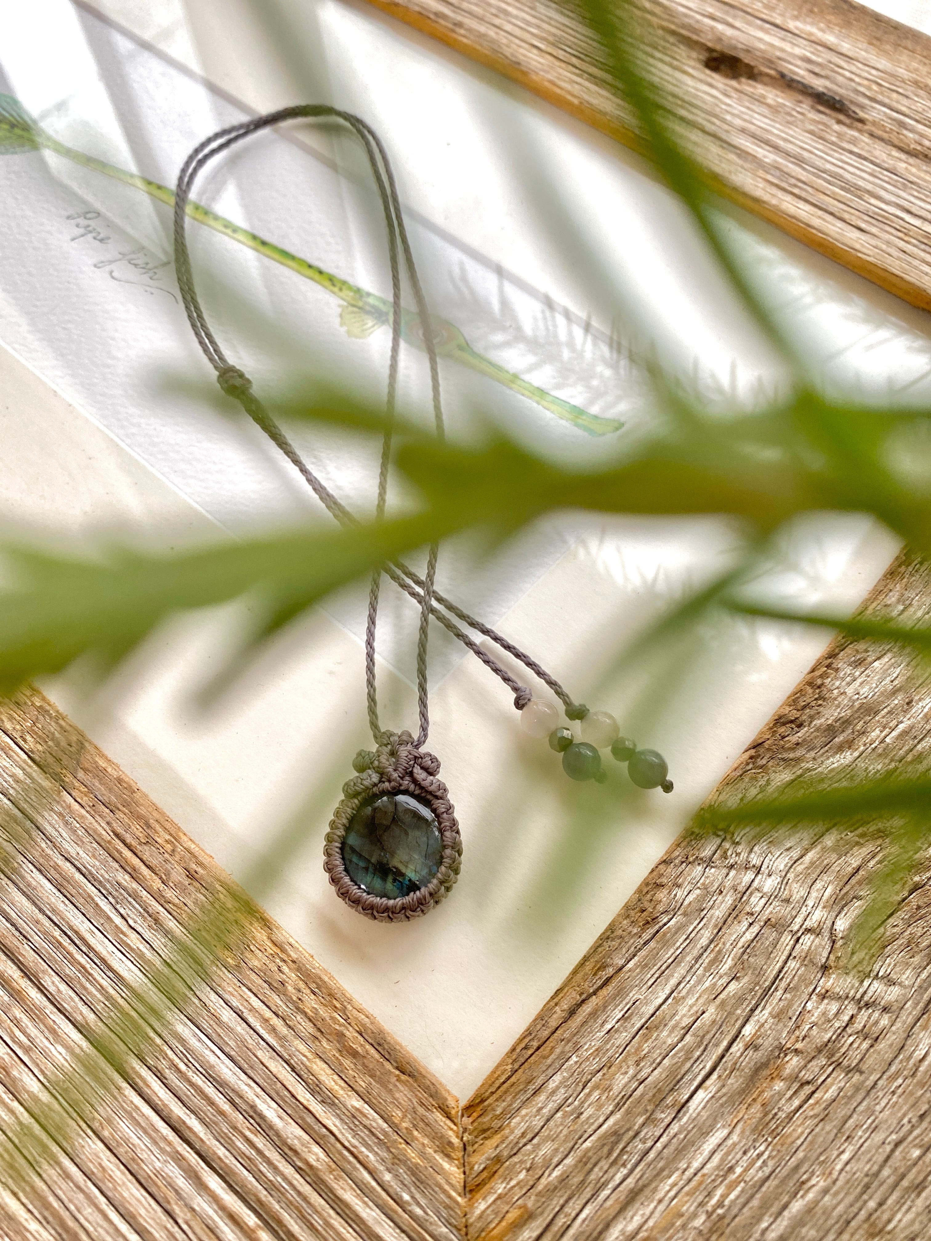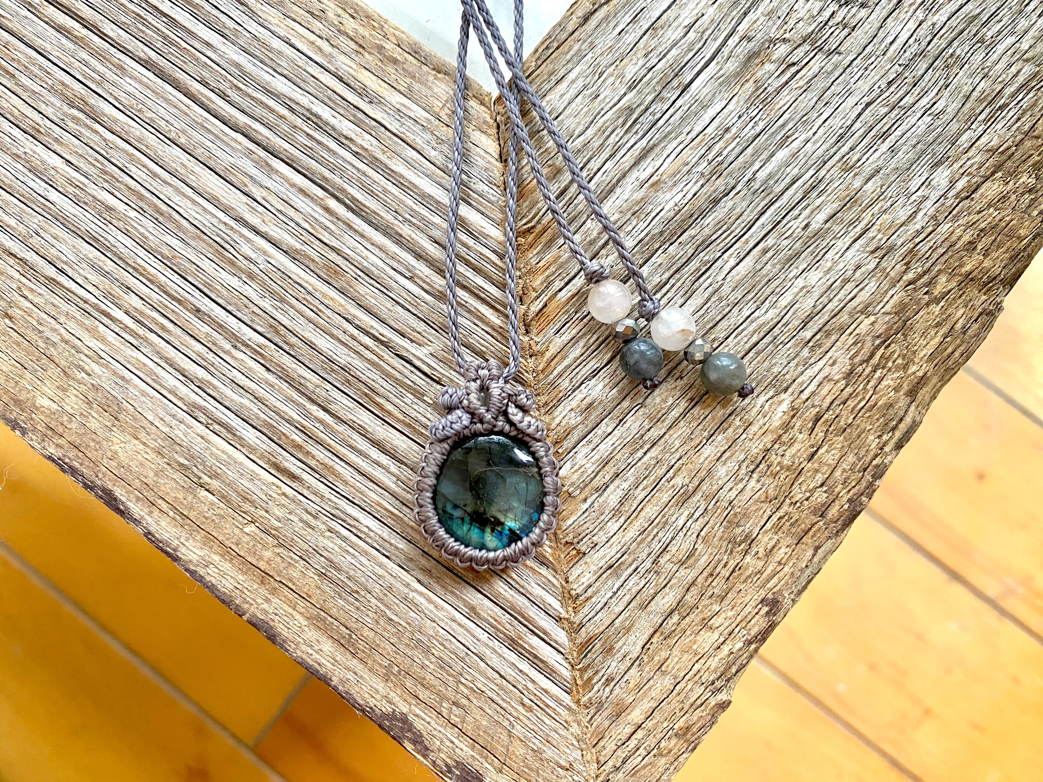 mysterious☆ブルーラブラドライト天然石マクラメネックレス/日々のお守りアクセサリー