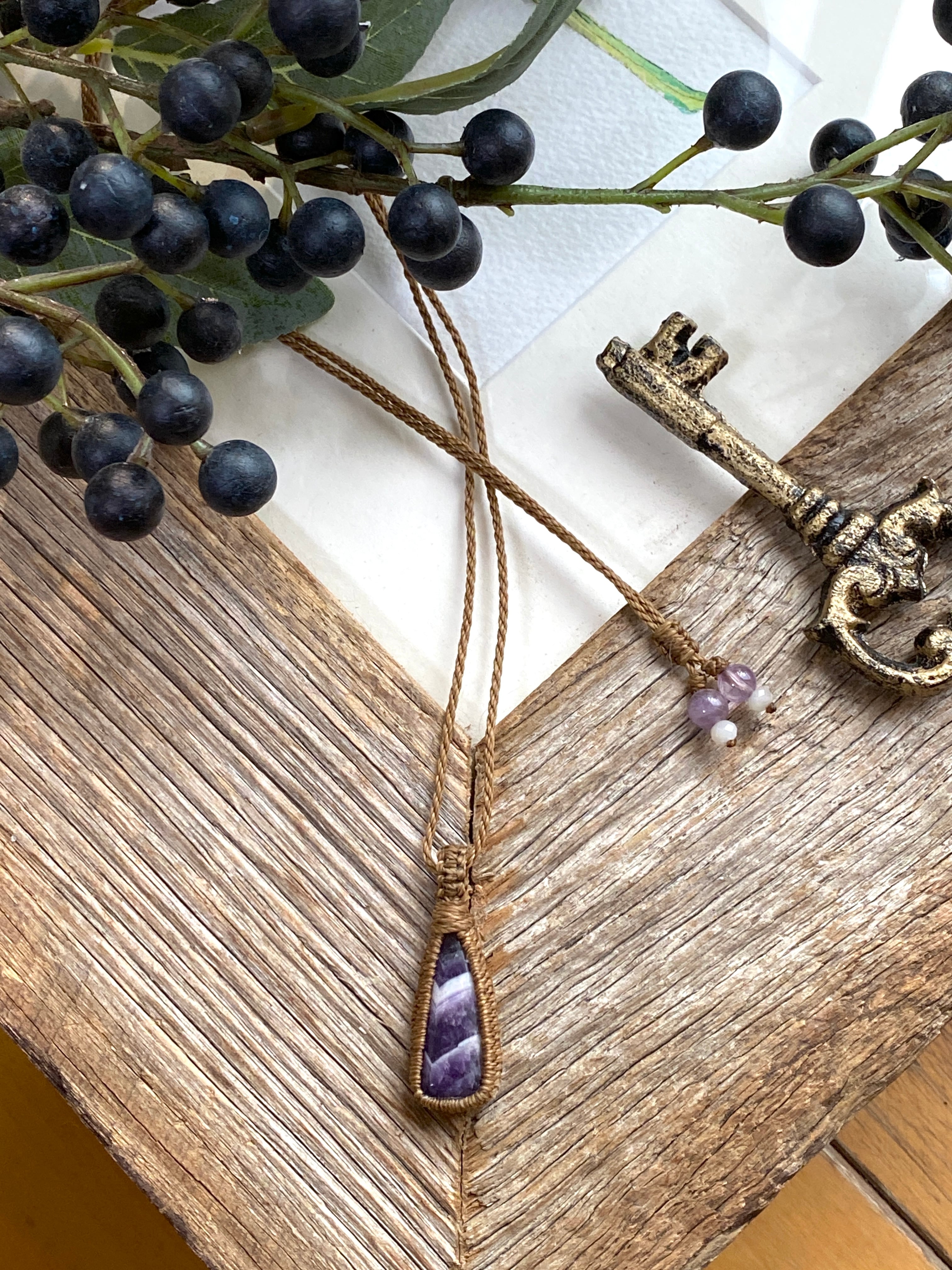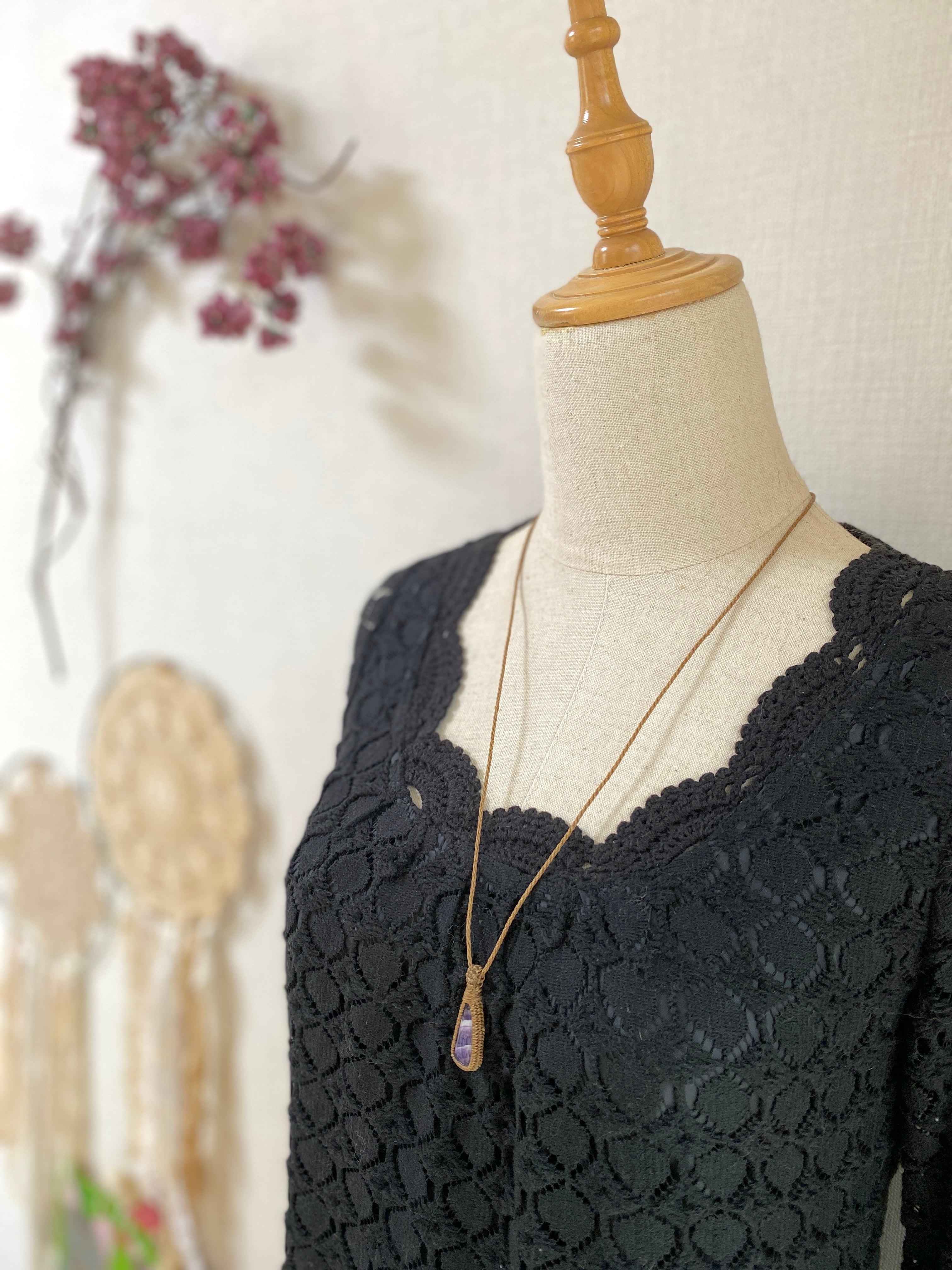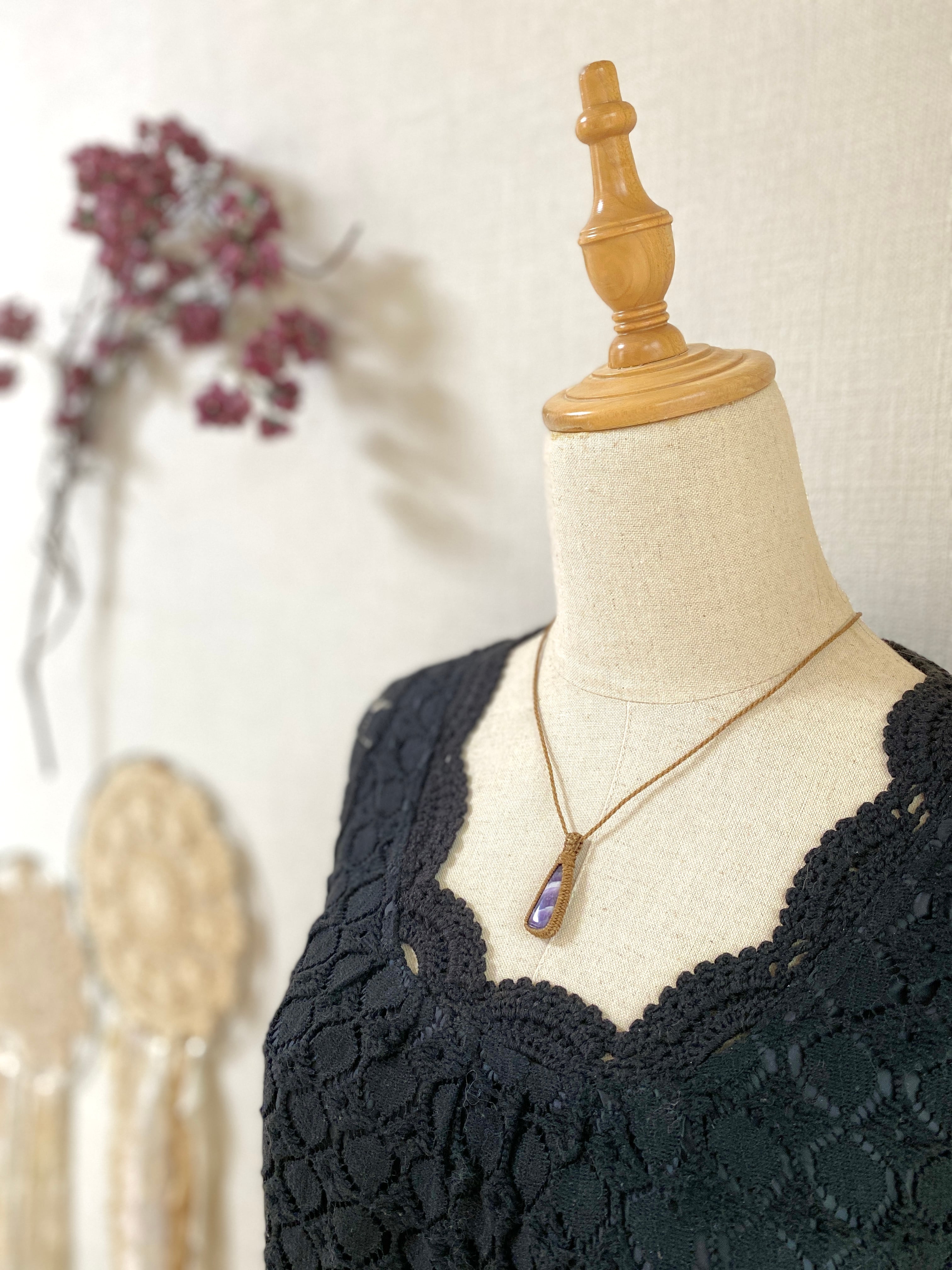 True love☆レースアメジスト天然石マクラメネックレス/日々のアクセサリー