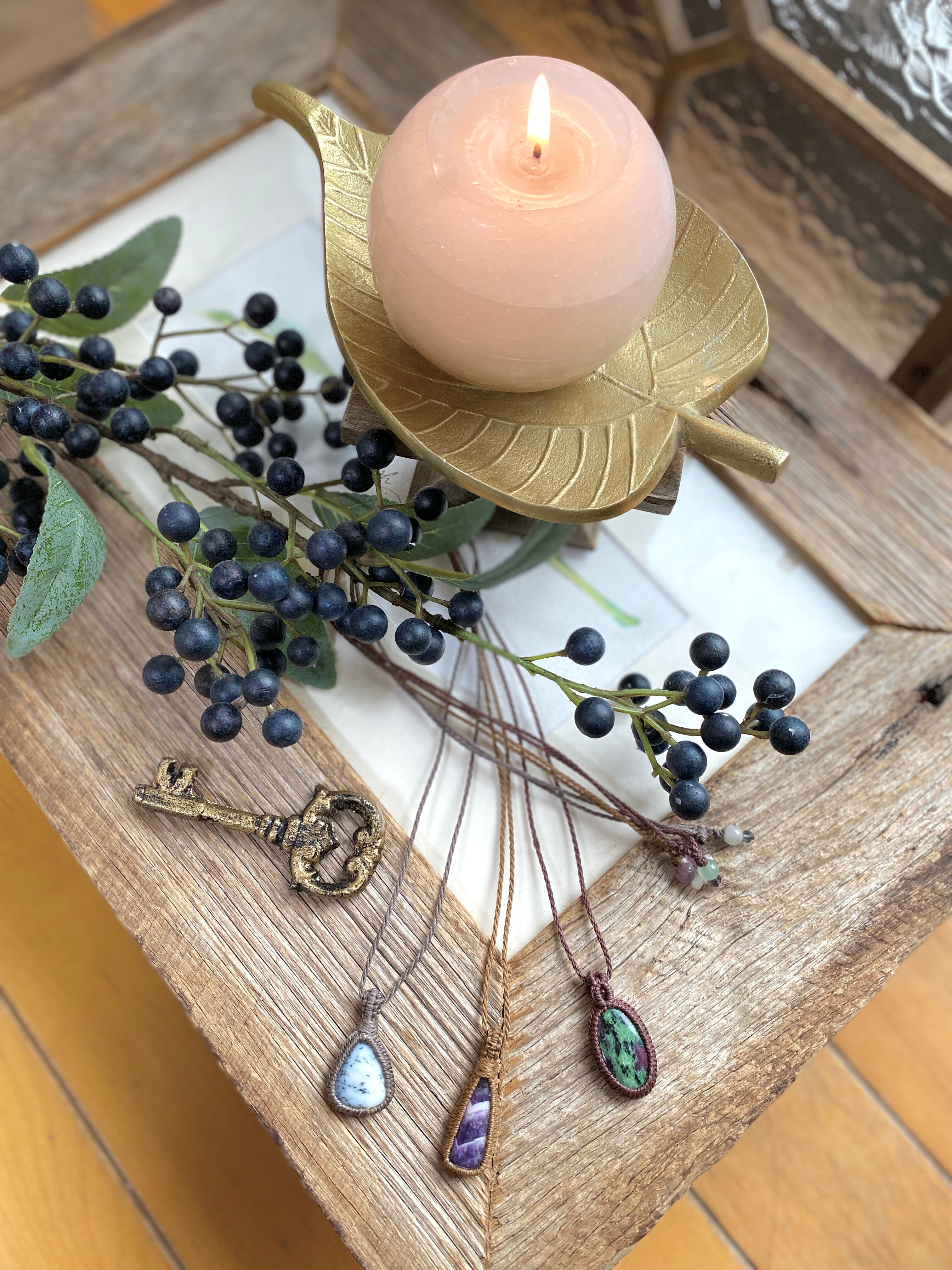 artist☆デンドライトオパール天然石マクラメネックレス/日々のマクラメアクセサリー