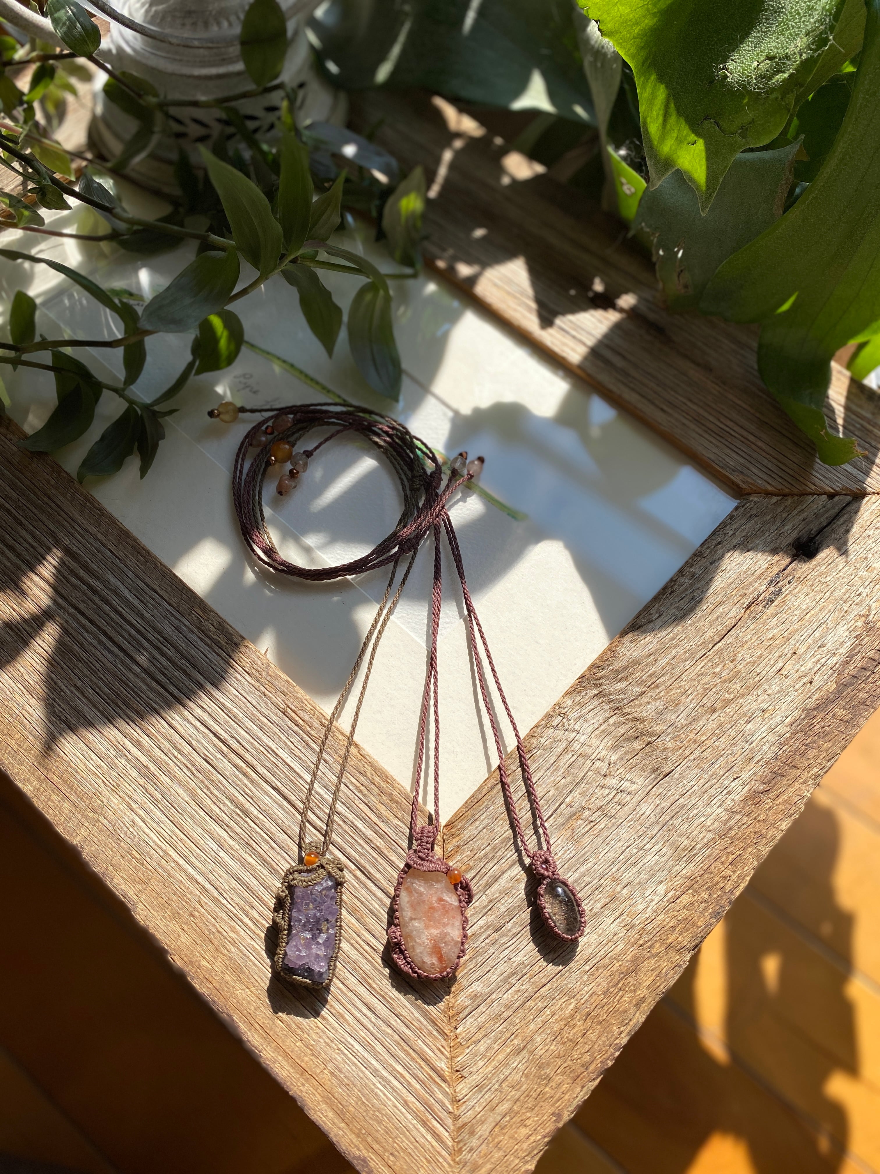 開運☆ガーデンクォーツ天然石マクラメネックレス