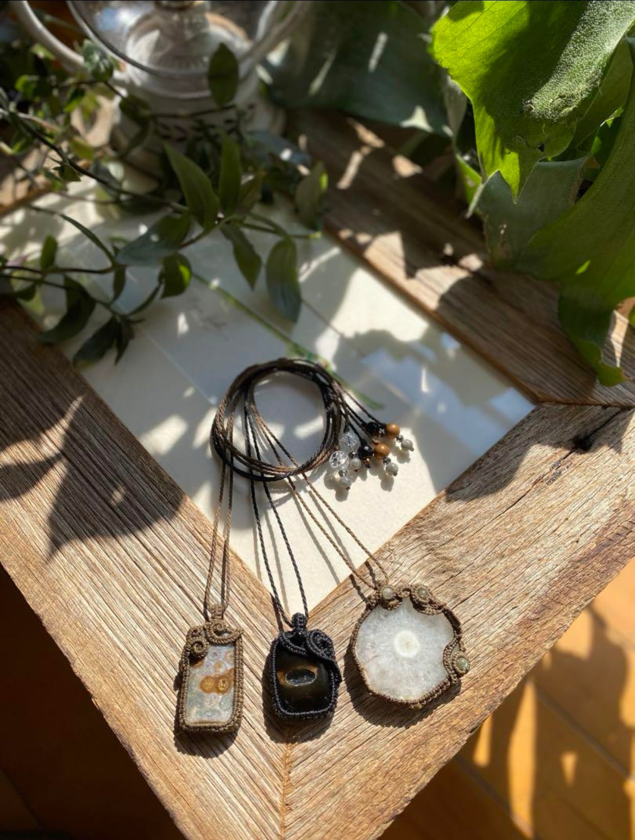 フォシルコーラルに詰まった海のエネルギーが込められています。古代の生命の息吹が宿った珊瑚の化石は、持ち主に豊かな感性とインスピレーションをもたらしてくれるでしょう。また、マクラメ編みのデザインは、シンプルでありながら個性的な印象を与えます。
