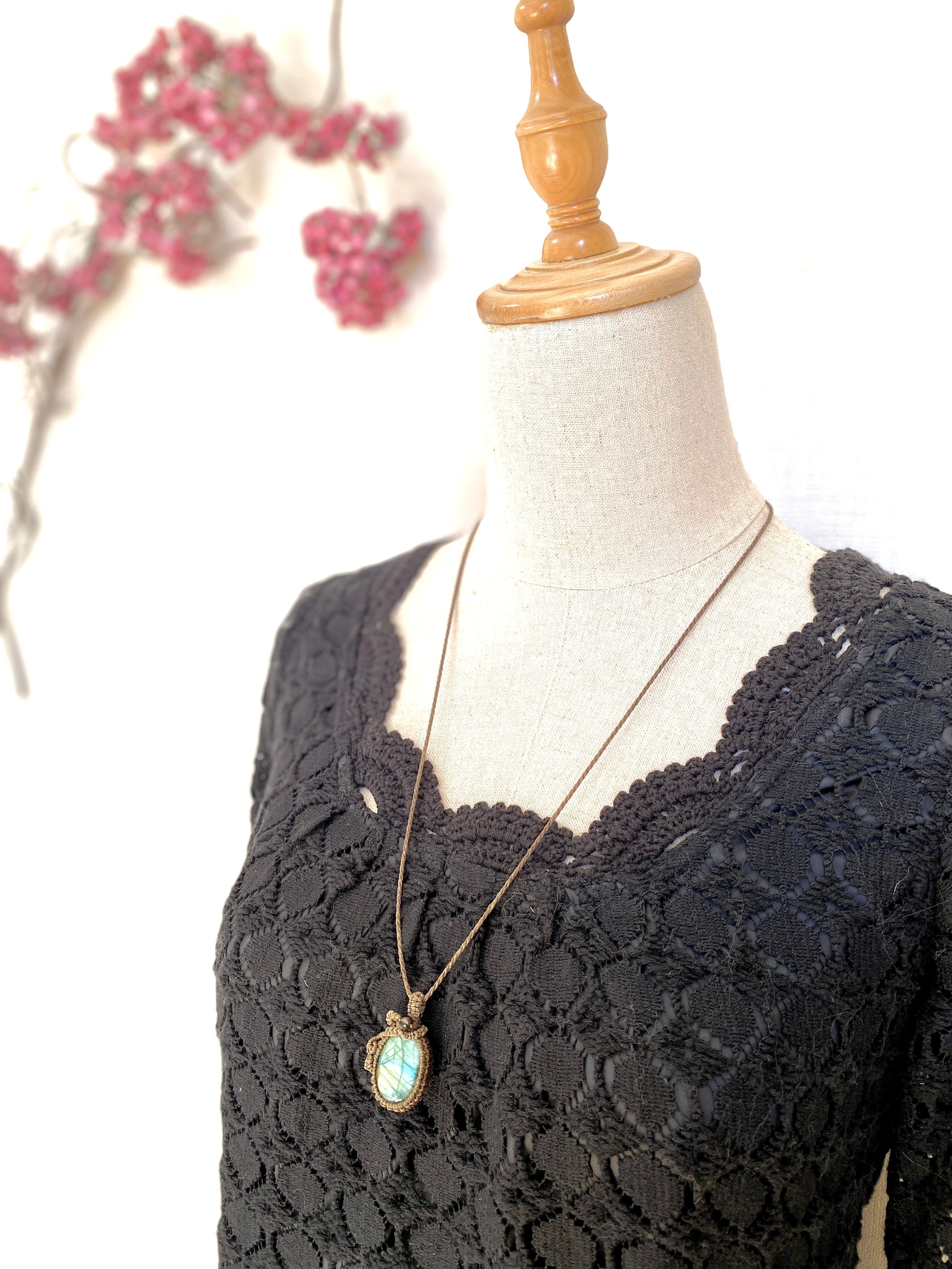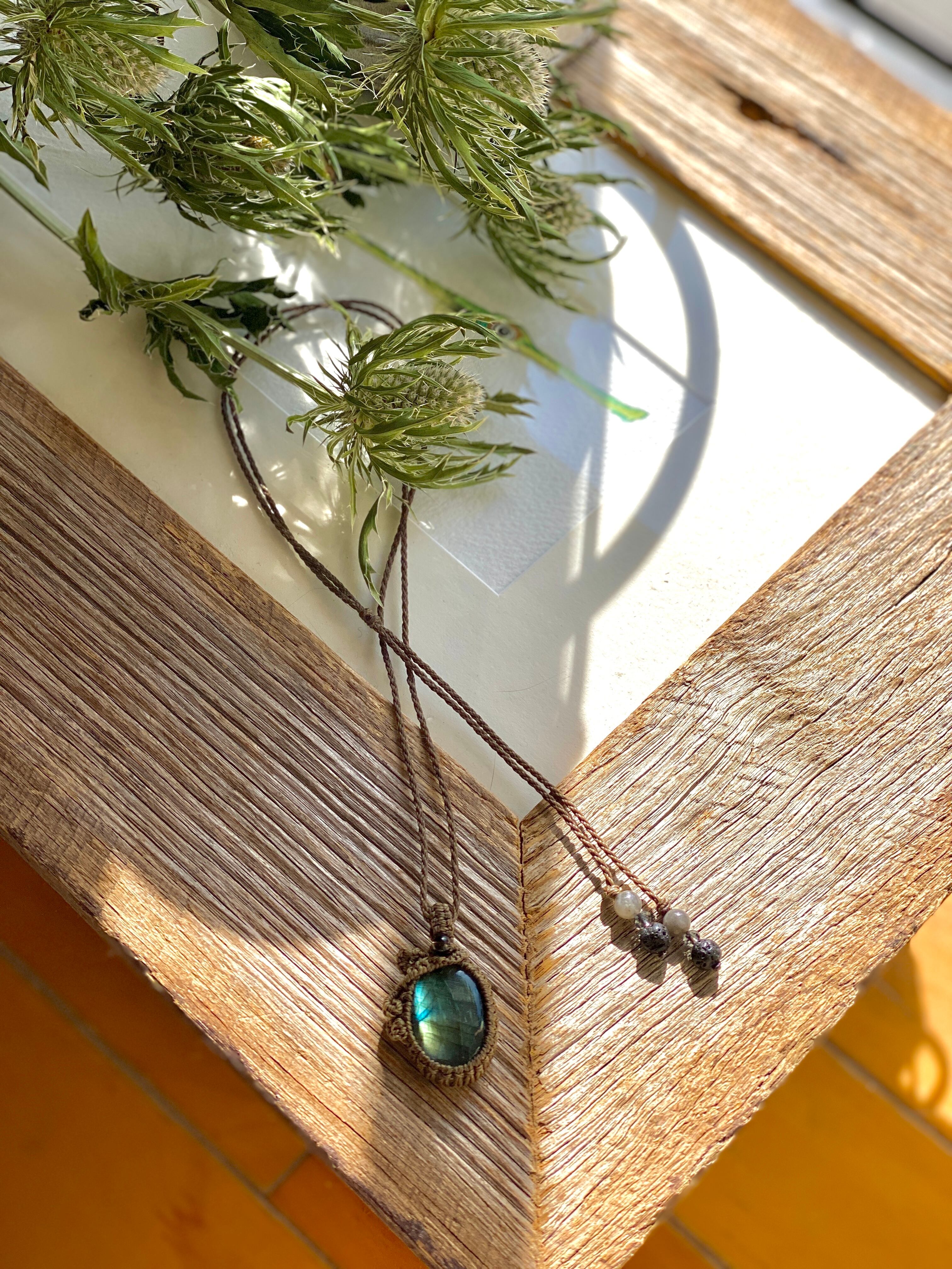 mysterious☆ラブラドライト天然石マクラメネックレス/日々のお守りアクセサリー