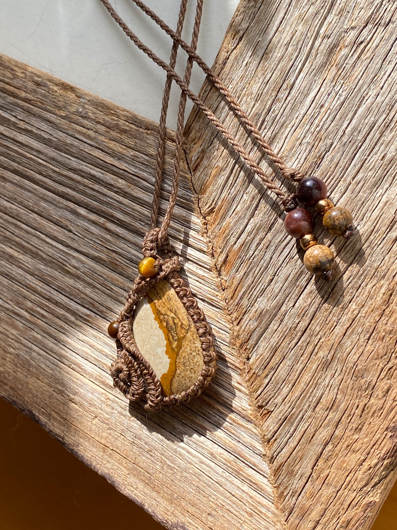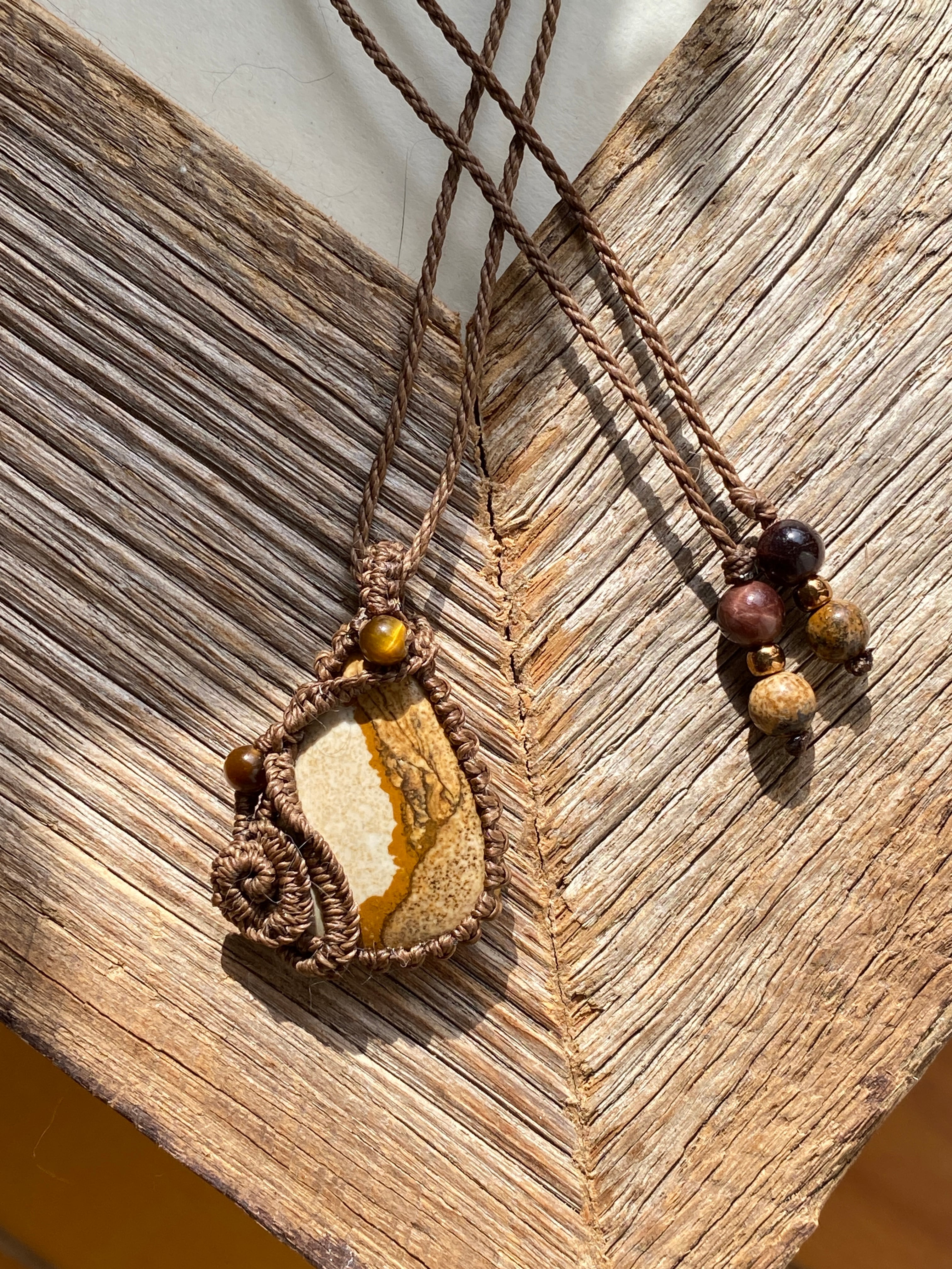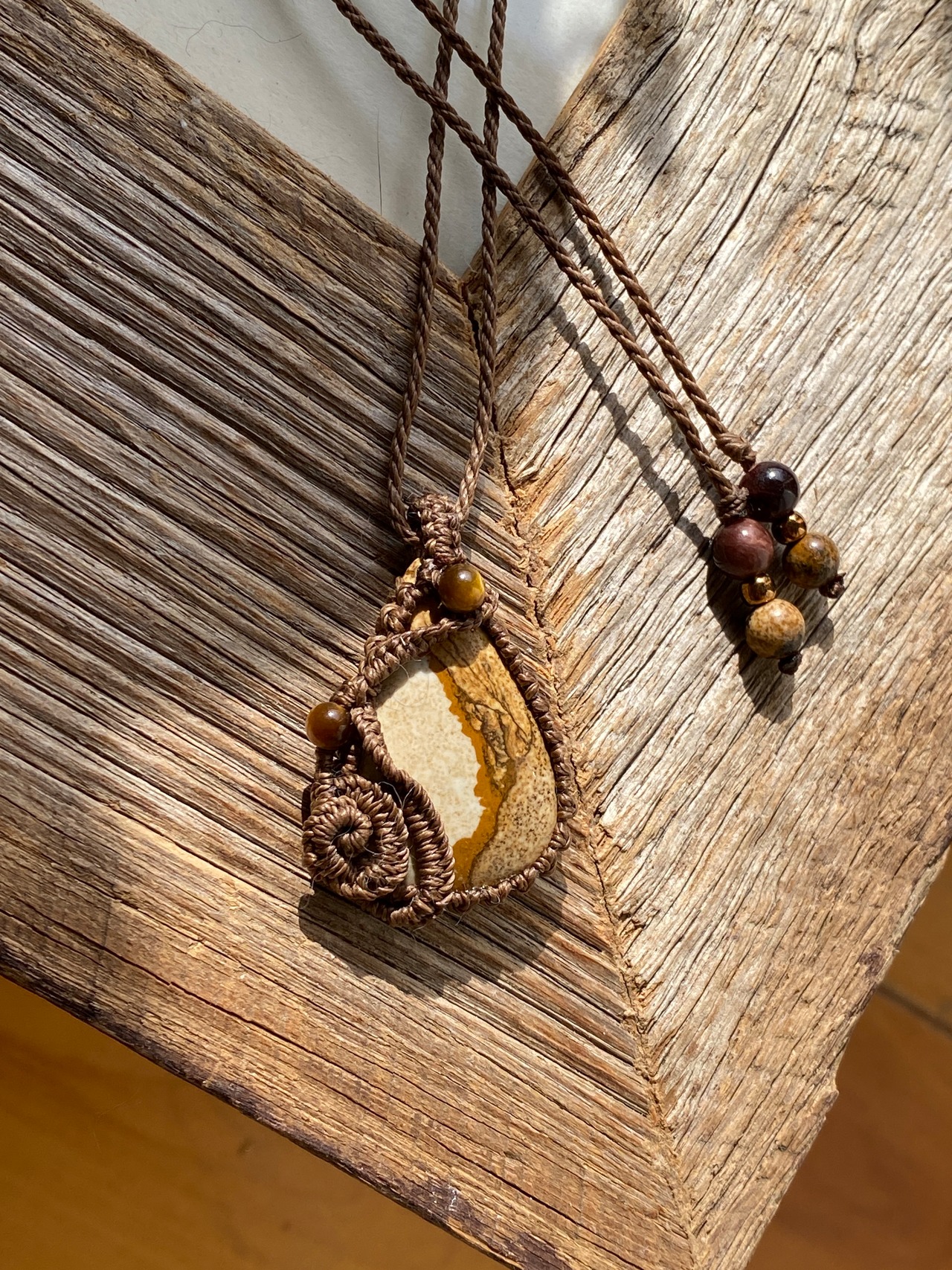 art☆ピクチャージャスパー天然石マクラメネックレス/日々のお守りアクセサリー