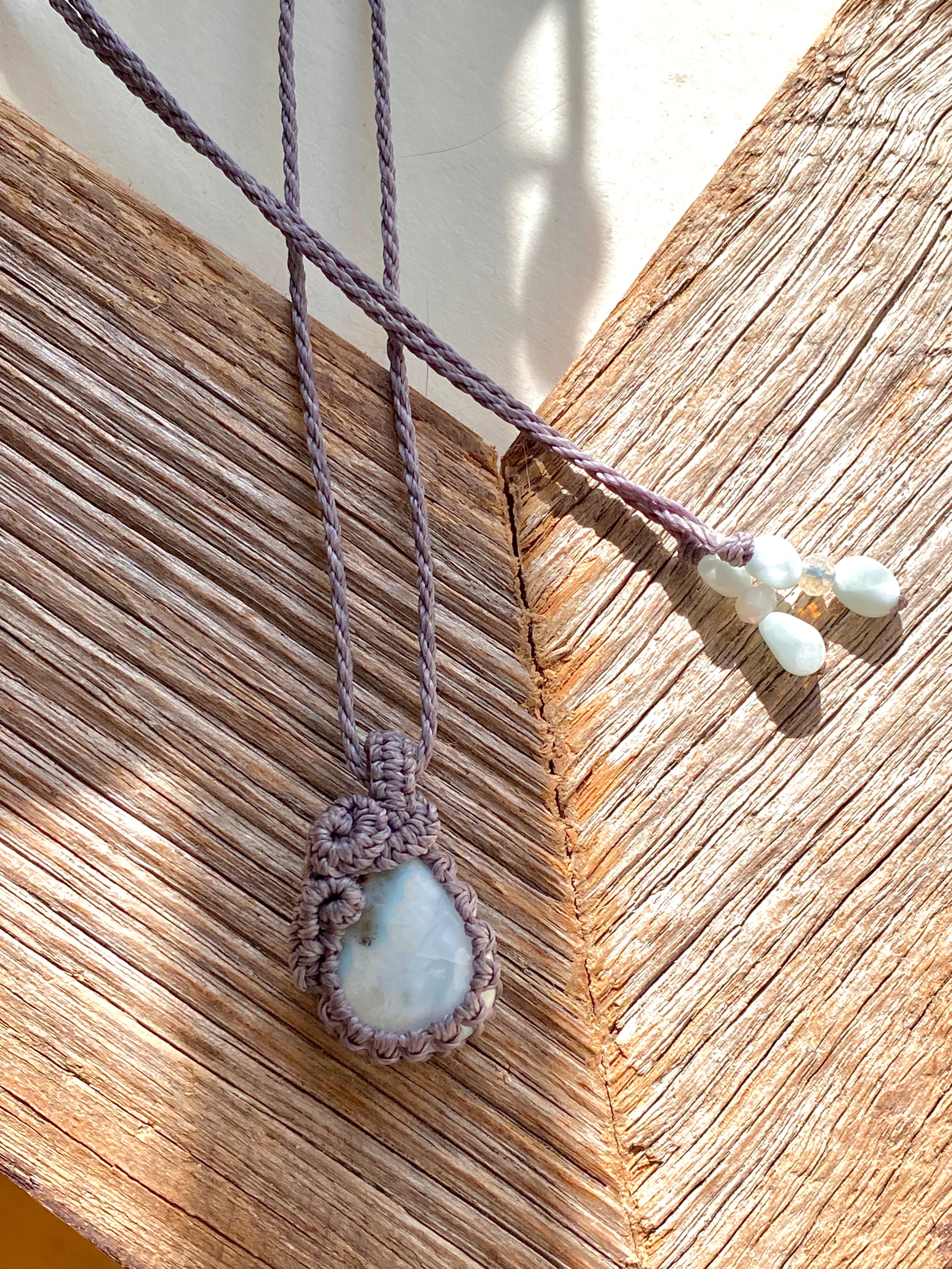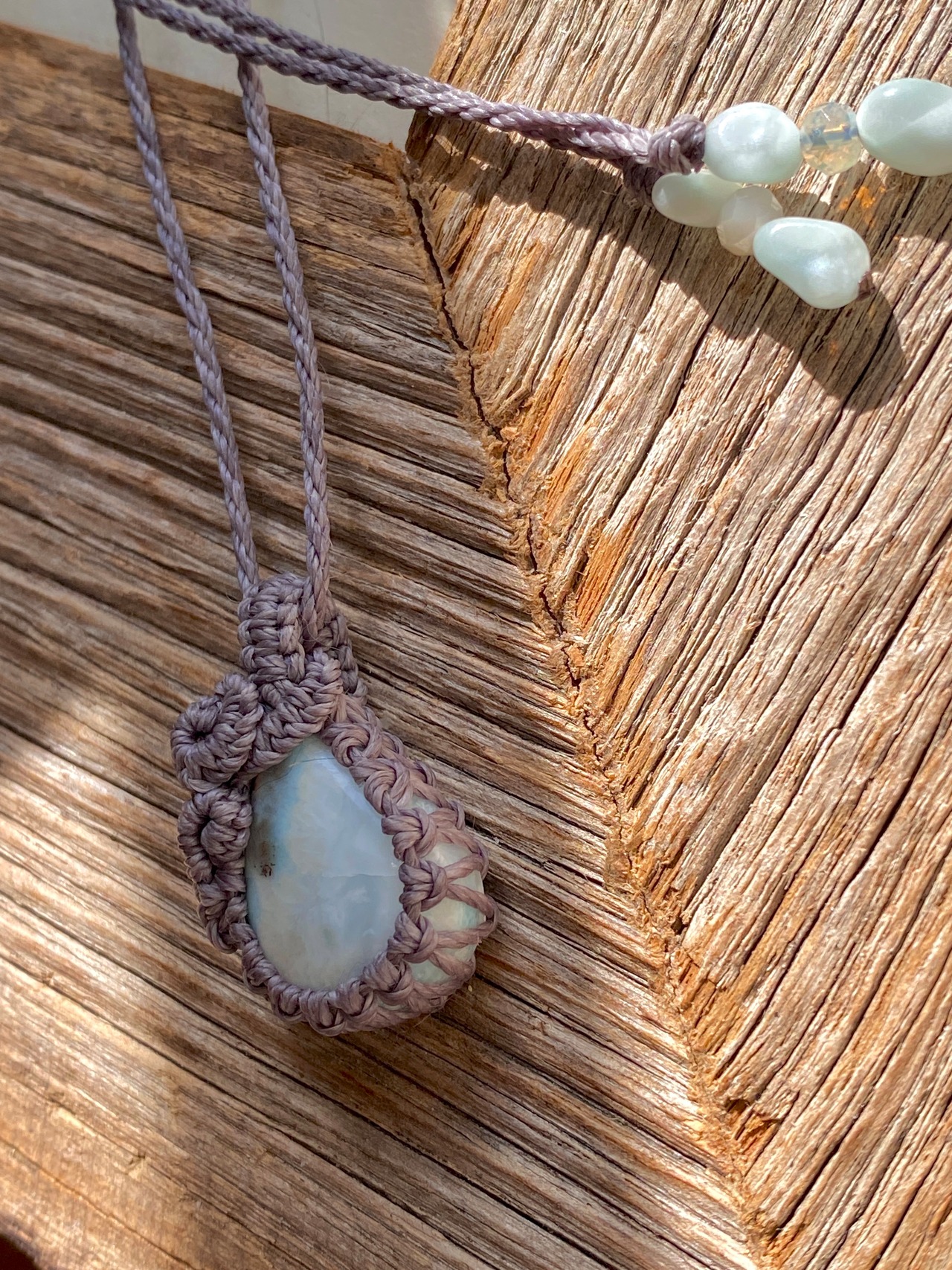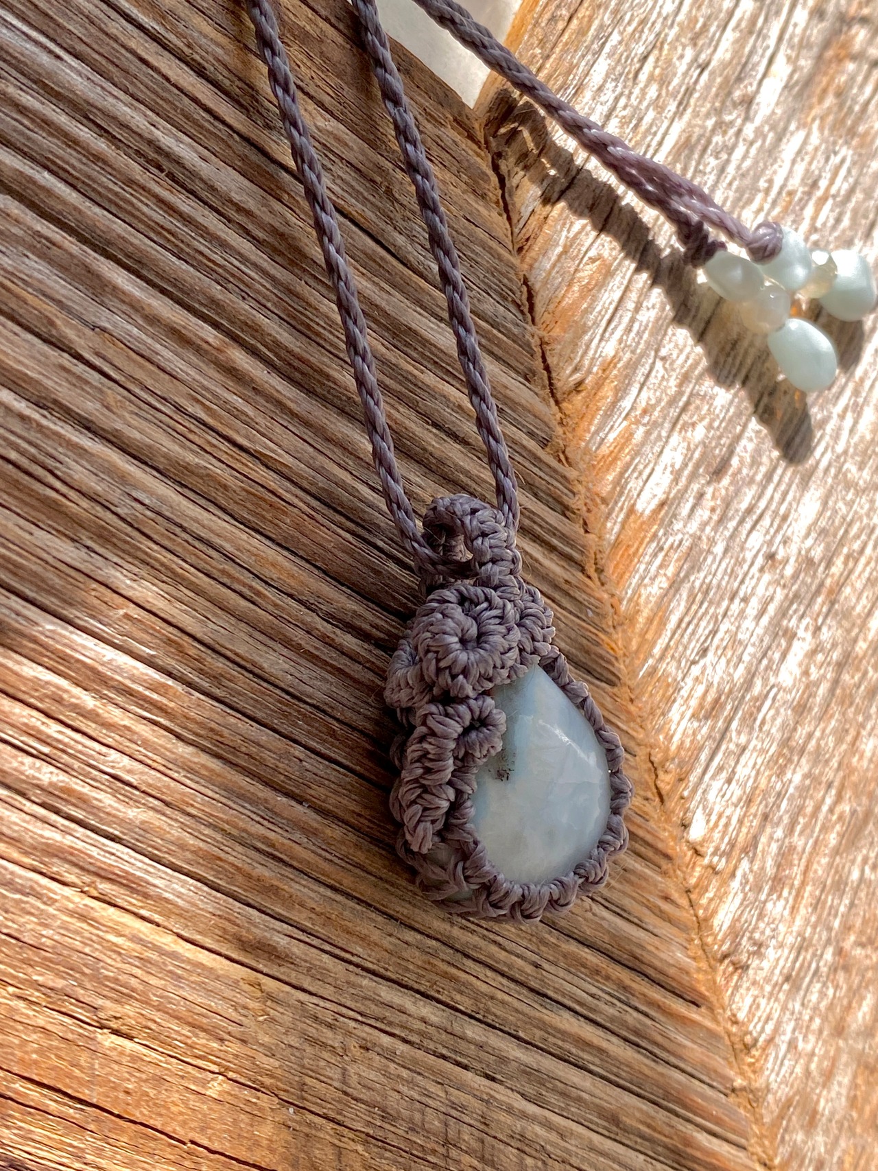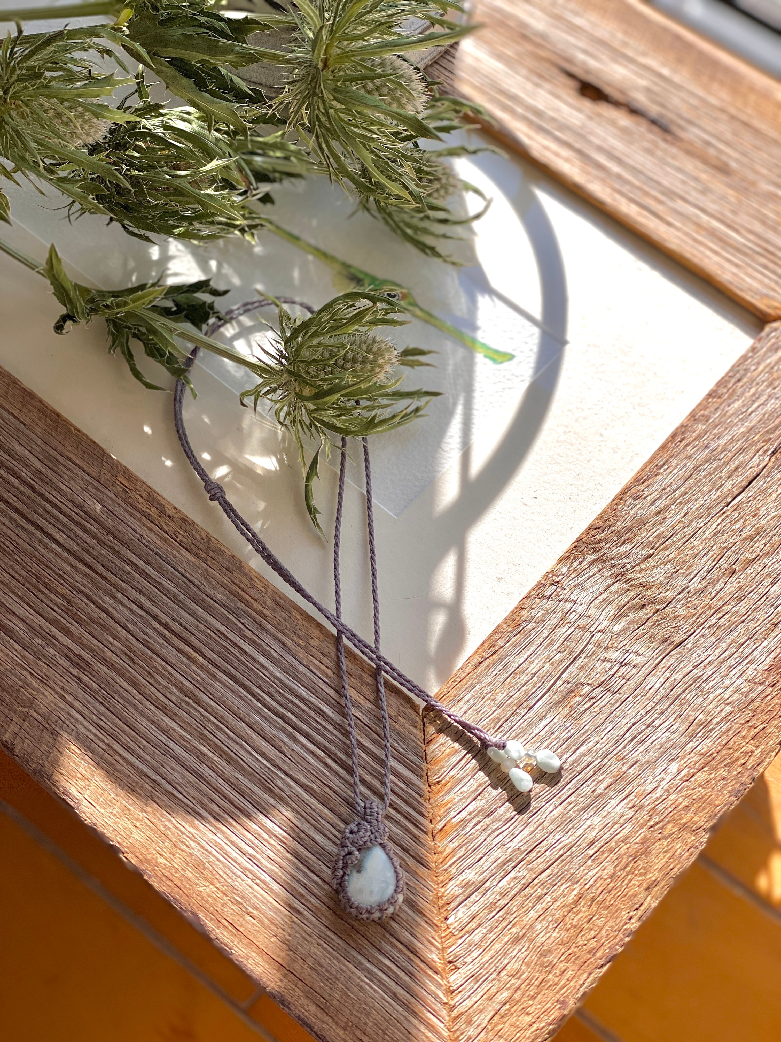 Relux☆ホワイトラリマー天然石マクラメネックレス/日々のお守りアクセサリー