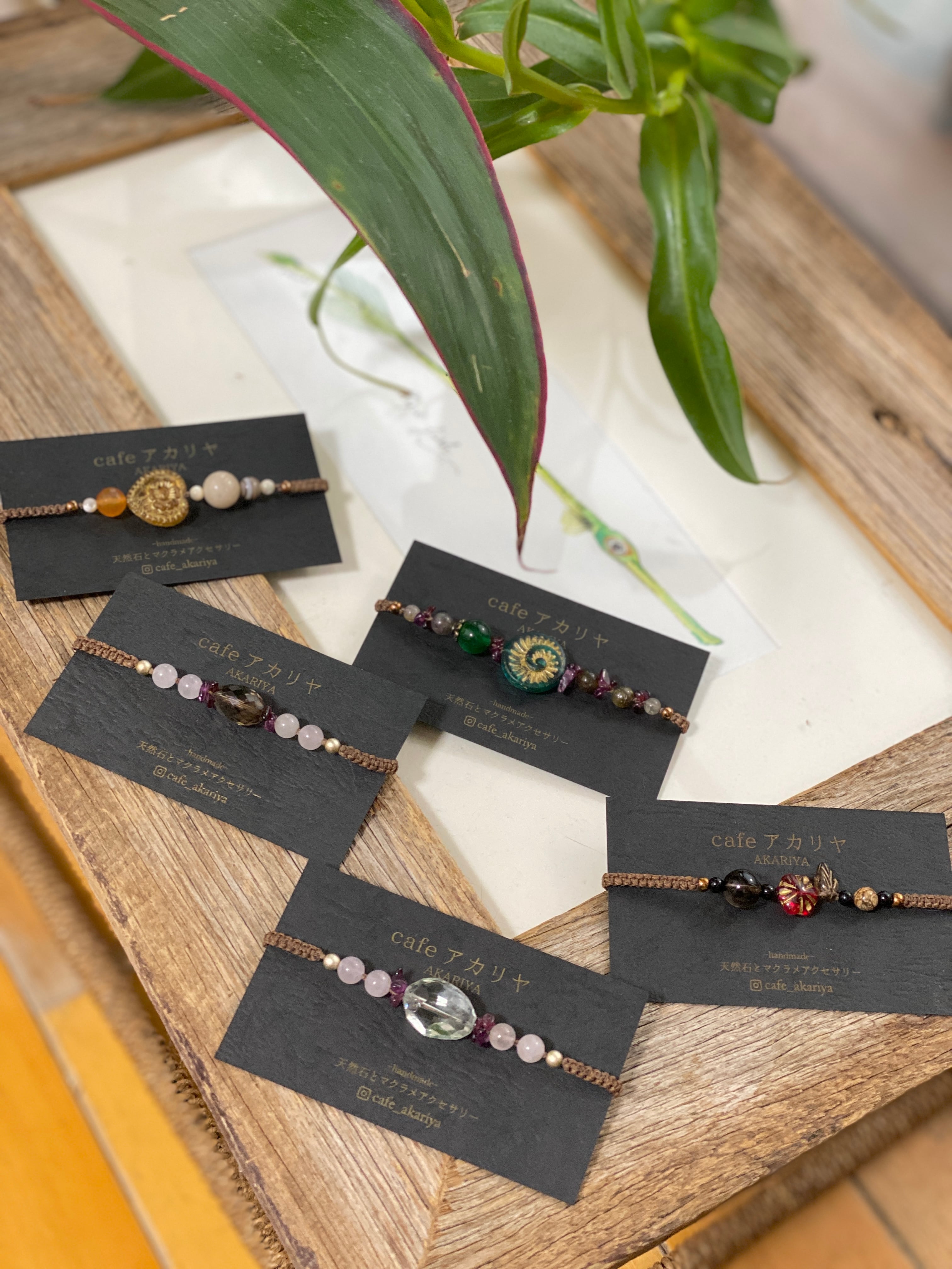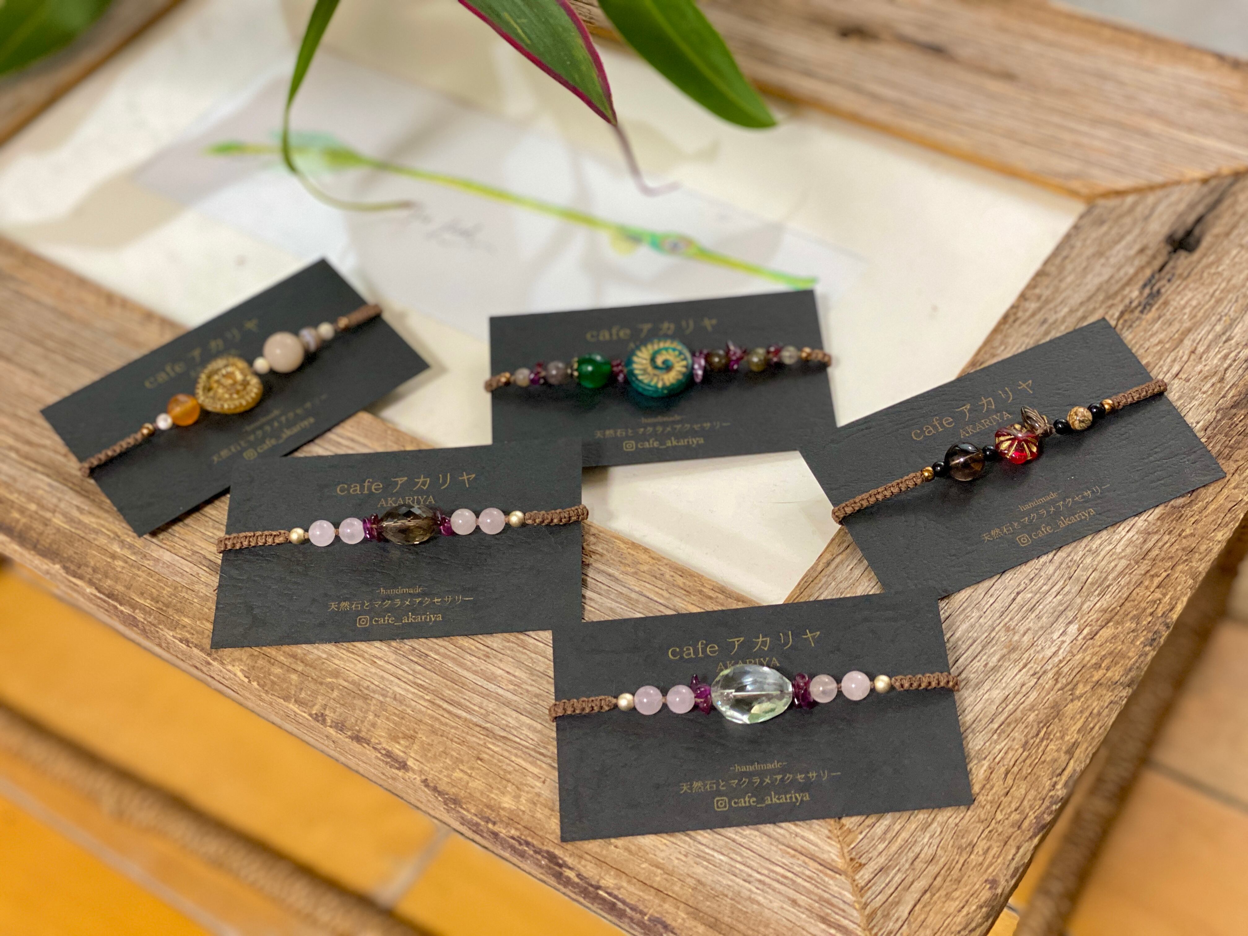 天然石と趣きあるマクラメ編みでのオリジナルブレスレット。
