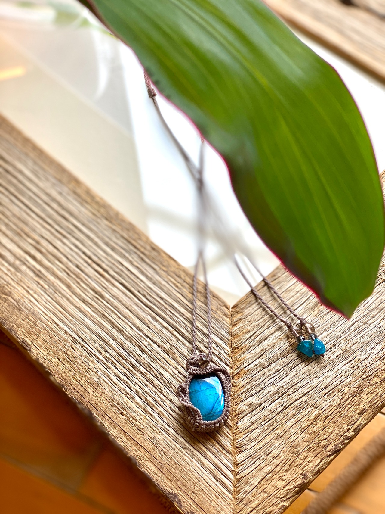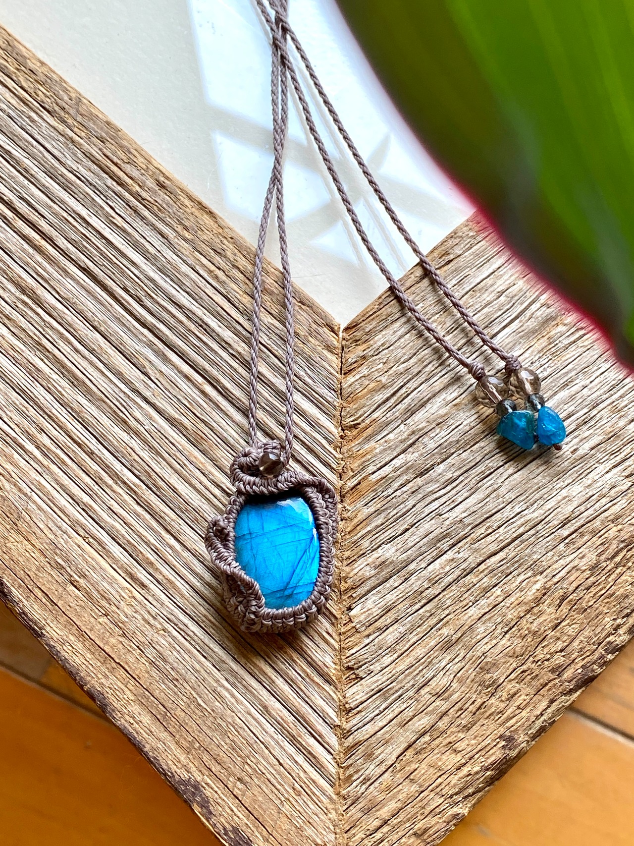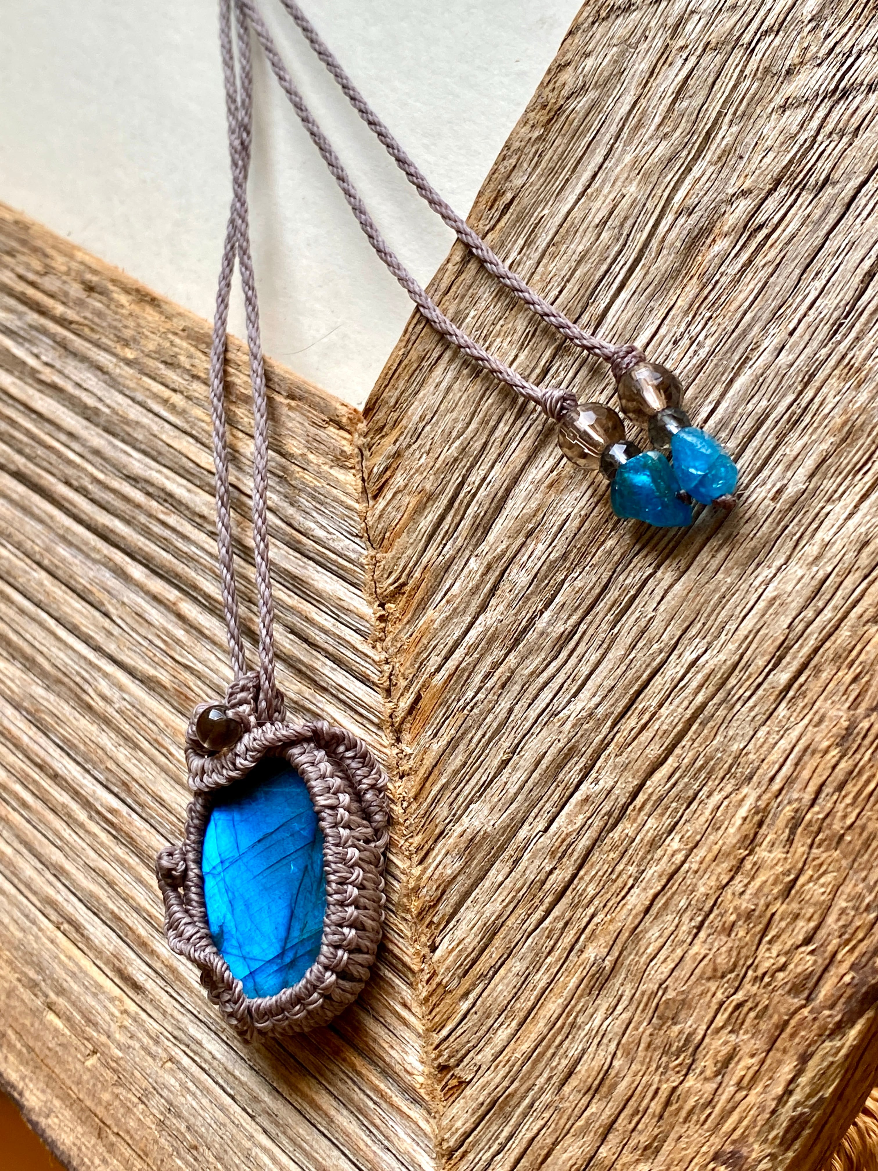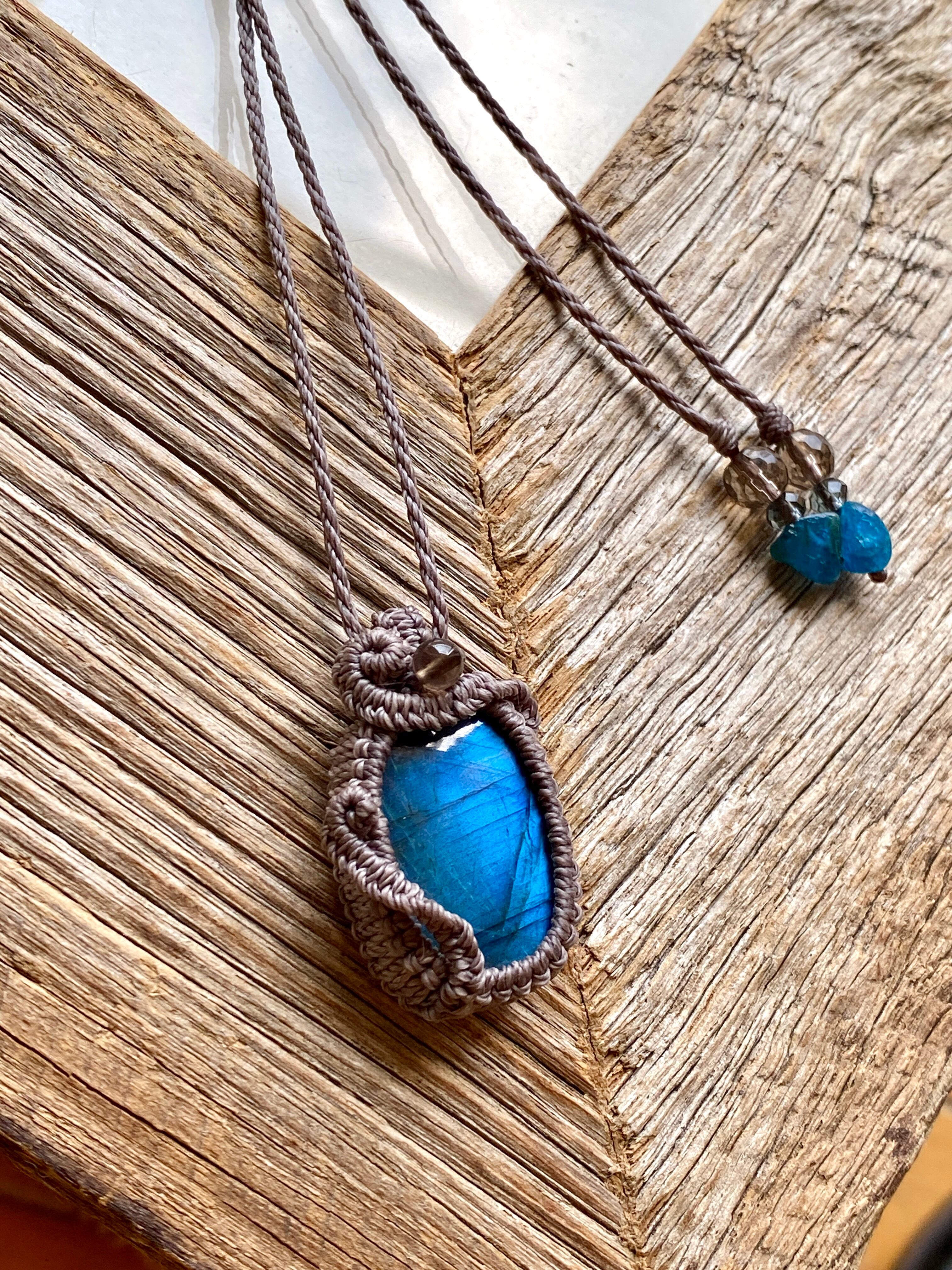 ブルーラブラドライト*天然石マクラメネックレス/日々のお守りアクセサリー