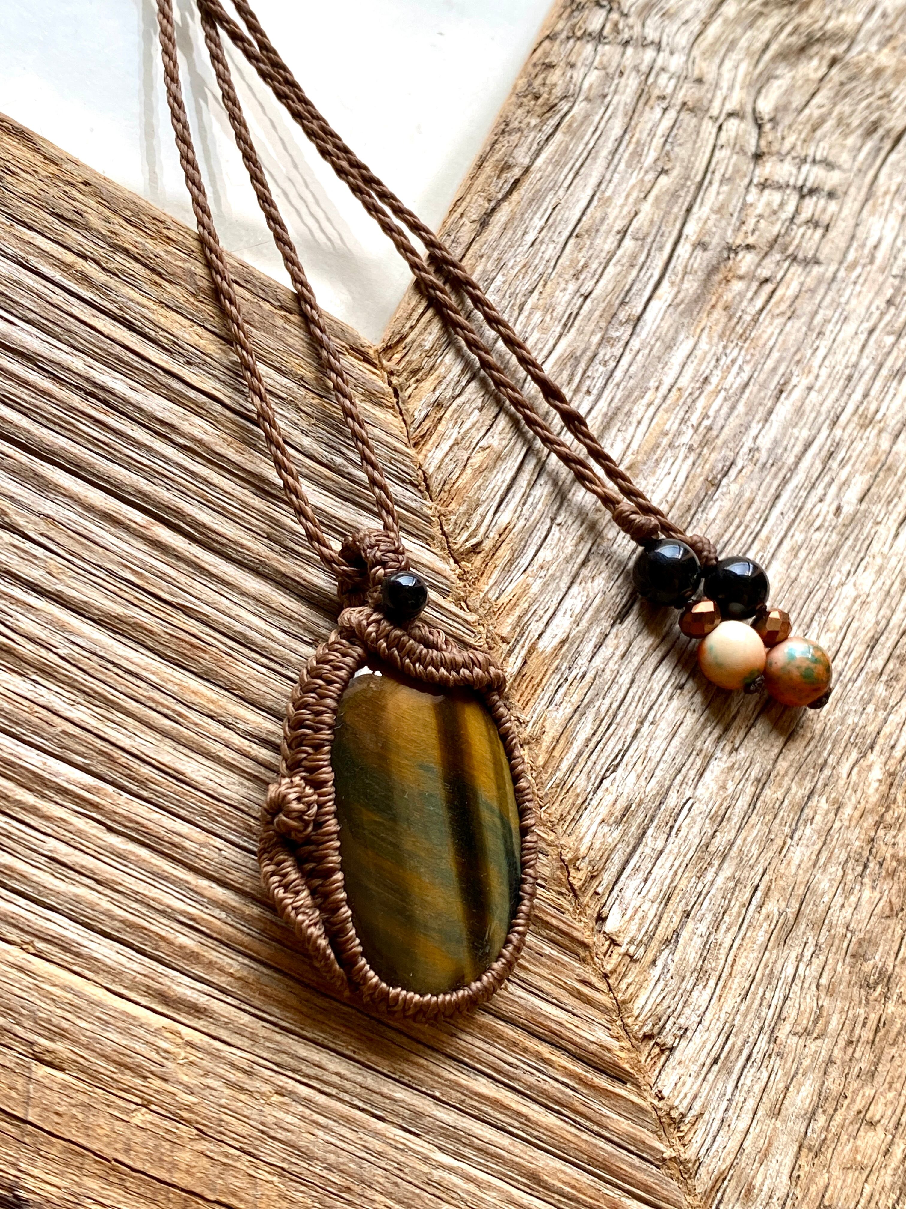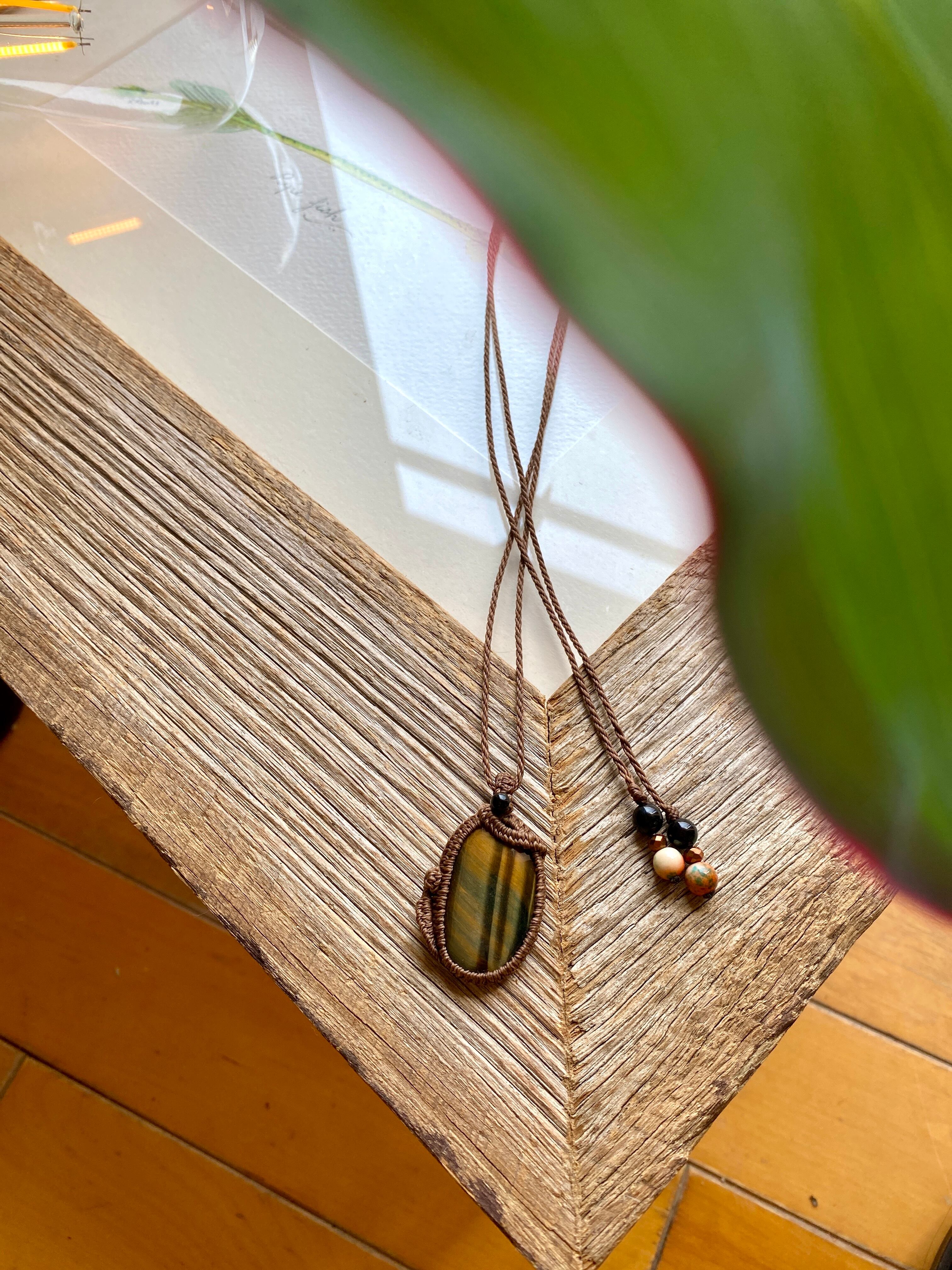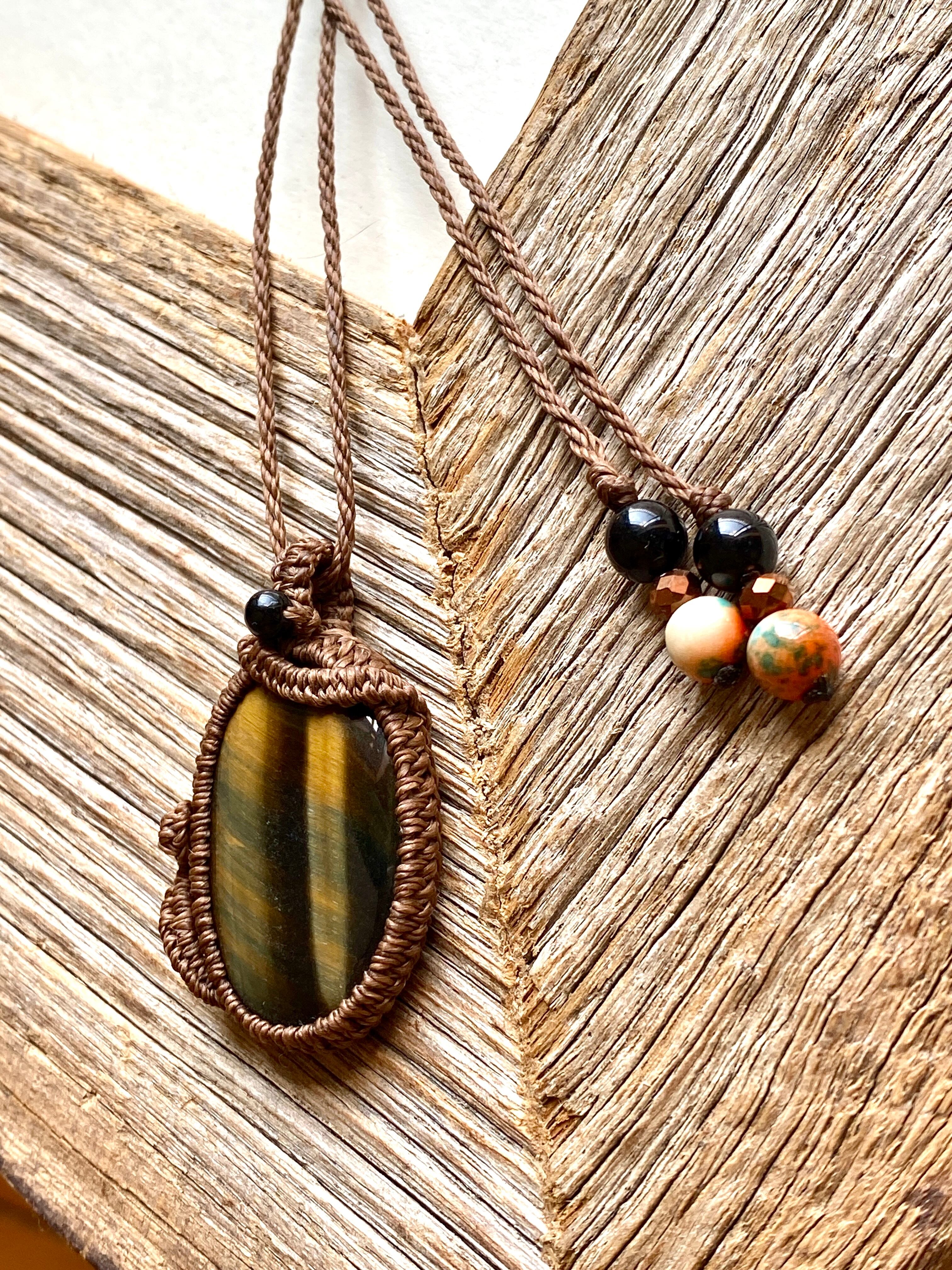 タイガーアイ*天然石マクラメネックレス/日々のお守りアクセサリー