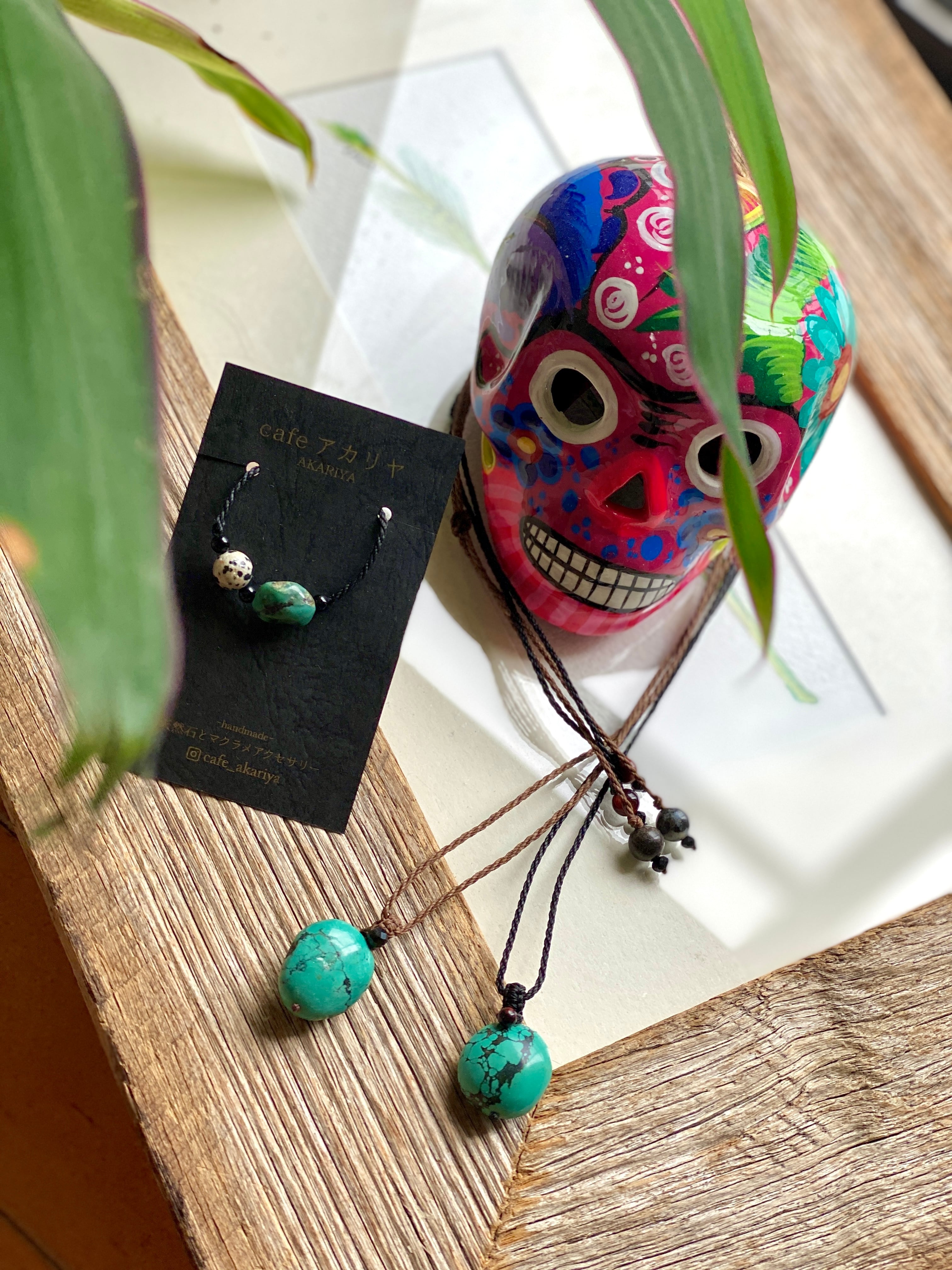 神宿る*ターコイズ天然石マクラメネックレス/日々のお守りアクセサリー