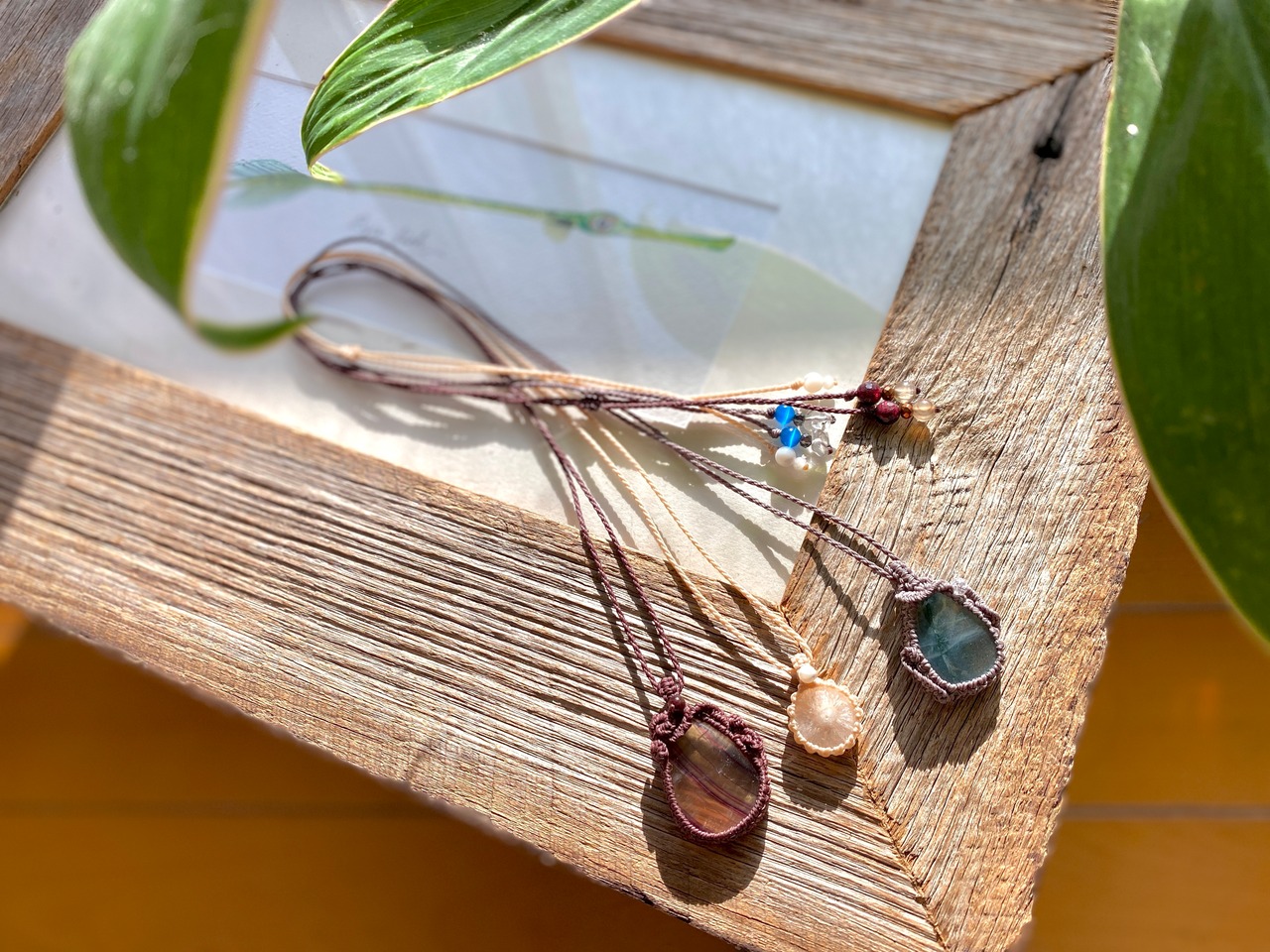 マクラメ編みはワックスコード(ポリエステル)を使用しますので金属アレルギーの方でも安心して使えます。