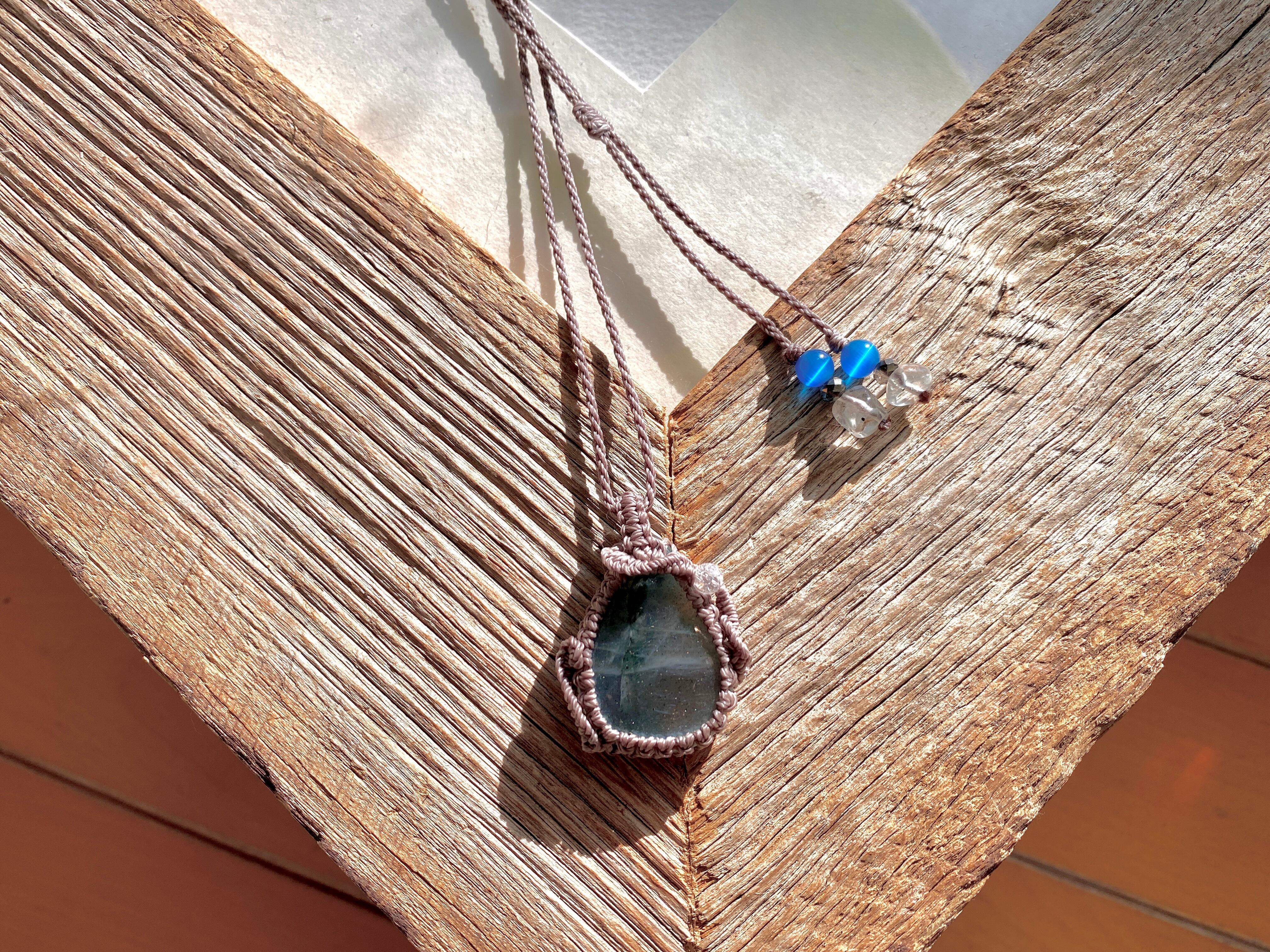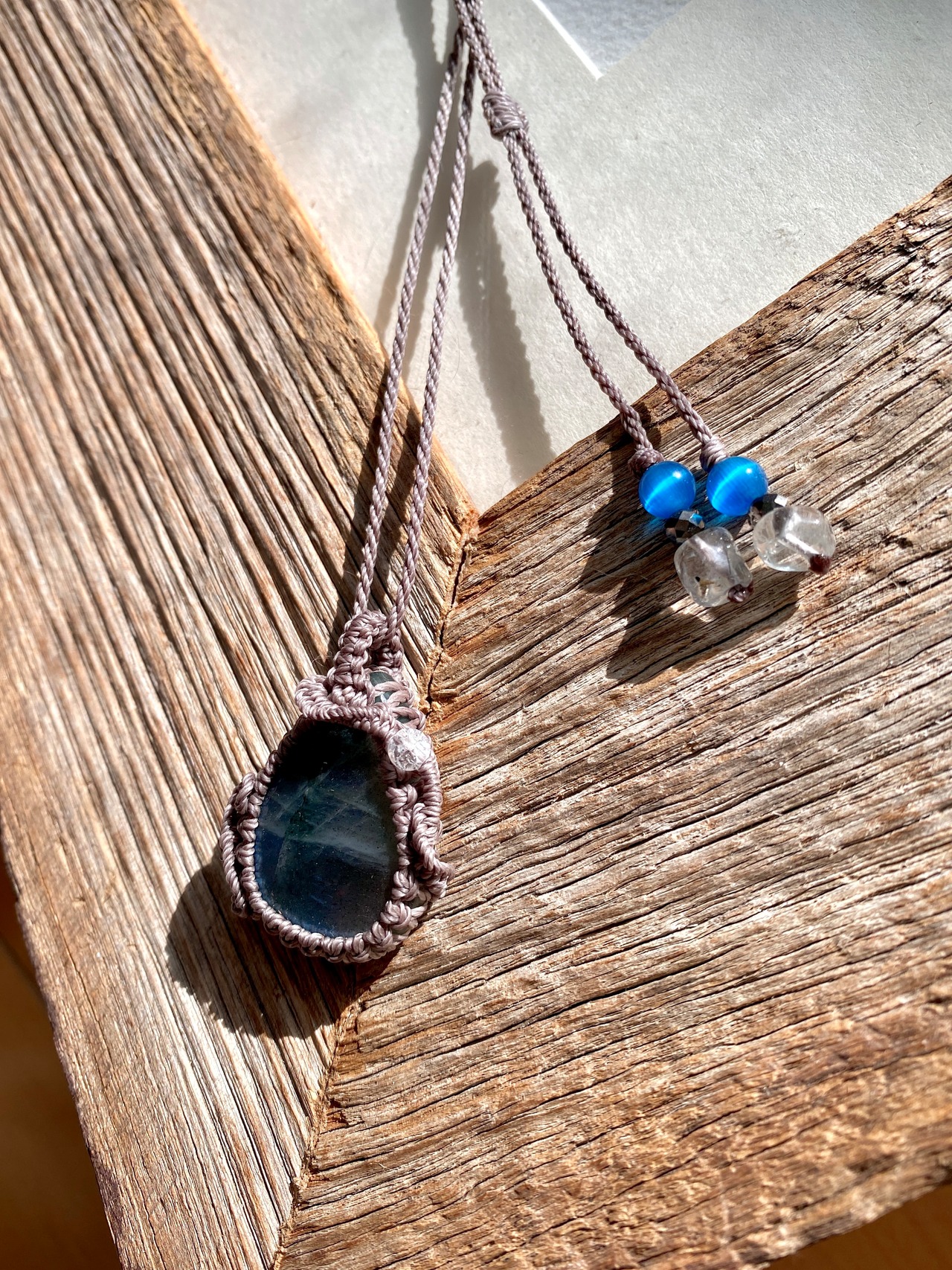 宇宙*ブルーラブラドライト天然石マクラメネックレス/日々のお守りアクセサリー