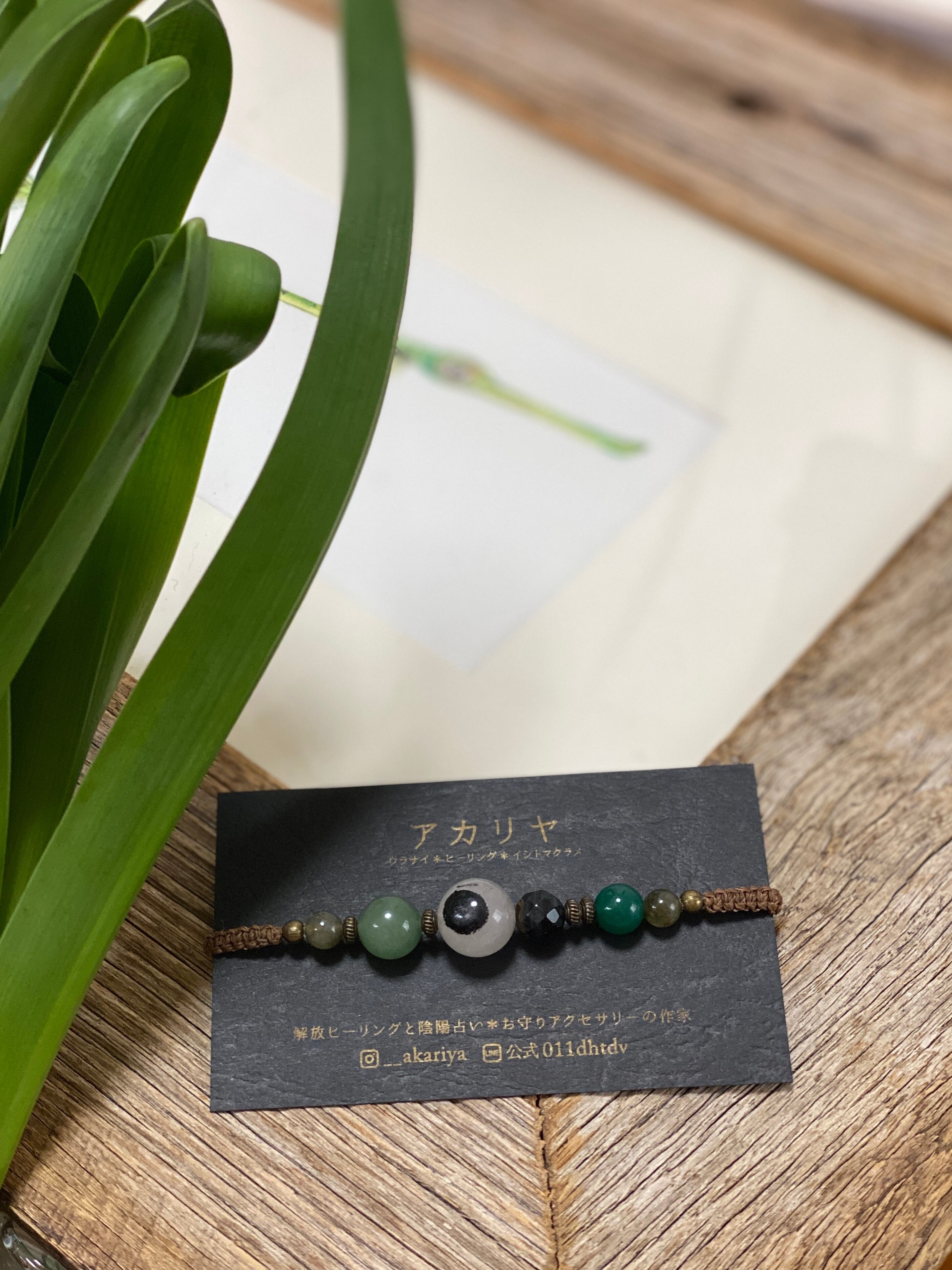 天然石と趣きあるマクラメ編みでのオリジナルブレスレット。